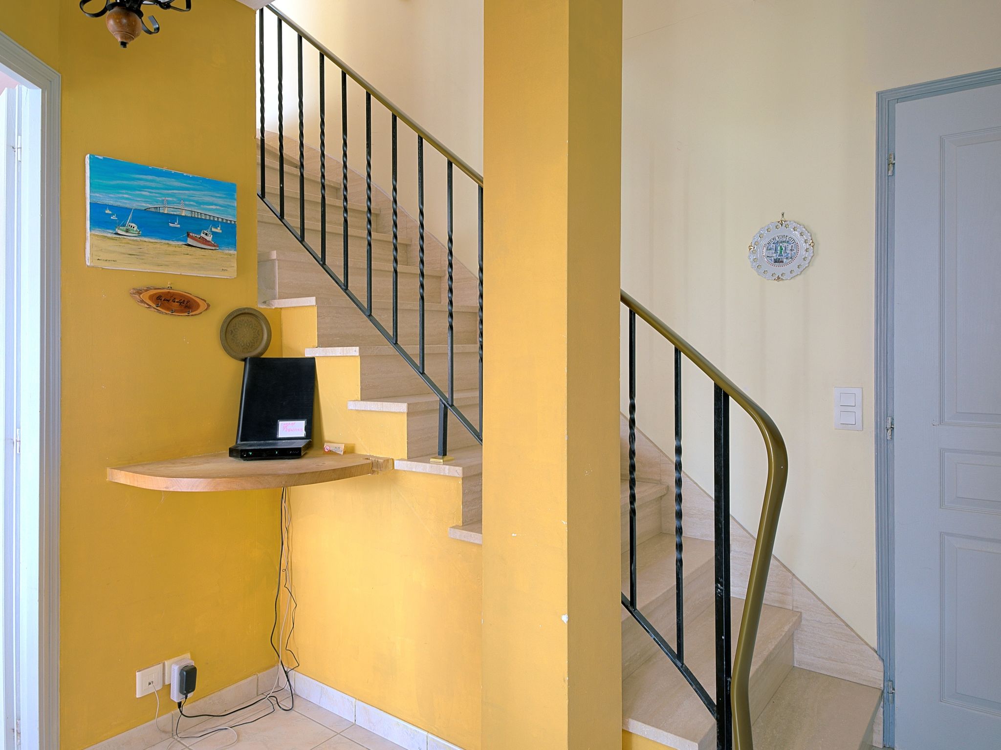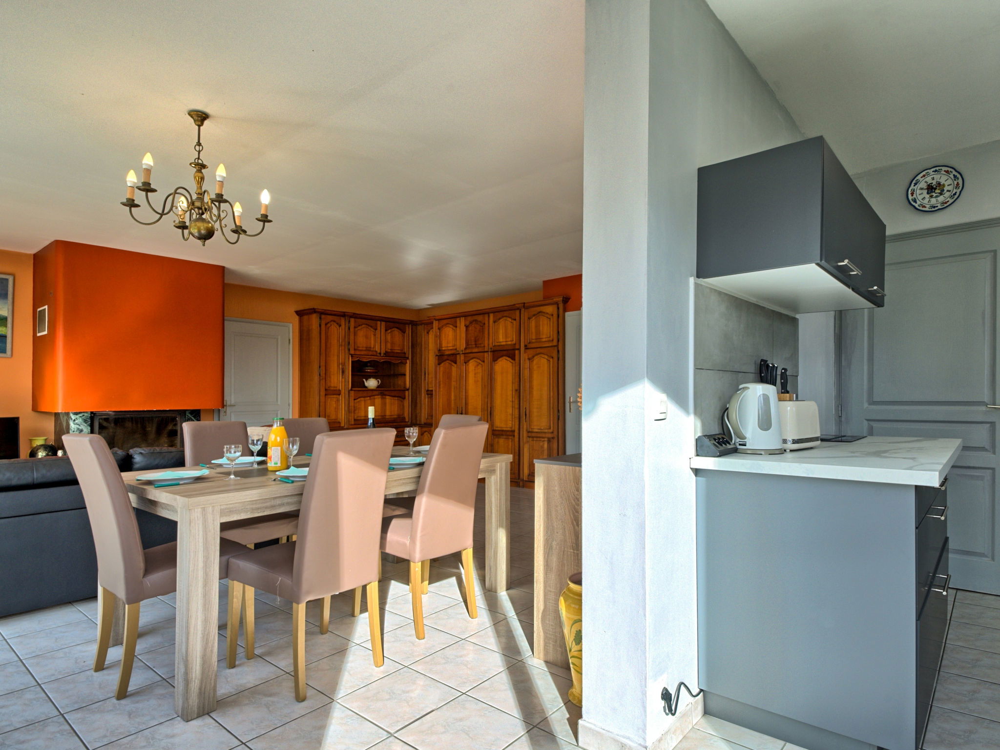 4-room house 100 m2 on 2 levels. Partly renovated in 2023, beautiful furnishings: living/dining room with open-hearth fireplace (only for decoration), TV. Exit to the terrace. 1 room with 1 double bed (140 cm, length 190 cm). Exit to the terrace. Open kitchen (oven, dishwasher, 4 induction hot plates, toaster, kettle, microwave, freezer, electric coffee machine). Shower, sep. WC. Upper floor: 1 room with sloping ceilings with 1 double bed (140 cm, length 190 cm). 1 room with sloping ceilings with 2 beds (90 cm, length 190 cm). Bath/WC. Electric heating. Terrace, south facing position. Terrace furniture, barbecue (portable), deck chairs (2). Facilities: washing machine, children's high chair, baby cot for up to 2 year olds. Internet (WiFi, free). Please note: maximum 1 pet/ dog allowed. Smoke alarm. Offer by a private individual according to Art. 155, IV of CGI. 56240000696XJ