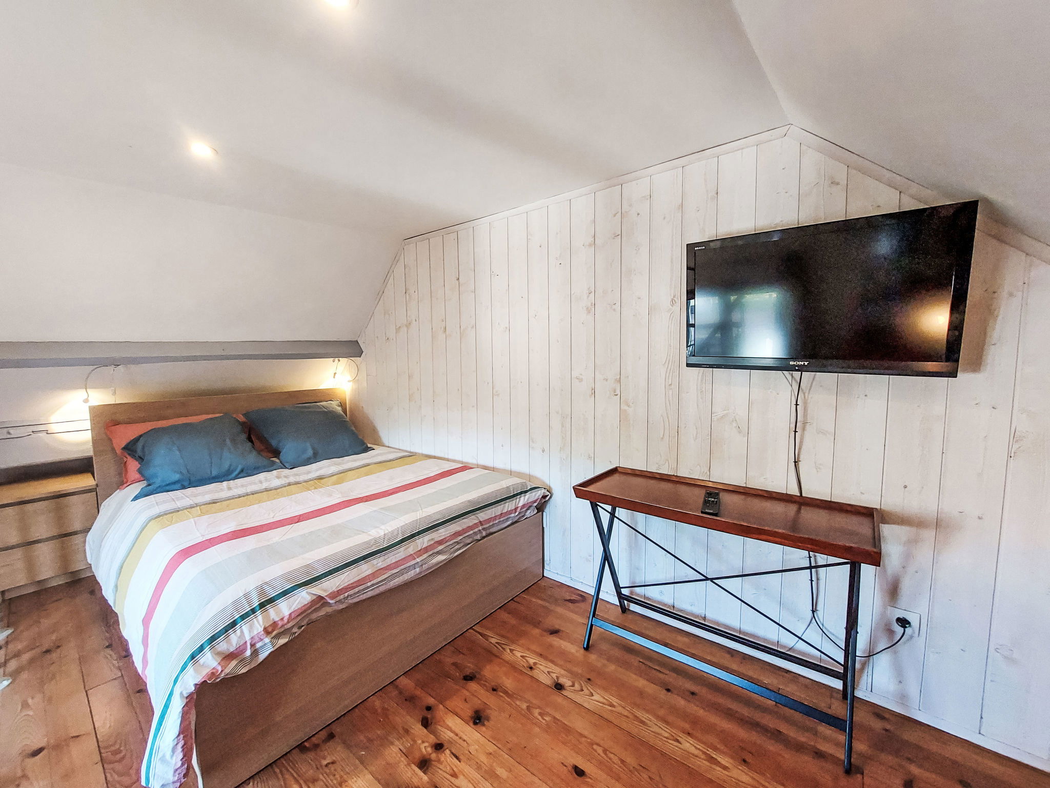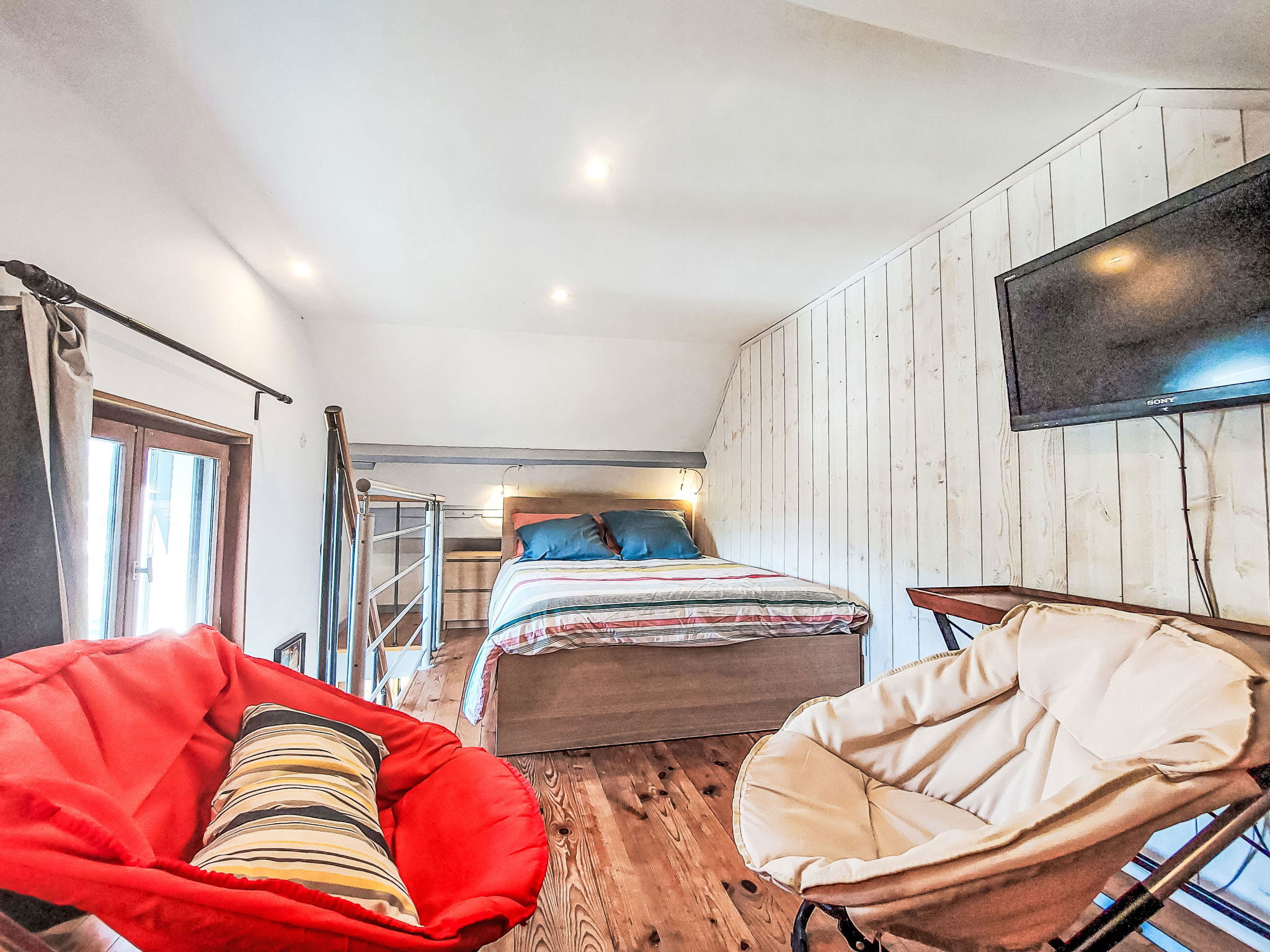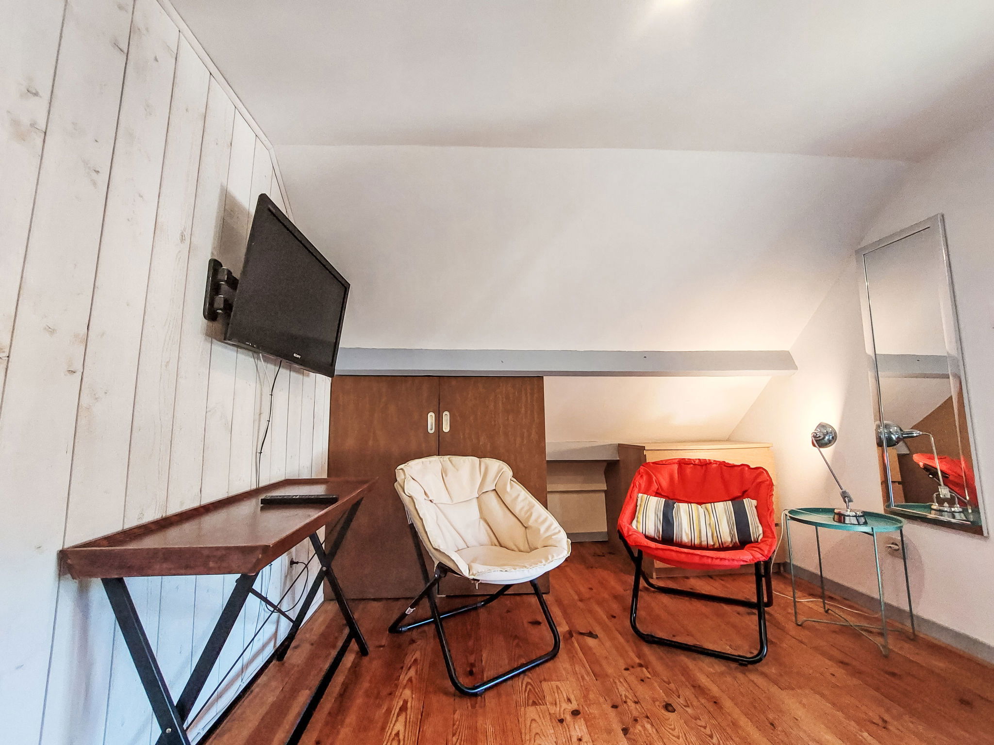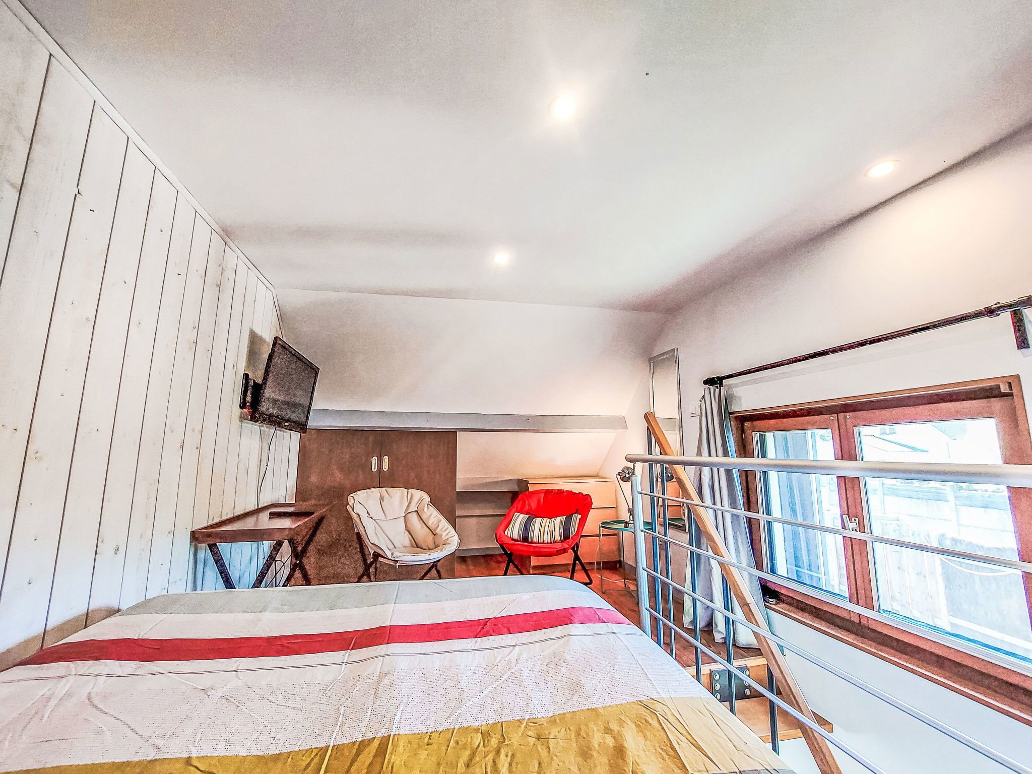 "Charme de Banastère", 2-room terraced house 20 m2. Beautiful furnishings: living/dining room with dining nook and kitchen corner. Exit to the garden. Open kitchen (oven, 2 ceramic glass hob hotplates, toaster, kettle, electric coffee machine). Shower, sep. WC. Upper floor: (steep stair), 1 open small room with sloping ceilings, ceiling height 180 cm with 1 french bed (140 cm, length 190 cm). Electric heating. Garden 200 m2, lawn. Terrace furniture, deck chairs (2). Facilities: washing machine, hair dryer. Internet (WiFi, free). Parking at the house. Please note: non-smokers only. Maximum 1 pet/ dog allowed. Smoke alarm. Offer by a private individual according to Art. 155, IV of CGI. 562400008978B