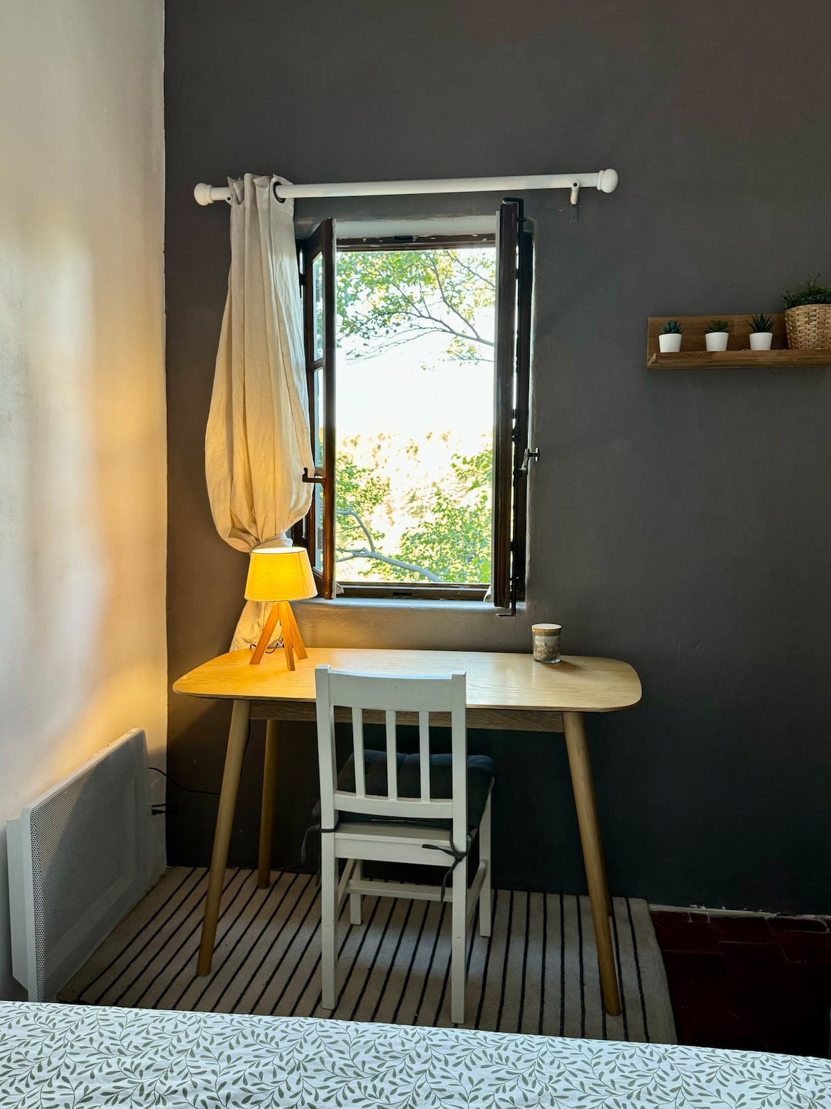 Free parking throughout the village. An additional, never-filled parking lot (parking du château) is just 2 steps from the house, on the heights of the village.