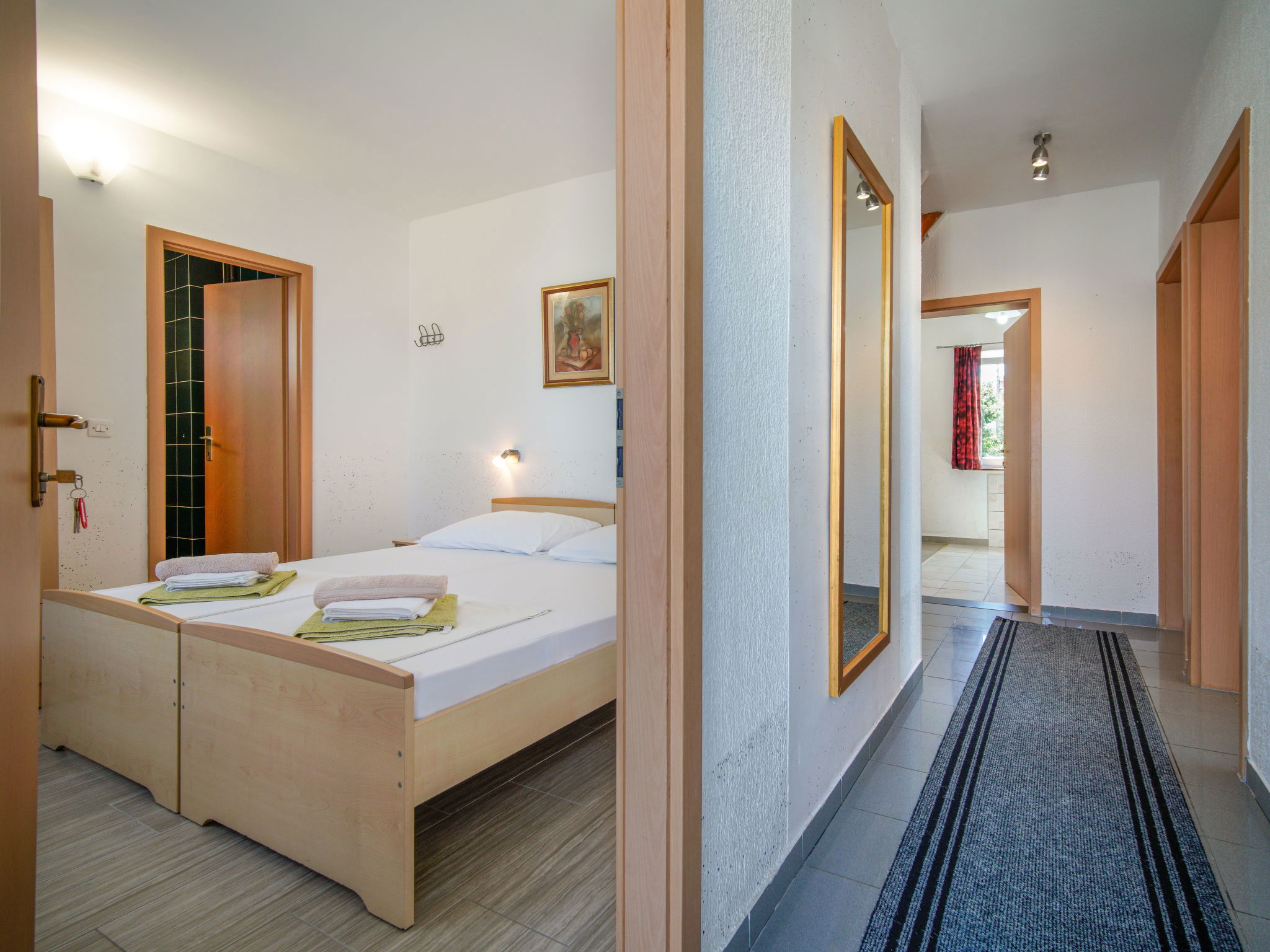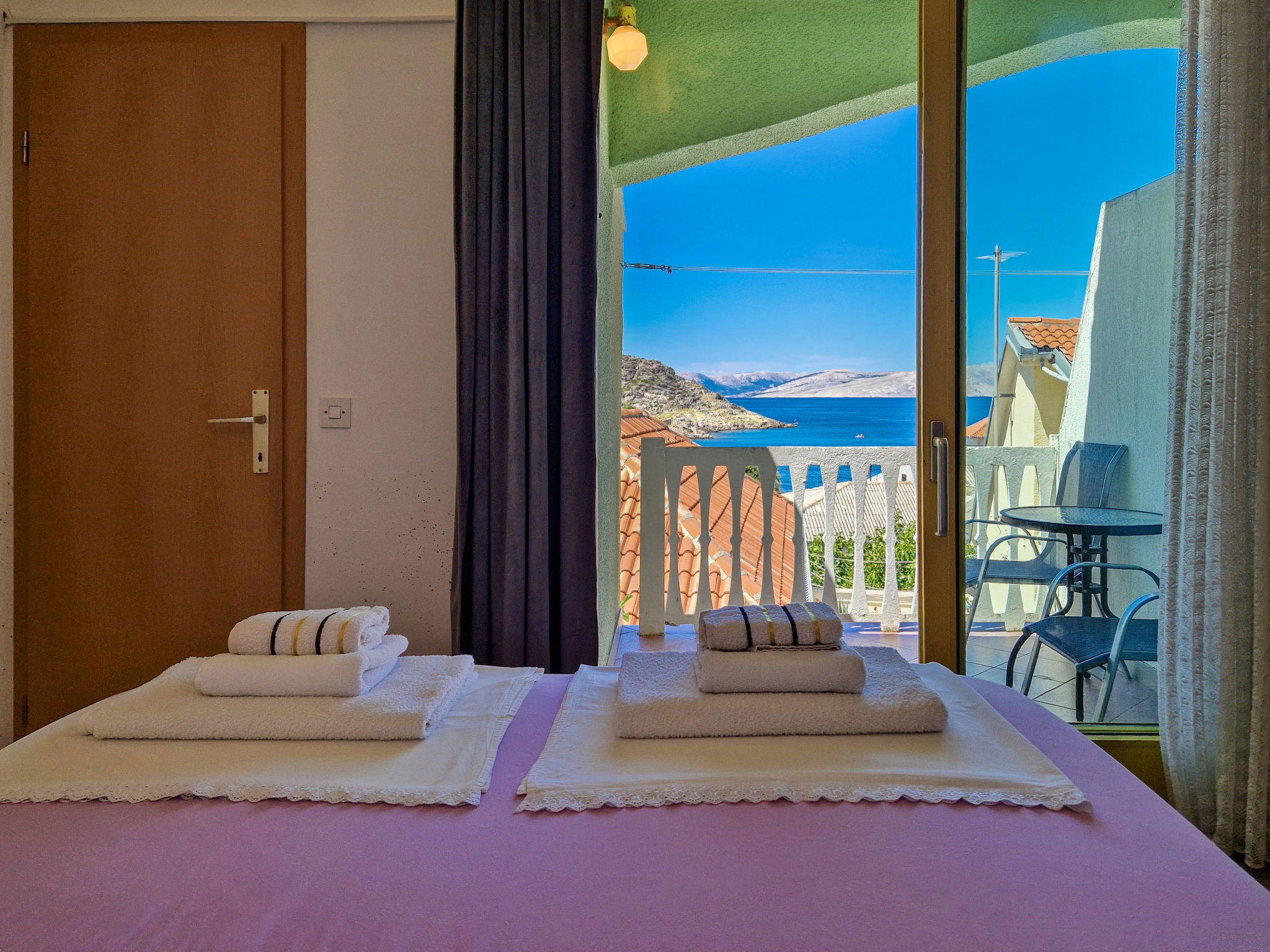 Single-family house "Stanka", 3 storeys. 8 km from the centre of Senj, 150 m from the centre of Sveti Juraj, 31 km from the centre of Novi Vinodolski, 100 m from the sea, 100 m from the beach. For shared use: property 600 m2 (fenced) with trees. Barbecue. In the house: internet access, washing machine (for shared use, extra). Stepped path (20 steps) to the house. Parking (for 2 cars) on the premises. Shop 150 m, bus stop 50 m, pebble beach 100 m. Marina 8 km. Please note: the owner lives on the same property. The unit consists of 2 apartments, rented as one unit.