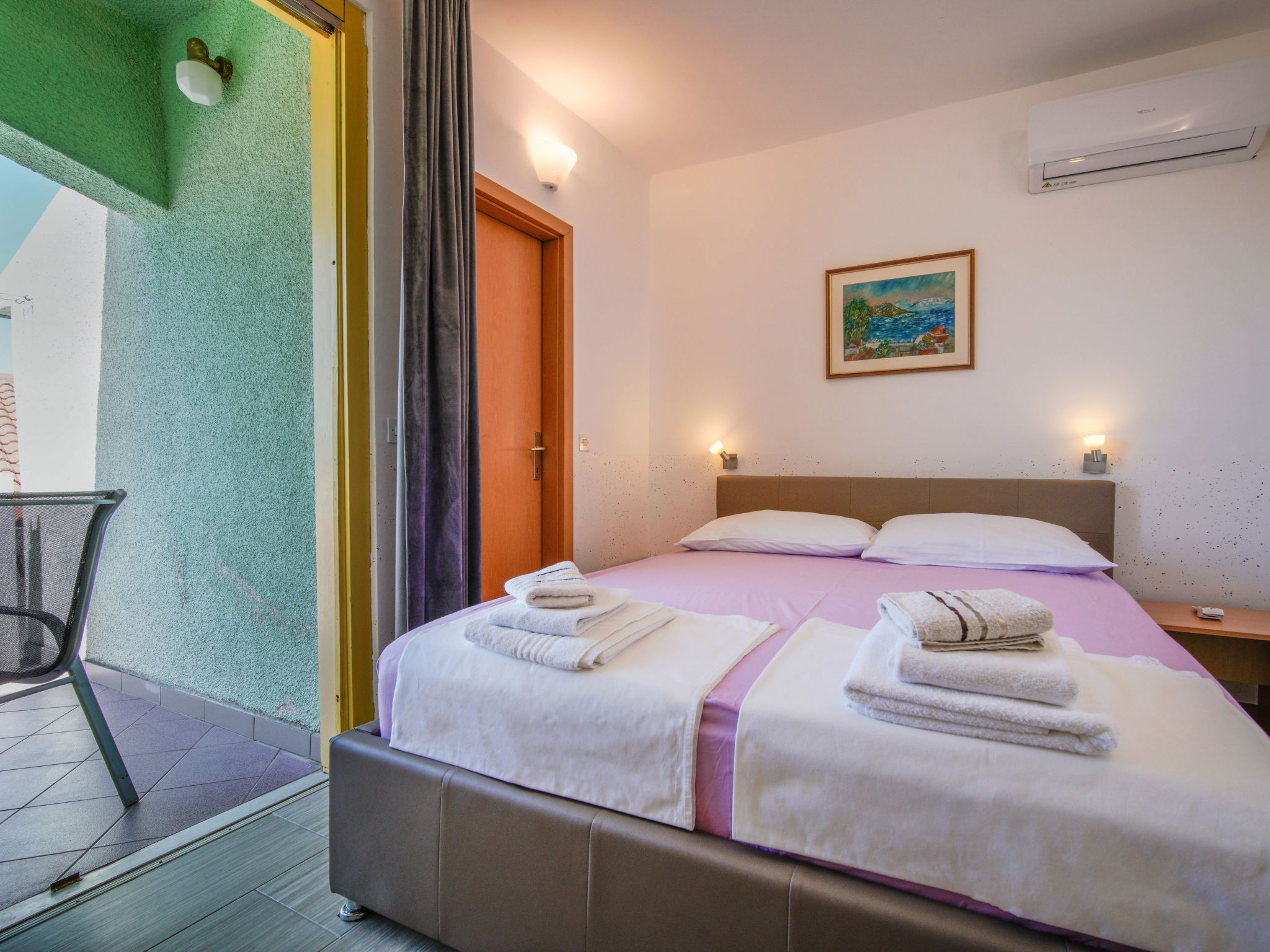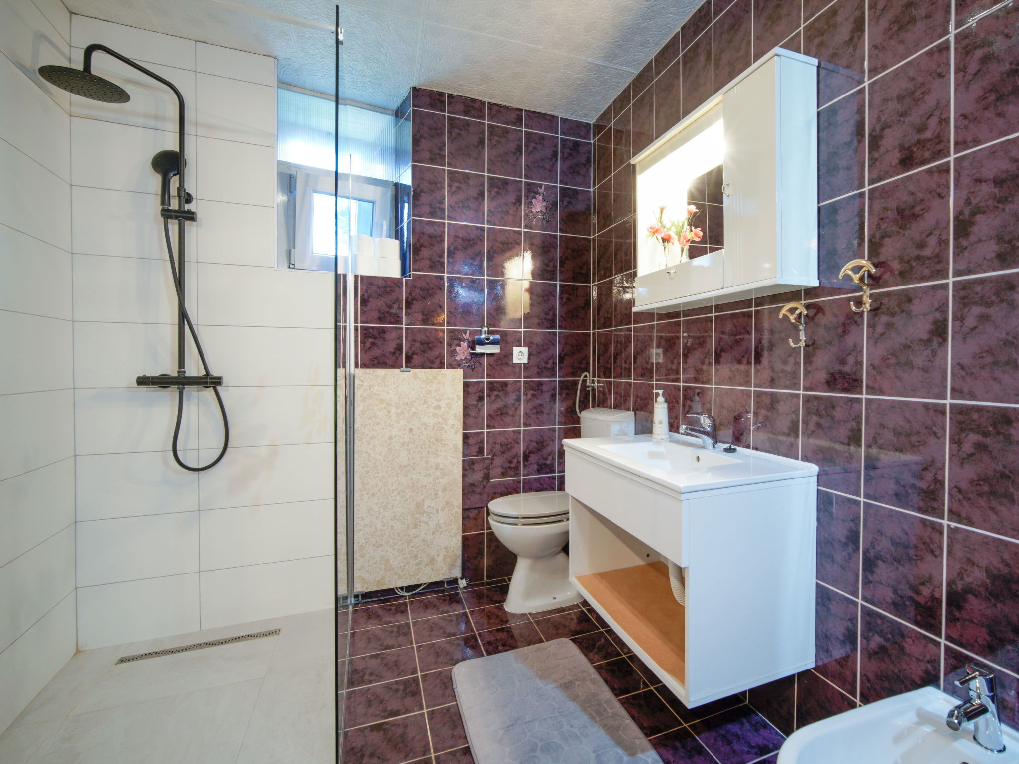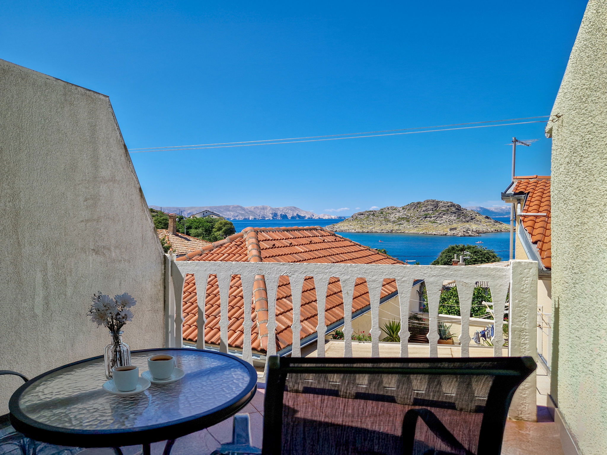 8-room house 170 m2 on 3 levels. Living/dining room with satellite TV and air conditioning. Exit to the terrace. 1 room with 1 bed (90 cm, length 200 cm), 1 double bed (2 x 90 cm, length 200 cm). 1 room with 1 french bed (160 cm, length 200 cm). Kitchen (oven, dishwasher, 4 induction hot plates, toaster, kettle, microwave, electric coffee machine). Shower/WC. Upper floor: (exterior staircase) living/dining room with satellite TV. 1 room with 2 beds (90 cm, length 200 cm), shower/WC. 2 rooms, each room with 1 french bed (160 cm, length 200 cm), shower/WC and air conditioning. Exit to the balcony. Open kitchen (oven, dishwasher, 4 induction hot plates, toaster, kettle, microwave, electric coffee machine) with dining table. Shower/WC. 2nd upper floor: (steep stair), 1 room with sloping ceilings with 1 french bed (160 cm, length 200 cm), separate WC and air conditioning. No heating option. 4 balconies 5 m2, terrace 15 m2. Terrace furniture, balcony furniture, deck chairs. View of the sea. Facilities: Internet (WiFi, free). Maximum 1 small pet/ dog allowed.