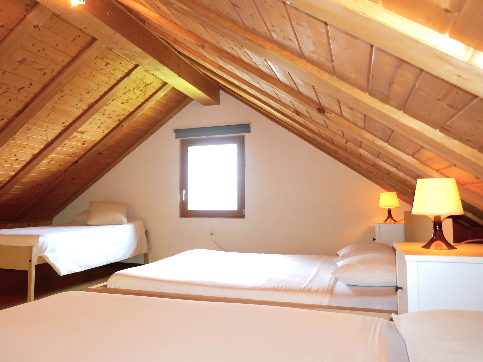 "Rustico Pamela", 2-room cottage 60 m2 on 2 levels, south facing position. Spacious, partly with sloping ceilings, simple and rustic furnishings: open living/dining room with Scandinavian wood stove, satellite TV, flat screen and radio. Exit to the terrace, pergola. Open kitchen (Gas stove, 4 gas rings, fondue Set (cheese)) with dining nook. Shower/WC. Wood heating. Solar power. Upper floor: (open staircase) open gallery with sloping ceilings with 1 french bed (1 x 140 cm, length 200 cm), 1 double bed (1 x 160 cm, length 200 cm). Terrace. Terrace furniture, barbecue, deck chairs (2). Marvellous panoramic view of the mountains, the valley and the countryside. Facilities: children's high chair, baby cot for up to 2 year olds (extra). Please note: suitable for families. Non-smoking house. Maximum 1 pet/ dog allowed. Instead of an enclosed bedroom, some sleeping areas are located in an open-plan area (gallery, alcove, etc.). NL-00002080