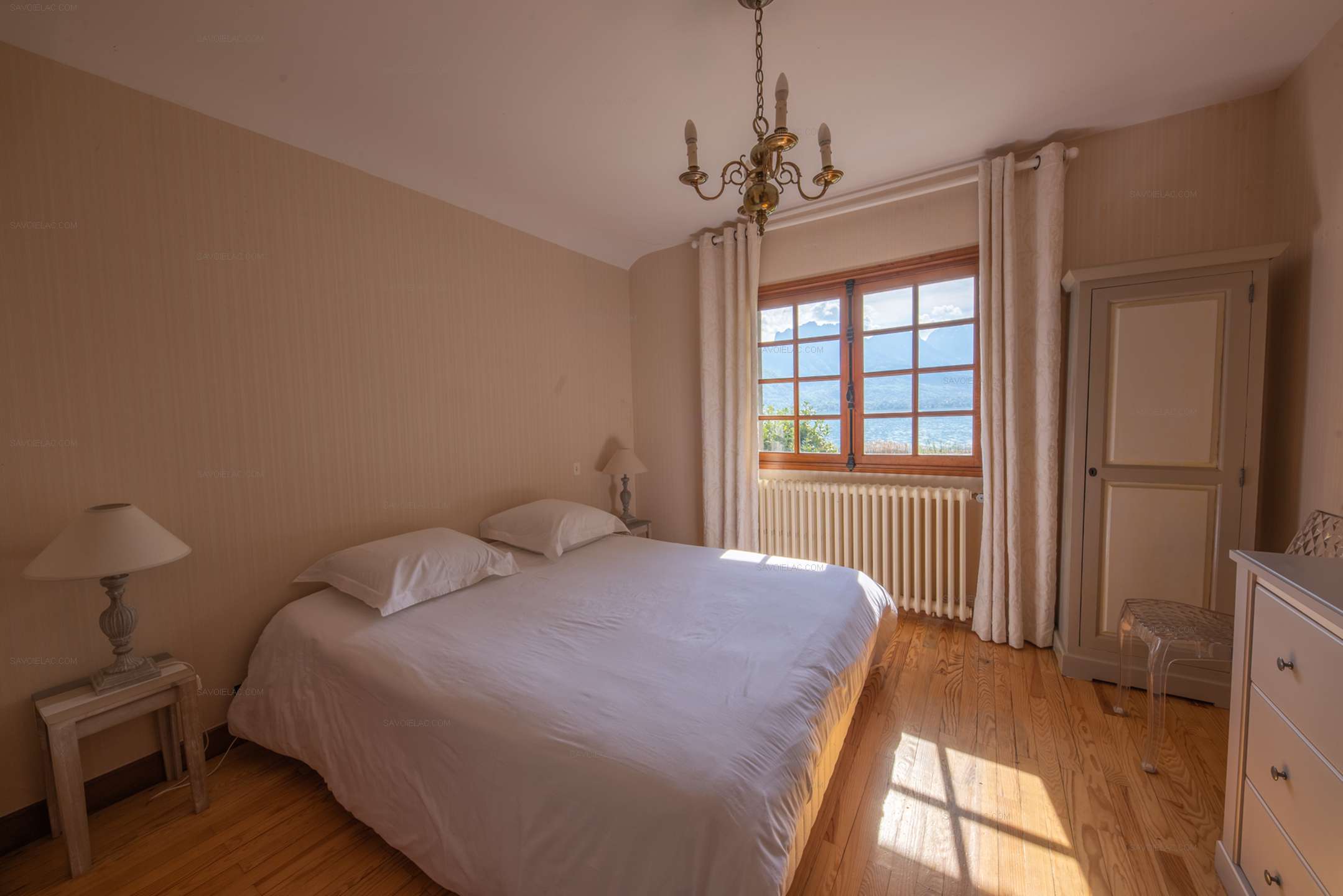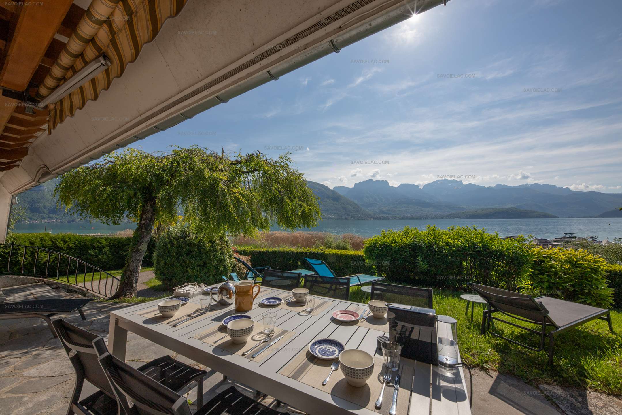 On the edge of the lake, charming holiday villa for 9 people with a splendid view of the lake and the mountains. Immediate proximity to the cycle track which will lead you to the old town of Annecy.