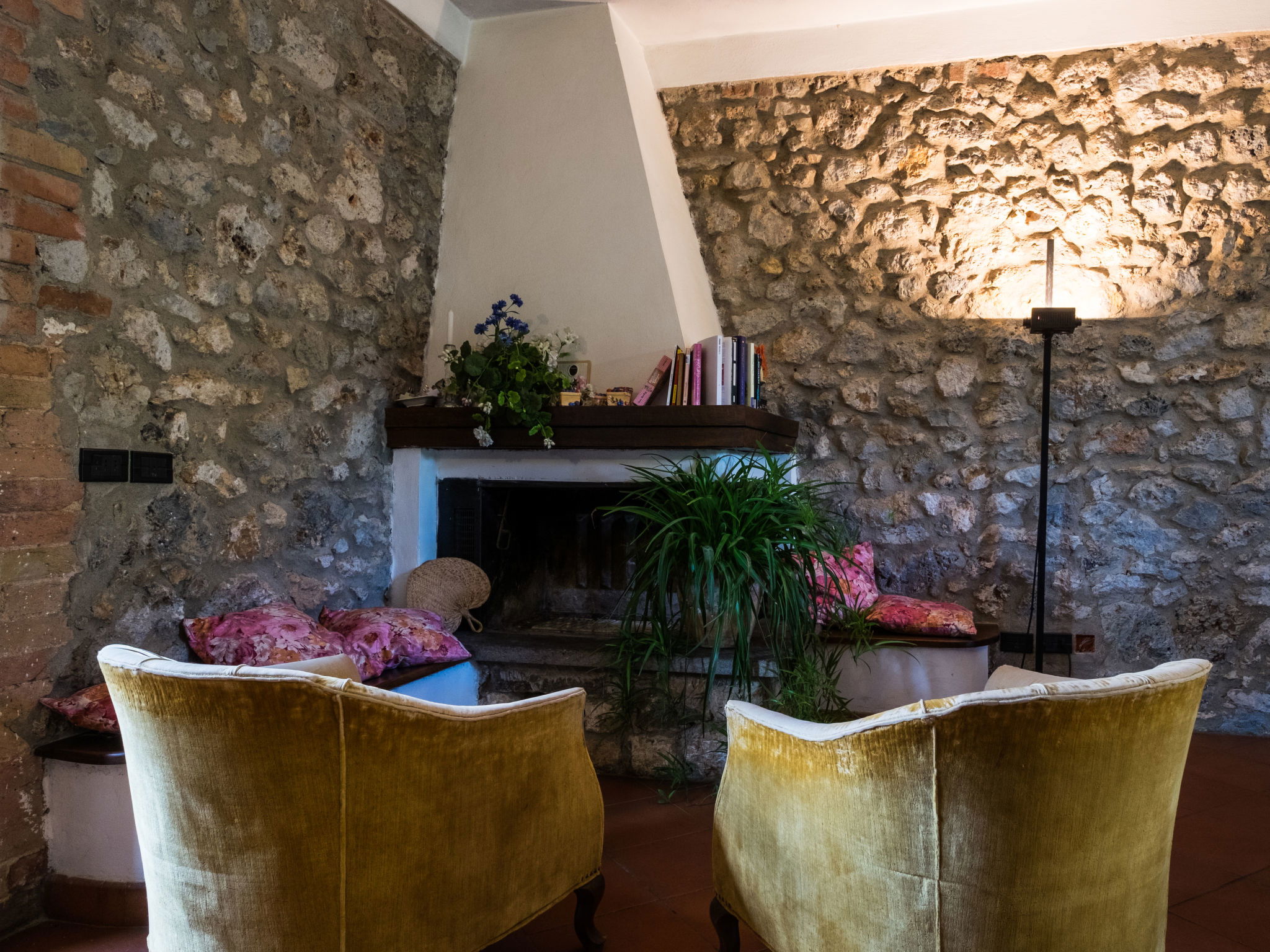 Montecagnano 12 km from Siena: Beautiful agricultural estate "Bellaria", 2 storeys, detached, surrounded by trees. 4 houses in the residence. 4 apartments in the residence. 12 km from the centre of Siena, 1.1 km from the centre of Montecagnano, outside the resort, 67 km from the centre of Firenze, in a secluded position, 92 km from the sea. For shared use: beautiful terraced garden, 3 ha (fenced) with plants and trees, natural garden, orchard, swimming pool fenced (15 x 7 m, depth 100 - 250 cm, seasonal availability: 15.May. - 30.Sep. pool opening hours: 09:00-19:00). Outdoor shower. In the complex: washing machine (for shared use, extra). 1.7 km long motor access (via unmade road). Parking on the premises. Supermarket 8 km, sandy beach "Marina di Cecina" 92 km. Local sale of farm products. Please note: the owner lives in the same residence. The owner has a dog.