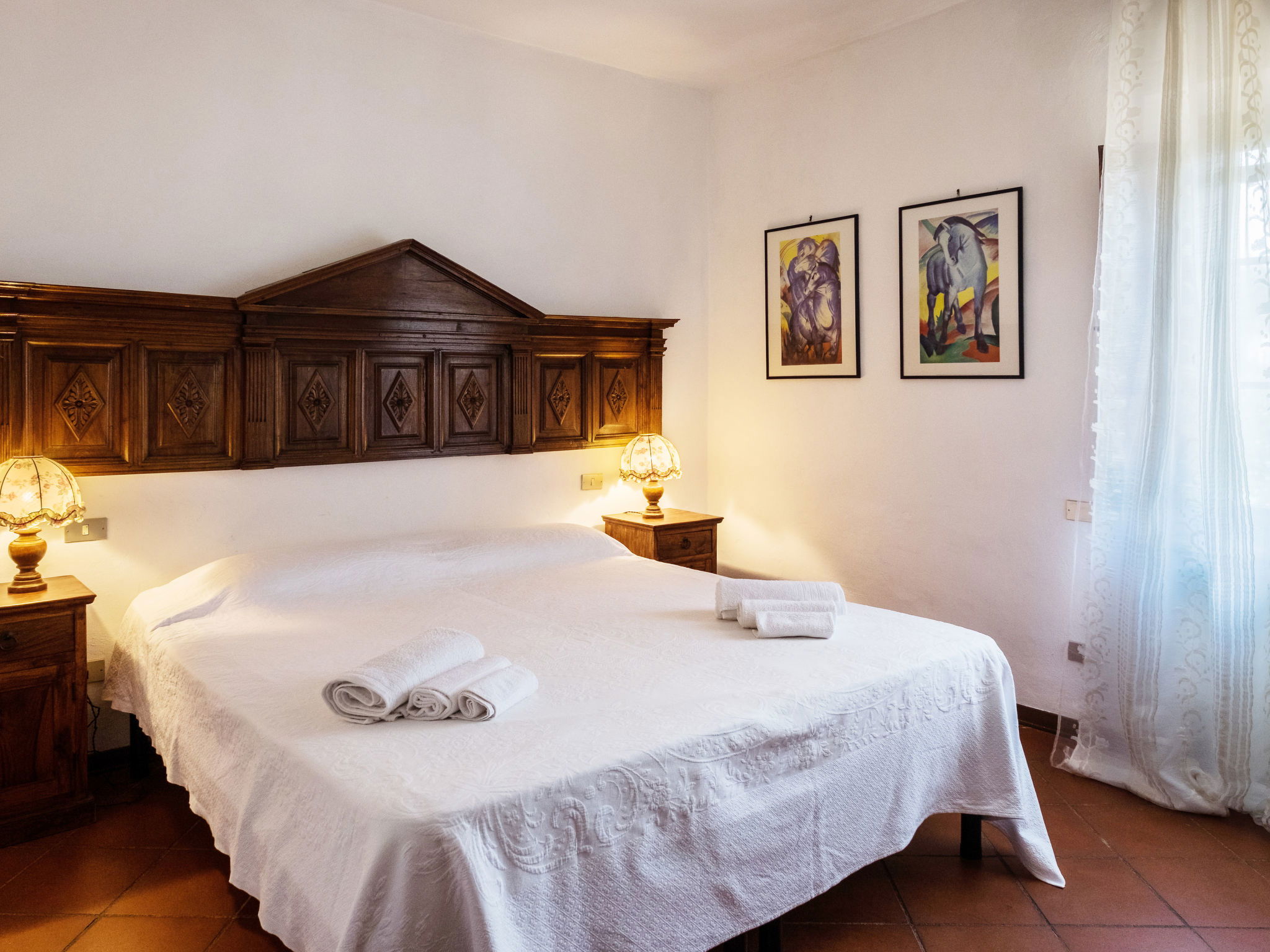 "Il Boschetto", 3-room house 100 m2, on the ground floor. Object suitable for 4 adults. Rustic and tasteful furnishings: living/dining room with open-hearth fireplace, dining table, kitchen corner and air conditioning. Exit to the garden. 2 rooms, each room with 1 double bed (160 cm), air conditioning. Exit to the garden. Small, open kitchen (oven, dishwasher, 4 gas rings, toaster, kettle, freezer, electric coffee machine). 2 showers/bidet/WC. Gas heating (extra), air-conditioning (extra). Comfortable furnishings in the country house style. Terrace, large garden. Terrace furniture, barbecue (portable), box-room. Beautiful view of the garden, the countryside and the forest. Facilities: children's high chair, baby cot. Internet (WiFi, free). Parking at the house. Please note: non-smokers only. Maximum 1 pet/ dog allowed. Fire extinguisher. IT052032B5DIG46BEY