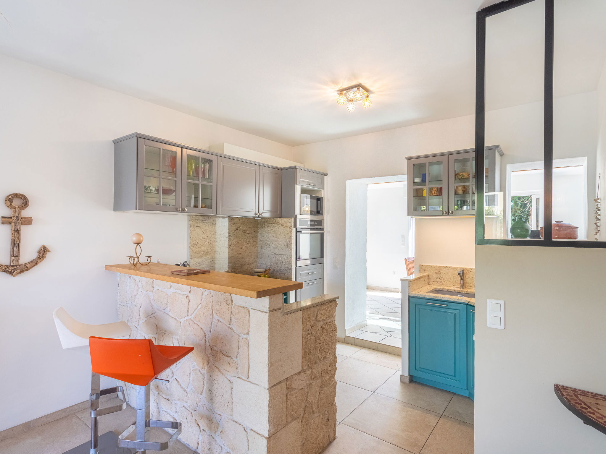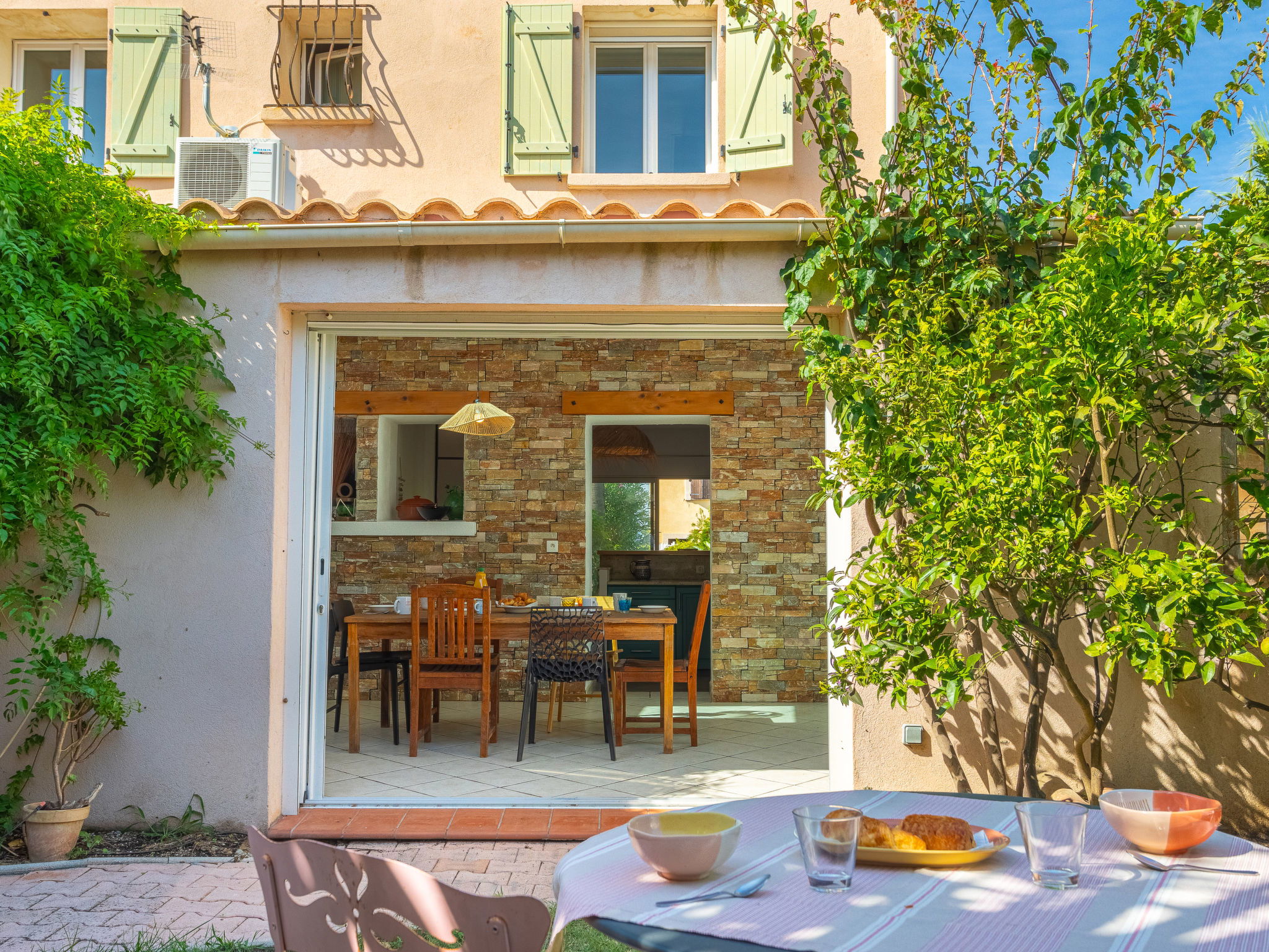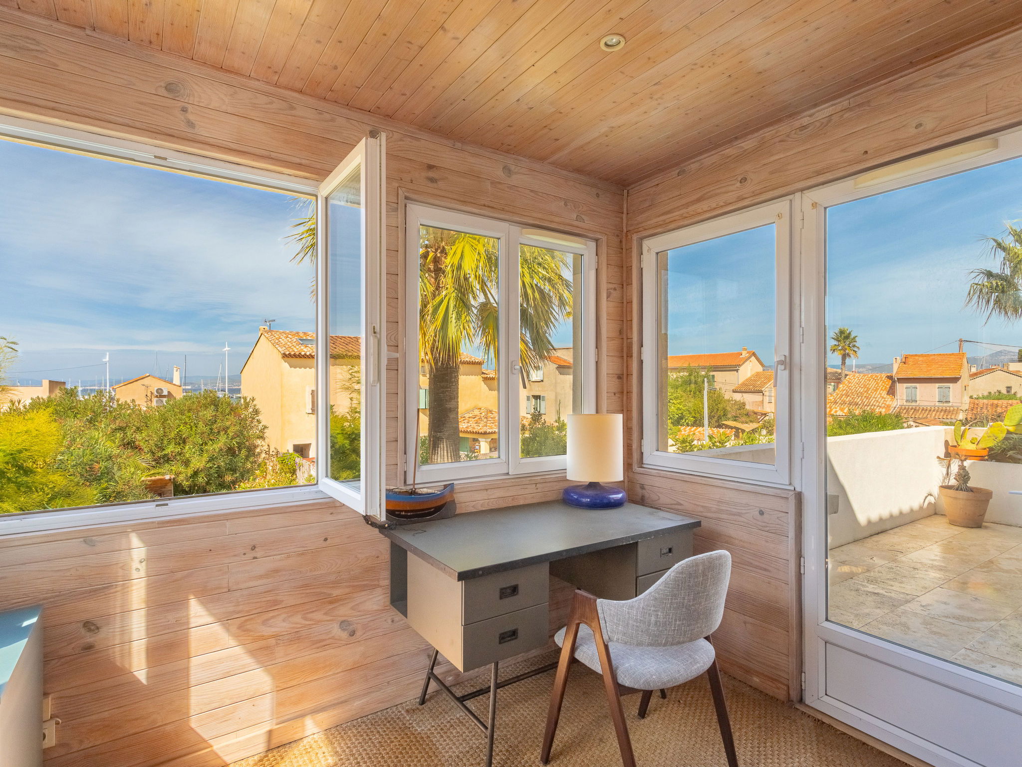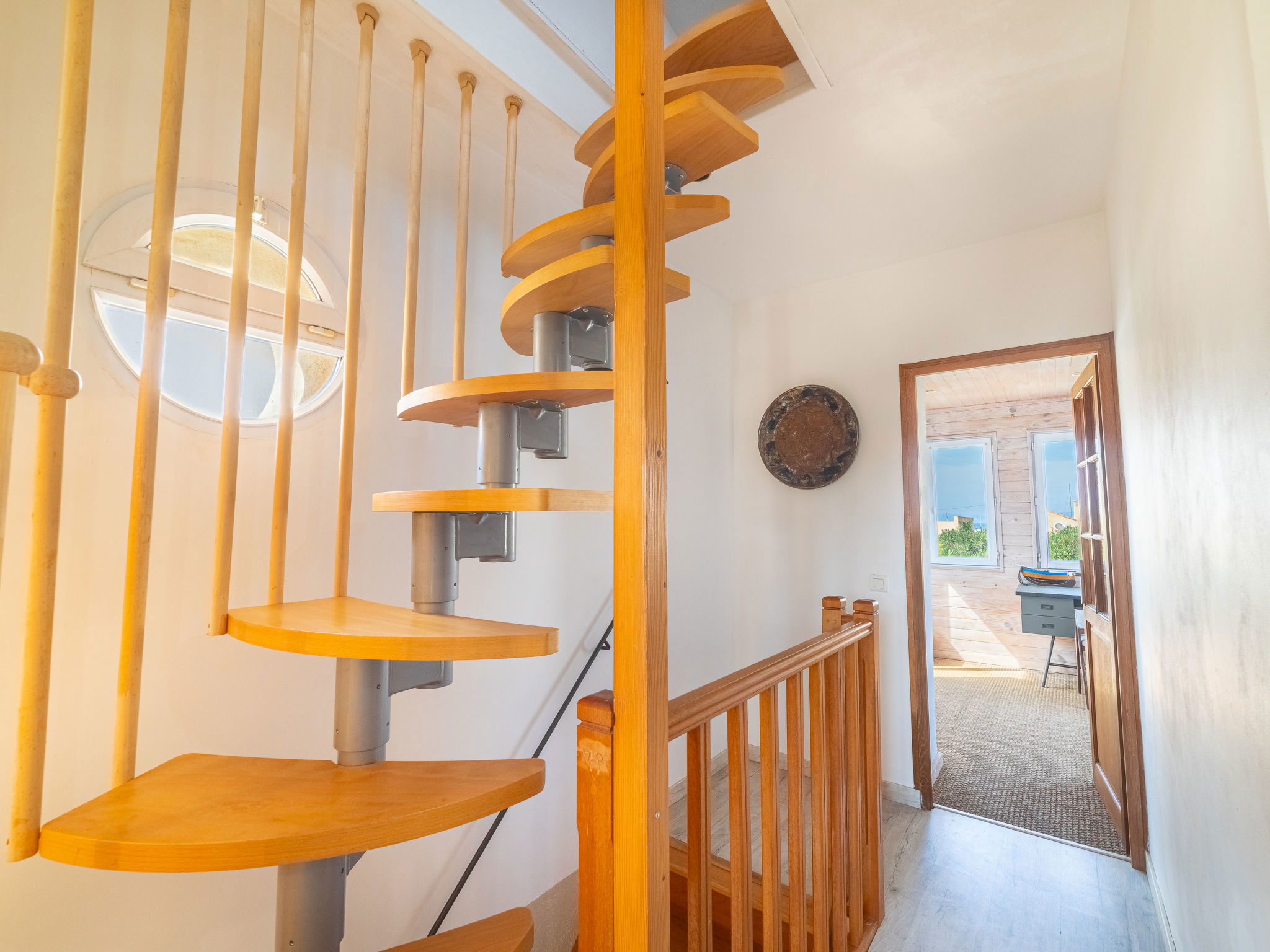 "La maison du Port", 5-room house 150 m2 on 3 levels. Beautiful furnishings: living room with Scandinavian wood stove, TV and digital TV (flat screen). Exit to the terrace. Dining room with dining table. Exit to the patio. 1 room with 1 french bed (140 cm, length 190 cm), shower/WC. Exit to the patio. Open kitchen (oven, dishwasher, 3 induction hot plates, toaster, kettle, microwave, freezer, electric coffee machine). Sep. WC. Upper floor: office. Exit to the terrace. 1 room with Dressing room with 1 french bed (160 cm, length 190 cm), air conditioning. Exit to the terrace. 1 room with 1 french bed (140 cm, length 190 cm), air conditioning. Shower/WC. 2nd upper floor: (steep stair), 1 room with sloping ceilings with rooflight with 1 french bed (140 cm, length 190 cm). Electric heating. Terrace furniture, barbecue (portable), deck chairs (6). Partial view of the sea and the port. Facilities: washing machine, iron. Internet (WiFi, free). Please note: one double bedroom is outside the apartment. Non-smoking house. Maximum 1 pet/ dog allowed. Smoke alarm. Offer by a private individual according to Art. 155, IV of CGI.