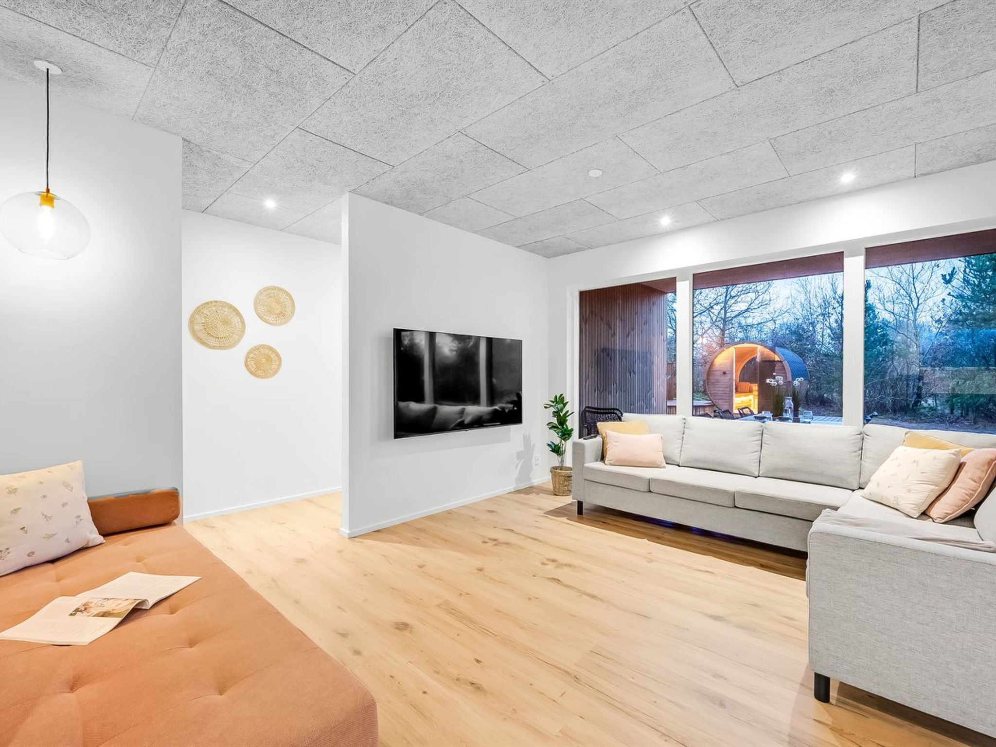 Single-family house, built in 2024. Private: natural state property 1'085 m2. Outdoor shower, barbecue. In the house: trampoline, washing machine, tumble dryer. Parking at the house. Grocery 6 km. Golf course 10 km. The owner does not accept any youth groups.