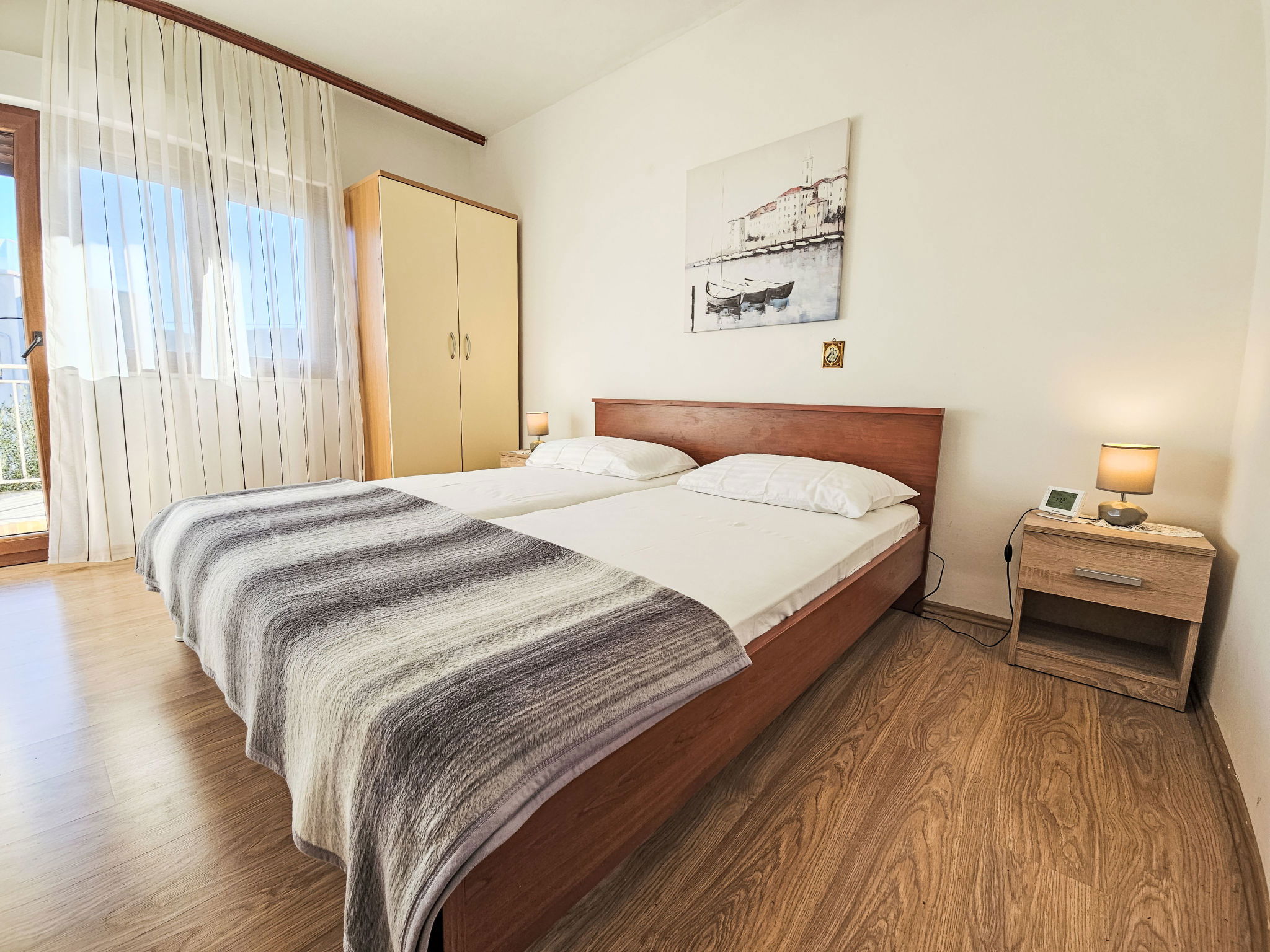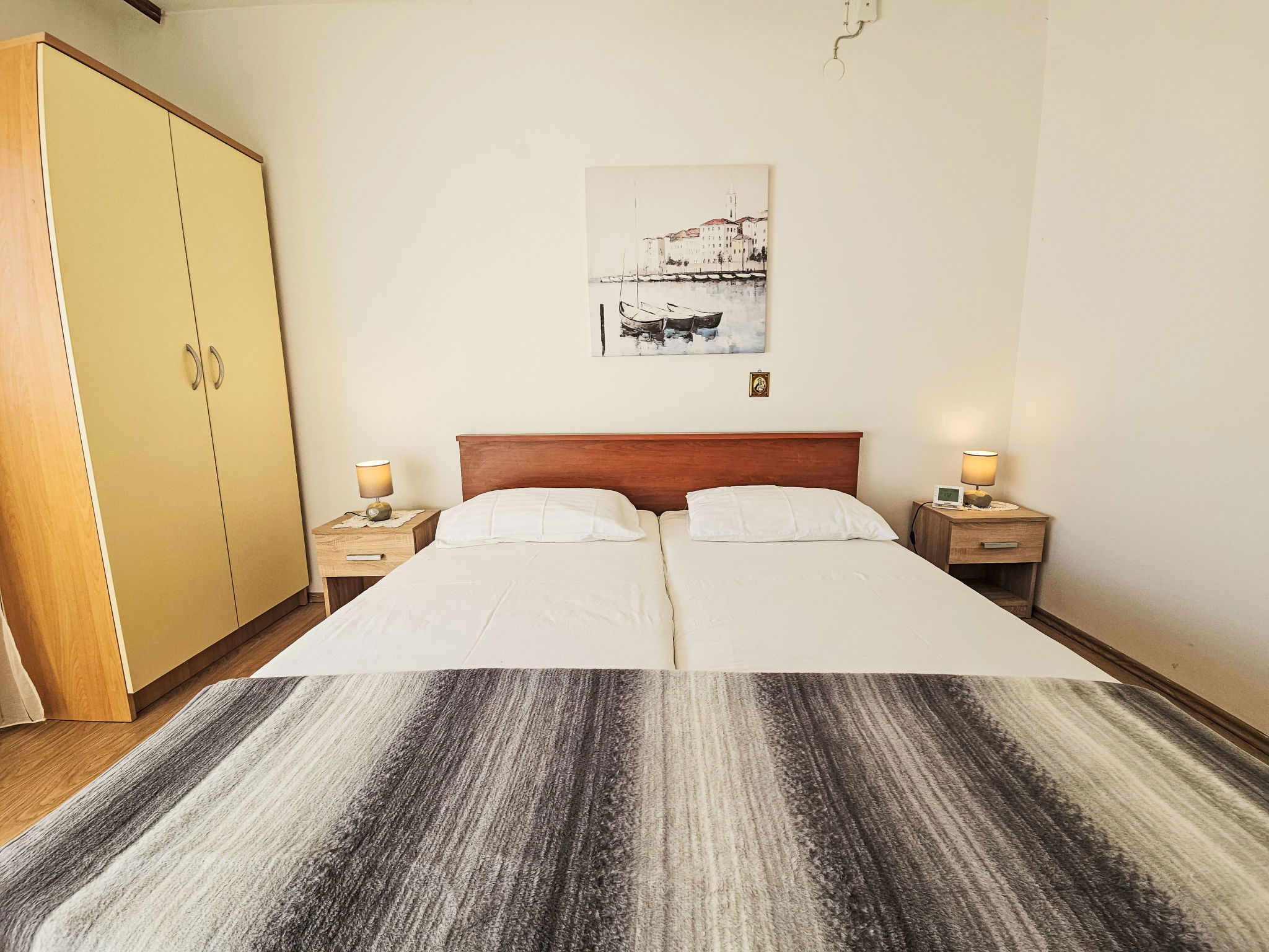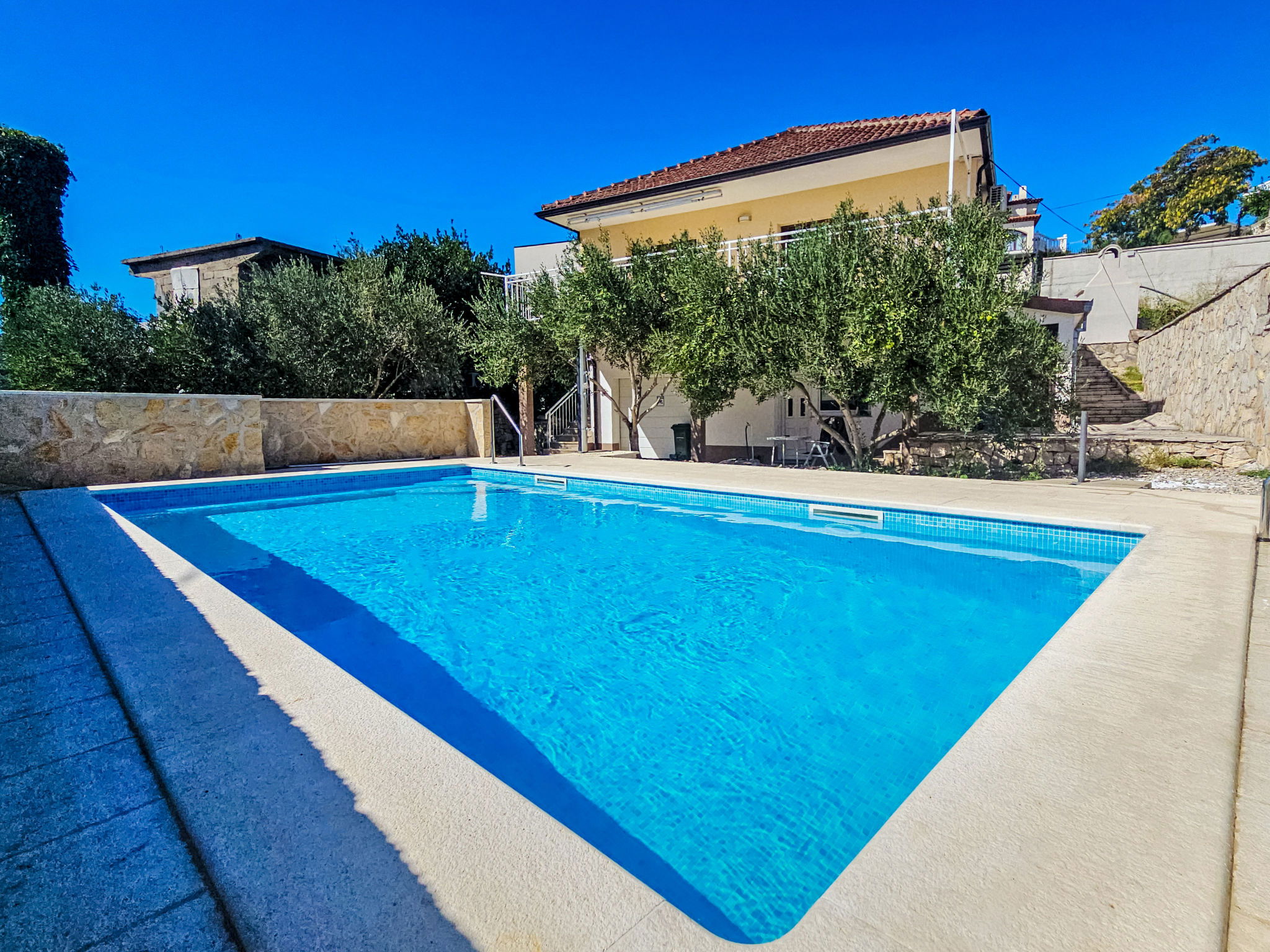 Single-family house "Palada". 700 m from the centre of Marina, in a quiet, sunny position, 500 m from the sea, 1 km from the beach, in a cul-de-sac. Private: property 400 m2 (fenced), swimming pool angular (7 x 3 m, depth 150 - 170 cm, seasonal availability: 01.May. - 01.Oct.) with internal staircase. Outdoor shower, terrace (30 m2), garden furniture, barbecue. In the house: internet access, washing machine. Parking (for 2 cars) at the house on the premises. Shop 500 m, restaurant 800 m, bus stop 400 m, pebble beach 1 km, rocky beach 1 km. Marina 600 m, tennis 10 km.