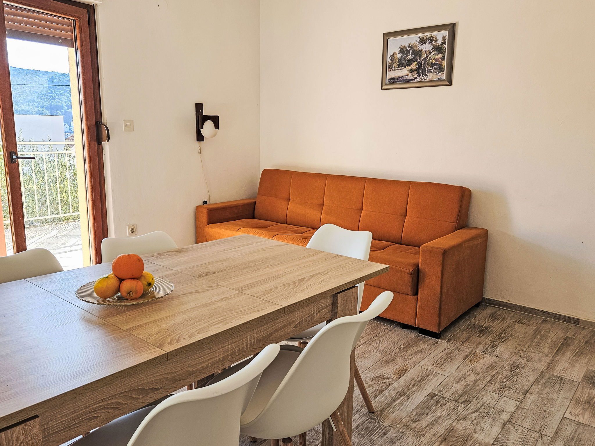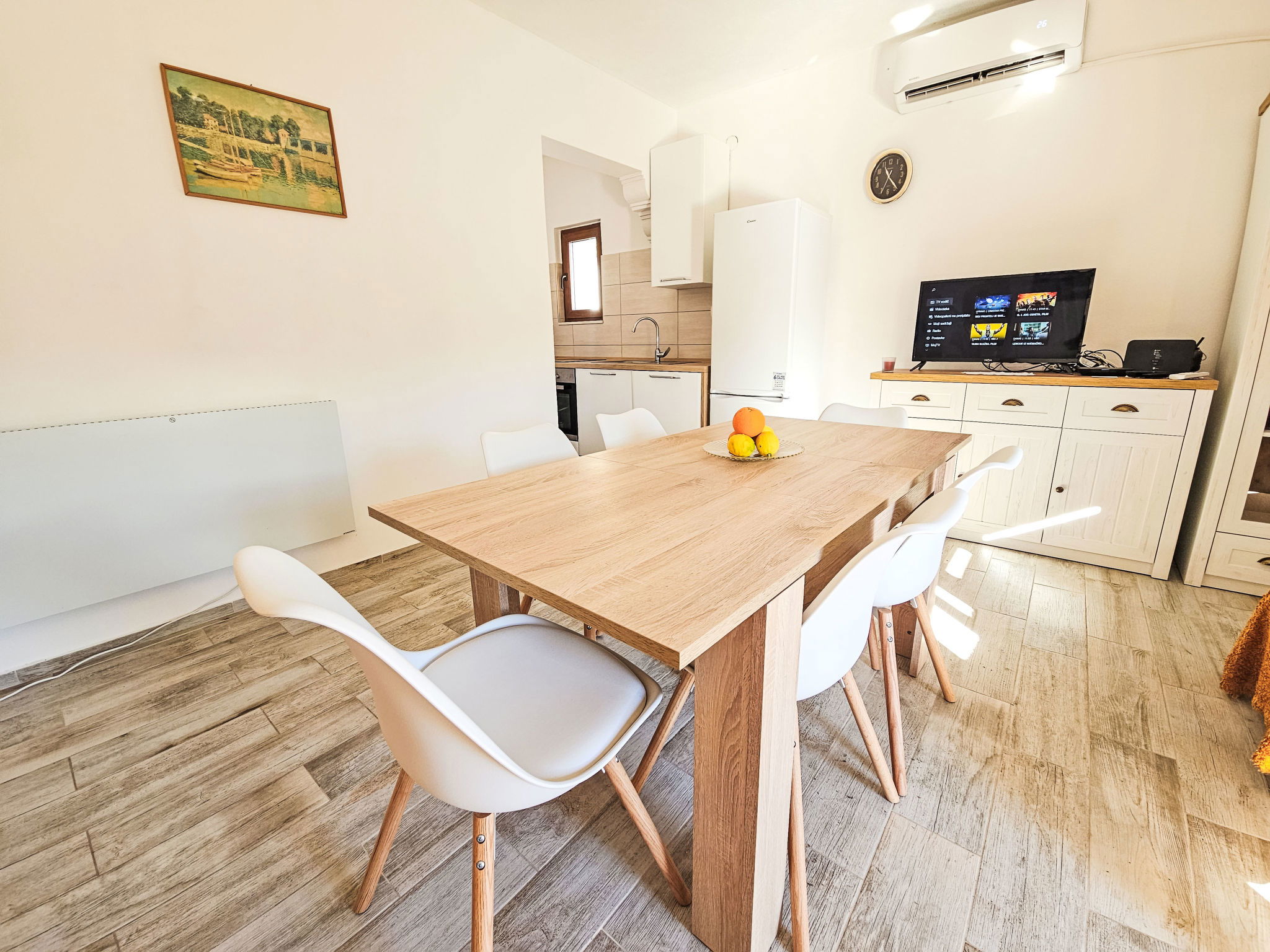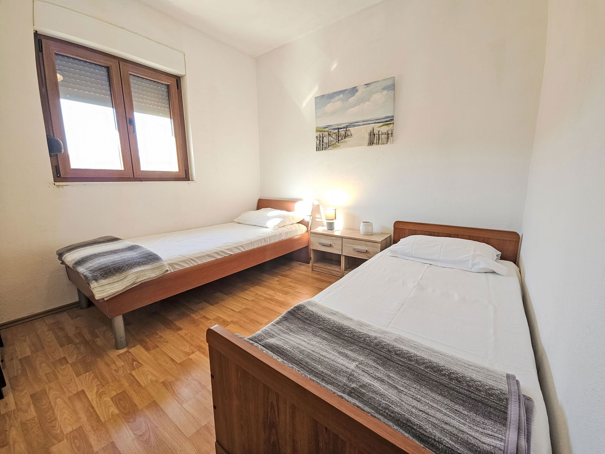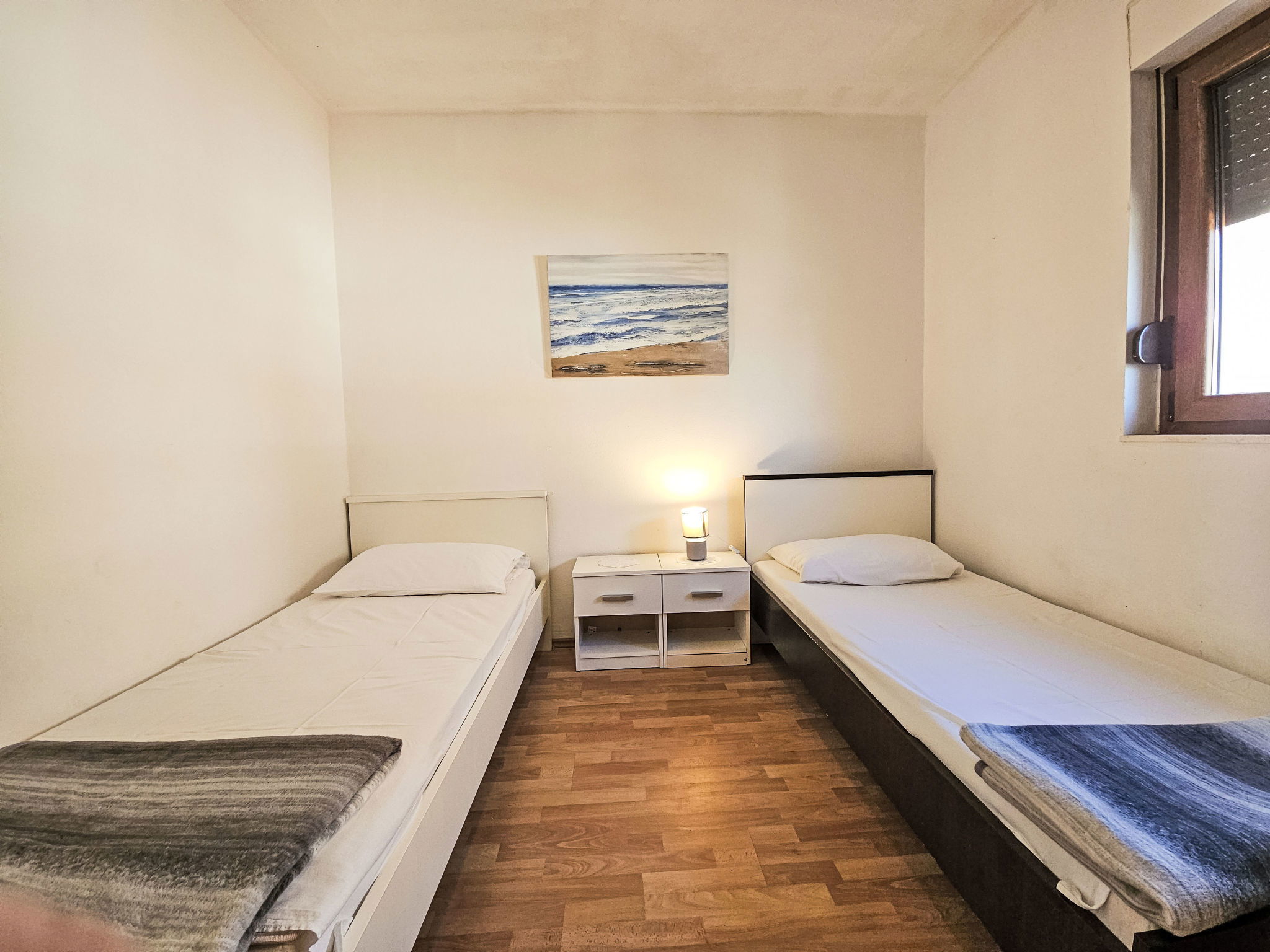 Single-family house "Palada". 700 m from the centre of Marina, in a quiet, sunny position, 500 m from the sea, 1 km from the beach, in a cul-de-sac. Private: property 400 m2 (fenced), swimming pool angular (7 x 3 m, depth 150 - 170 cm, seasonal availability: 01.May. - 01.Oct.) with internal staircase. Outdoor shower, terrace (30 m2), garden furniture, barbecue. In the house: internet access, washing machine. Parking (for 2 cars) at the house on the premises. Shop 500 m, restaurant 800 m, bus stop 400 m, pebble beach 1 km, rocky beach 1 km. Marina 600 m, tennis 10 km.