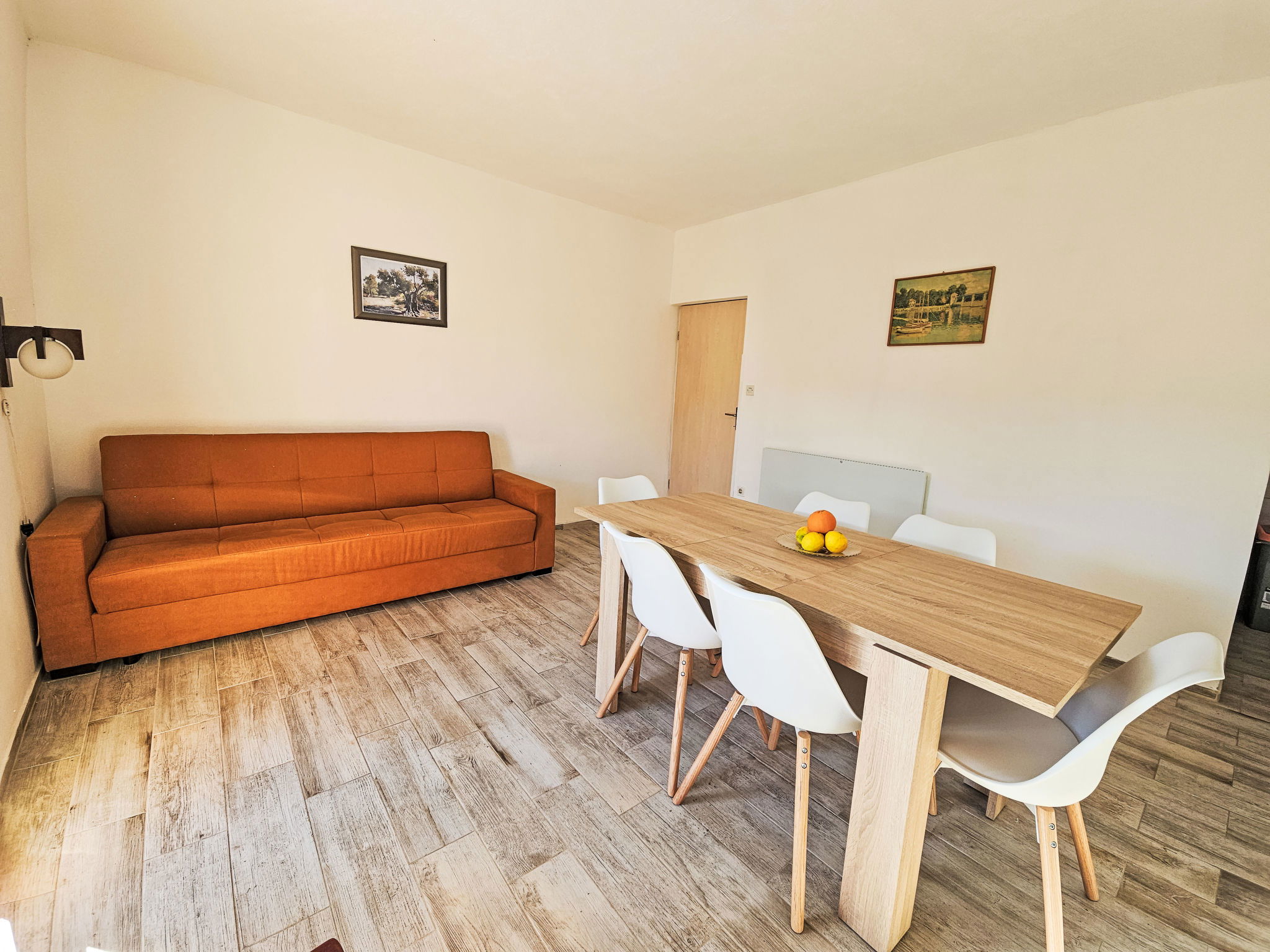 4-room apartment 90 m2. Living/dining room with satellite TV (flat screen), air conditioning. Exit to the balcony. 1 room with 1 double bed (2 x 90 cm, length 200 cm). 2 rooms, each room with 2 beds (90 cm, length 200 cm). Open kitchen (oven, dishwasher, 3 ceramic glass hob hotplates, microwave, freezer, electric coffee machine). 2 showers/WC. No heating option. Balcony 30 m2. Balcony furniture, deck chairs (6). View of the swimming pool. Facilities: washing machine. Internet (WiFi, free). Maximum 1 pet/ dog allowed.