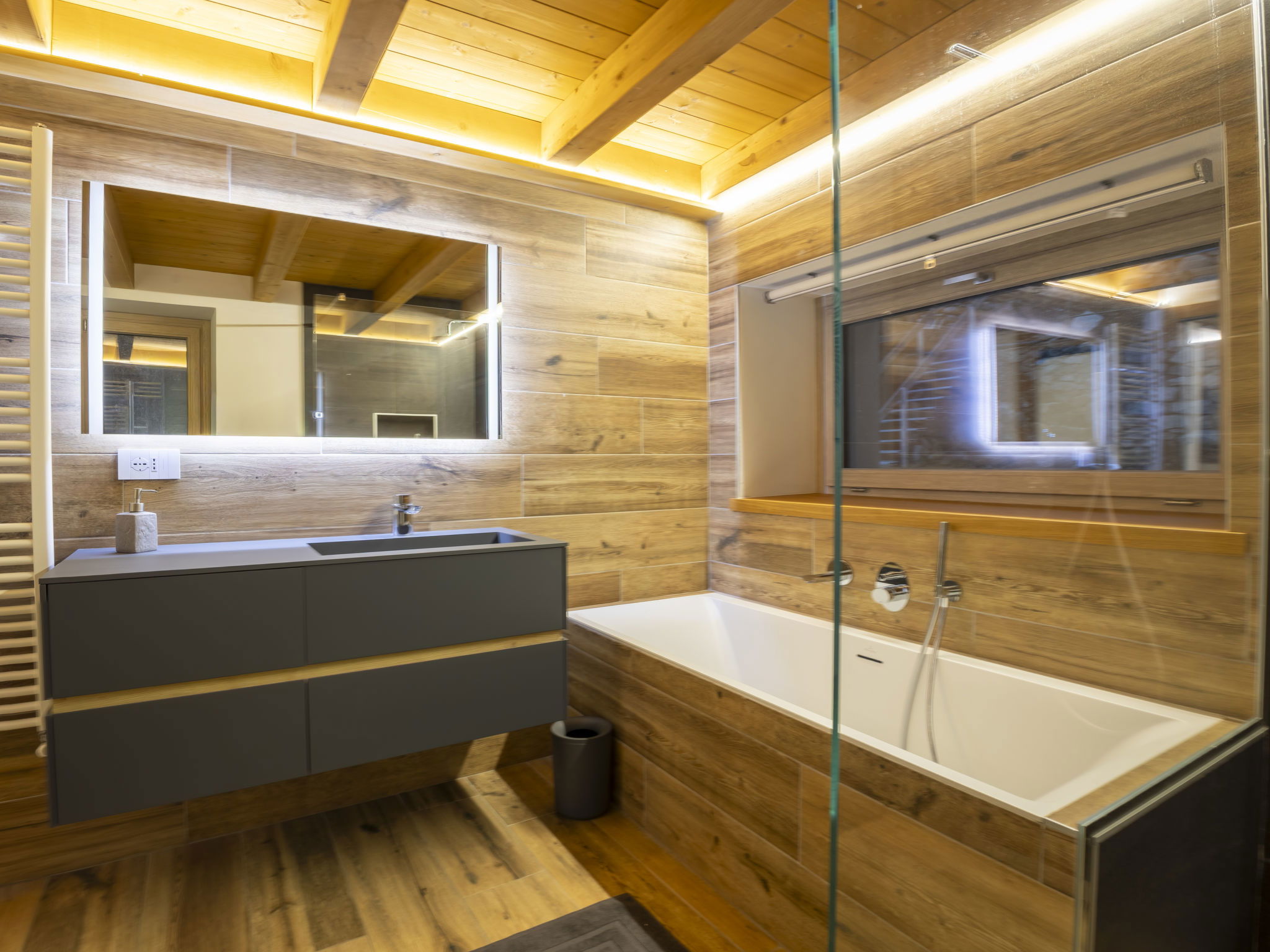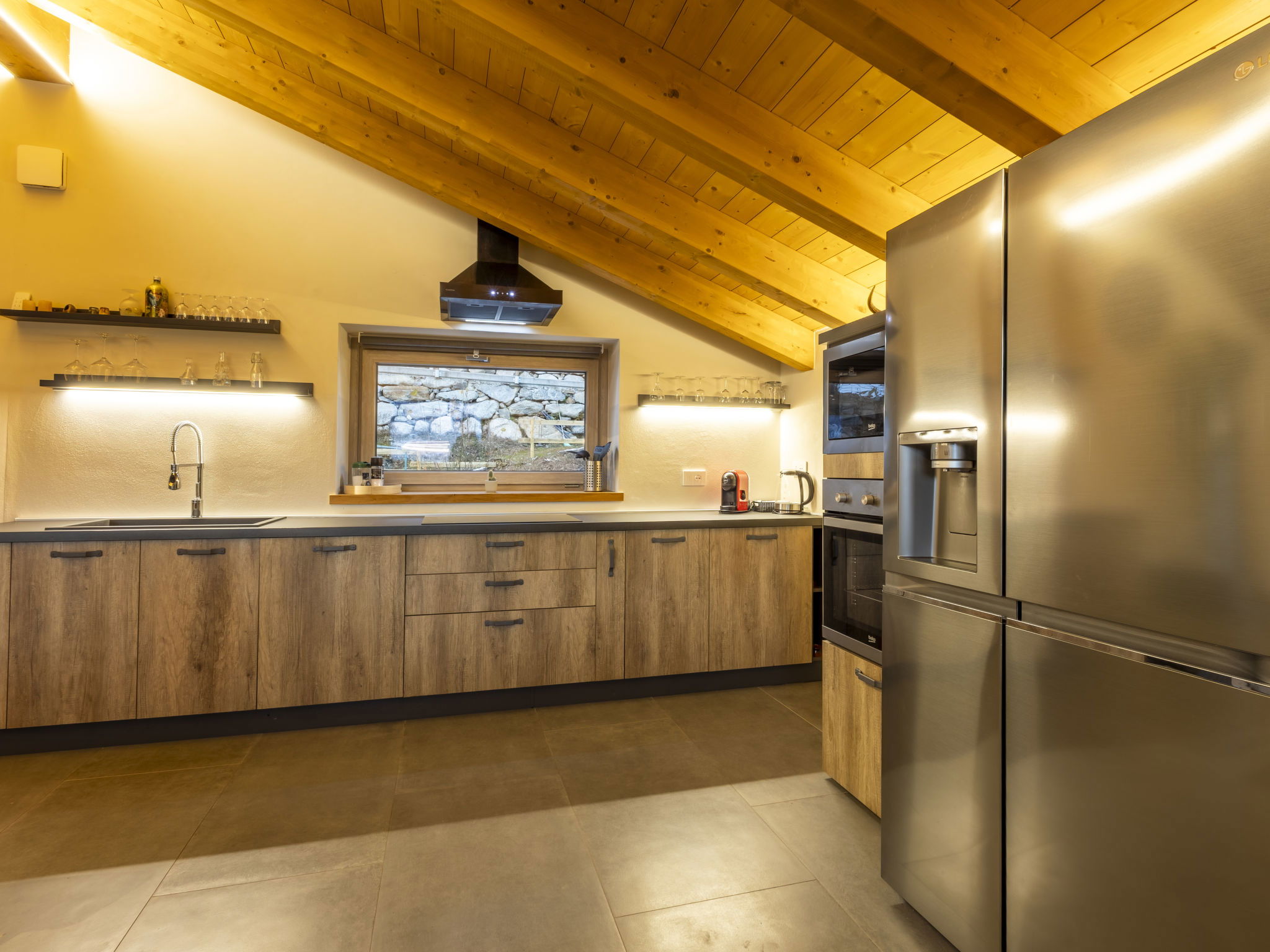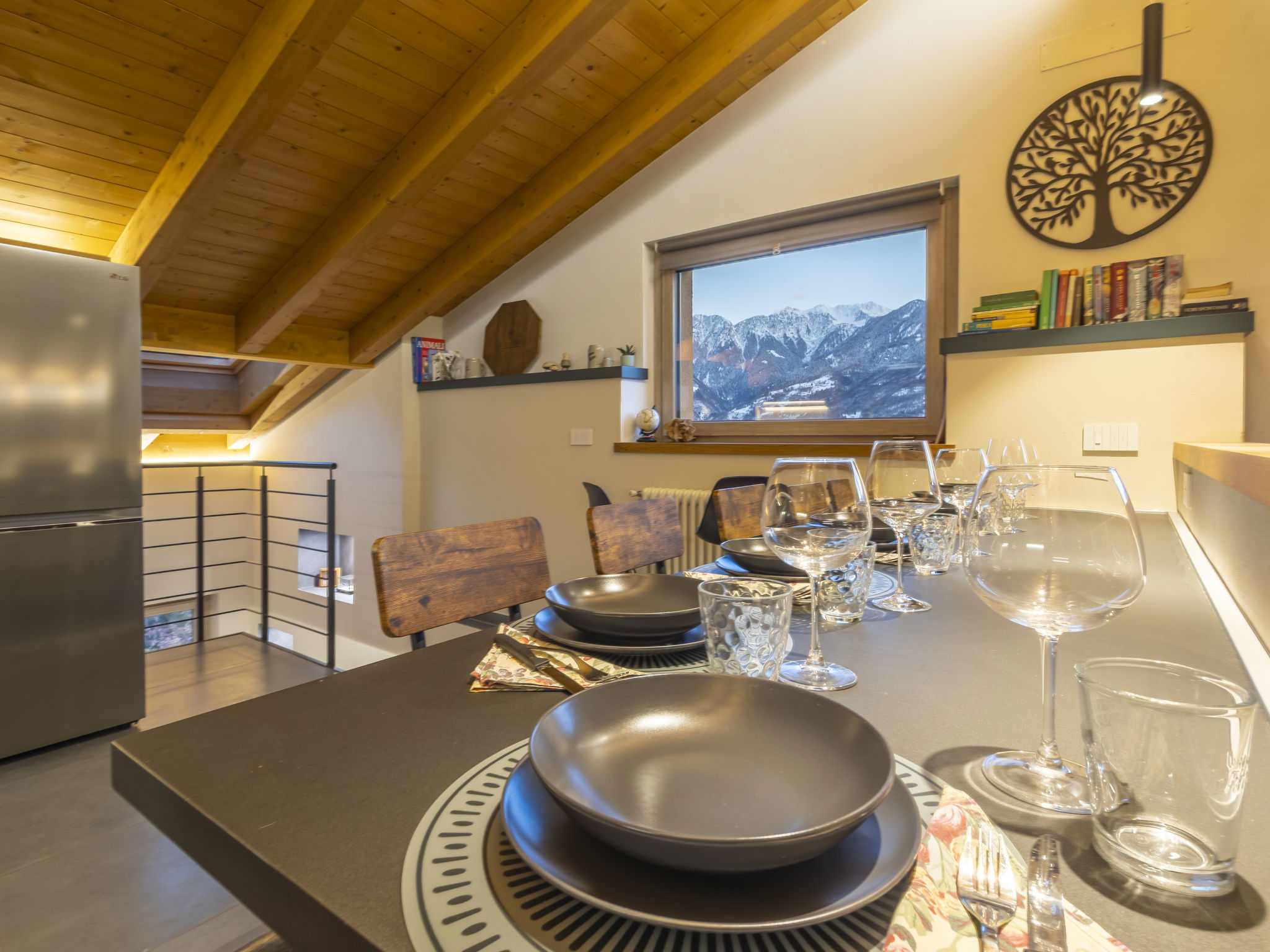 4-room villa 180 m2 on 3 levels, south facing position. Spacious and bright, partly with sloping ceilings, fully renovated in 2025, modern and stylish furnishings: entrance hall. 1 room with 1 double bed and satellite TV. 1 room with 1 x 2 bunk beds. Shower/bidet/WC. Upper floor: (open staircase), 1 room with 1 double bed and TV. Exit to the balcony. Bath/shower/bidet/WC. 2nd upper floor: (open staircase) large living/dining room with 1 sofabed and satellite TV. Exit to the balcony. Large kitchenette (oven, dishwasher, 5 induction hot plates, toaster, kettle, microwave, freezer, electric coffee machine, Capsules for coffee machine (Nespresso) free) with dining table and dining nook. Heating. Solar power. Parquet floors, natural stone floors. Barbecue, deck chairs (4). Very beautiful panoramic view of the mountains and the valley. Facilities: children's high chair, baby cot, hair dryer. Internet (WiFi, free). E-charging station. Please note: suitable for families. Non-smoking house. Maximum 3 pets/ dogs allowed. Private entrance, fire extinguisher, no lift. IT014022C22V9JRSNE