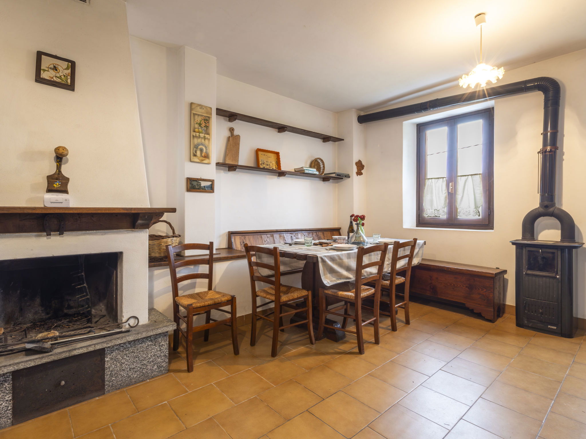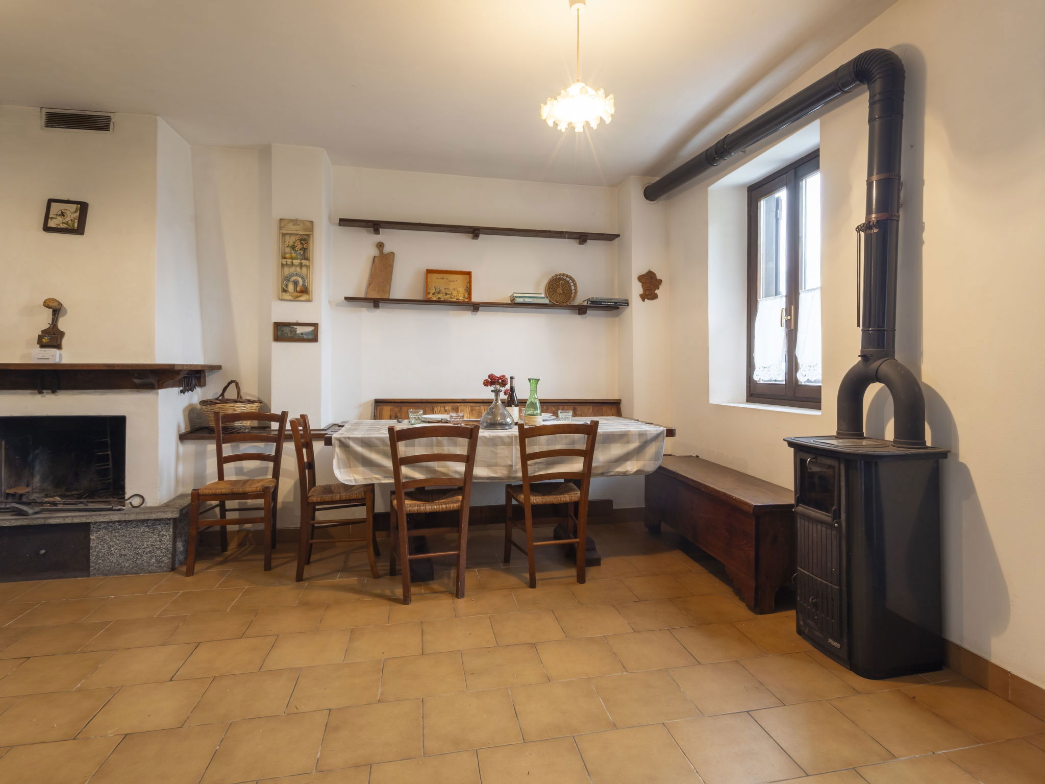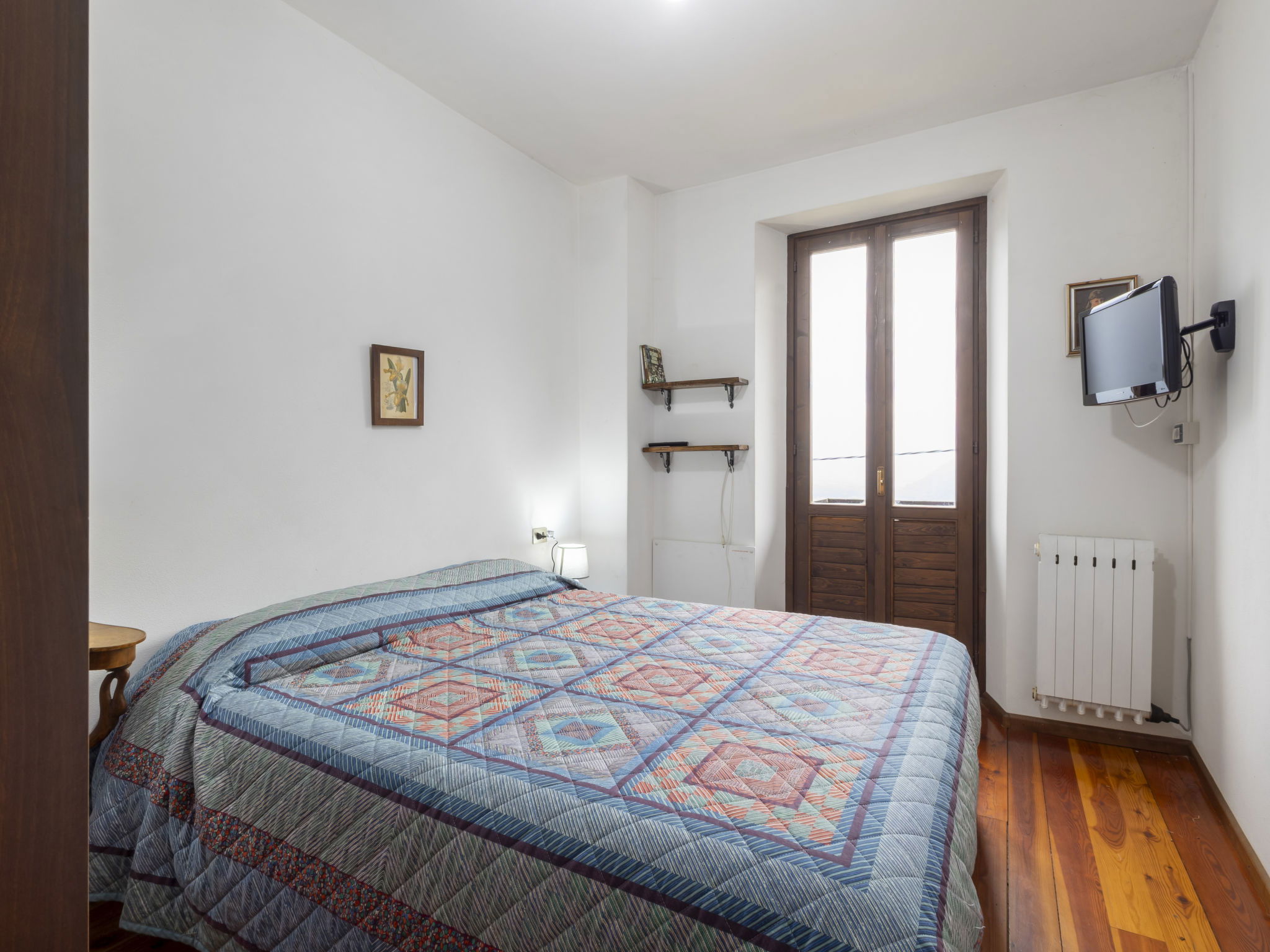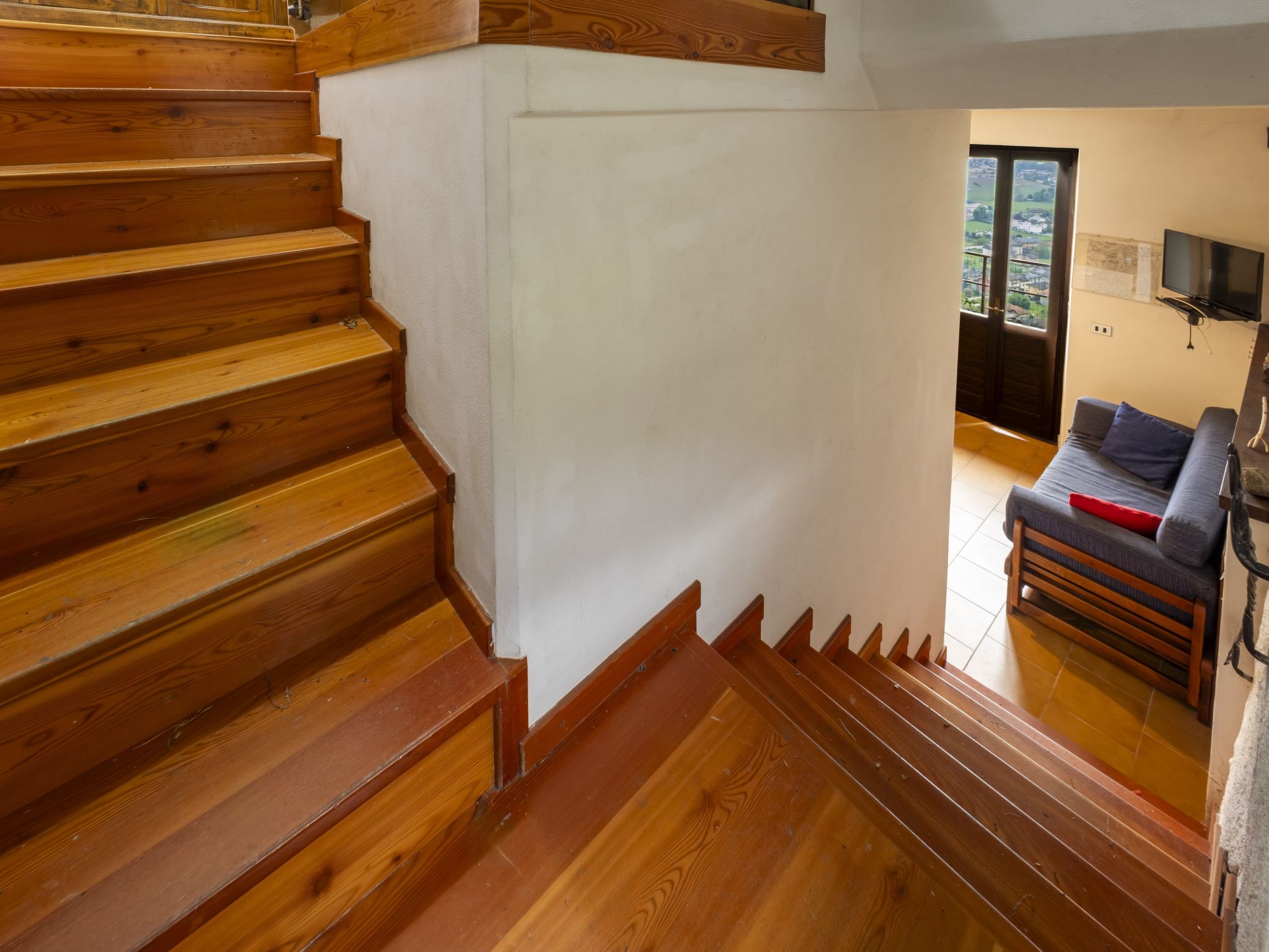 3-room house 84 m2 on 2 levels, south facing position. Bright, practical and rustic furnishings: open living/dining room with open-hearth fireplace (only for decoration), Scandinavian wood stove, dining table and TV. Exit to the garden. Kitchenette (mini-oven, 4 induction hot plates, toaster, kettle, electric coffee machine) with TV. Exit to the garden. Upper floor: 1 room with 1 double bed. Exit to the balcony. 1 room with 2 beds. Exit to the balcony. Shower/bidet/WC. Electric heating, wood heating, boiler. Heating not available in all rooms. Parquet floors. Balcony, garden. Barbecue, deck chairs (2). Beautiful panoramic view of the mountains, the valley and the garden. Facilities: children's high chair, baby cot, hair dryer. Please note: non-smoking house. Maximum 1 pet/ dog allowed. Private entrance, fire extinguisher. IT014005C25CSGKL2B