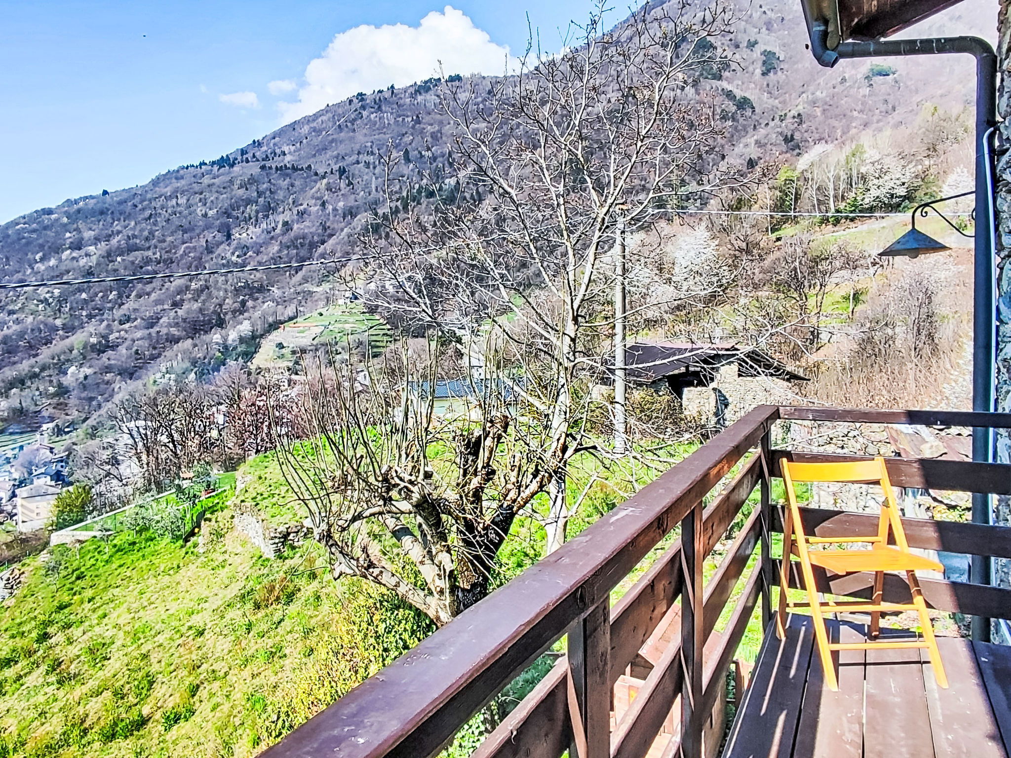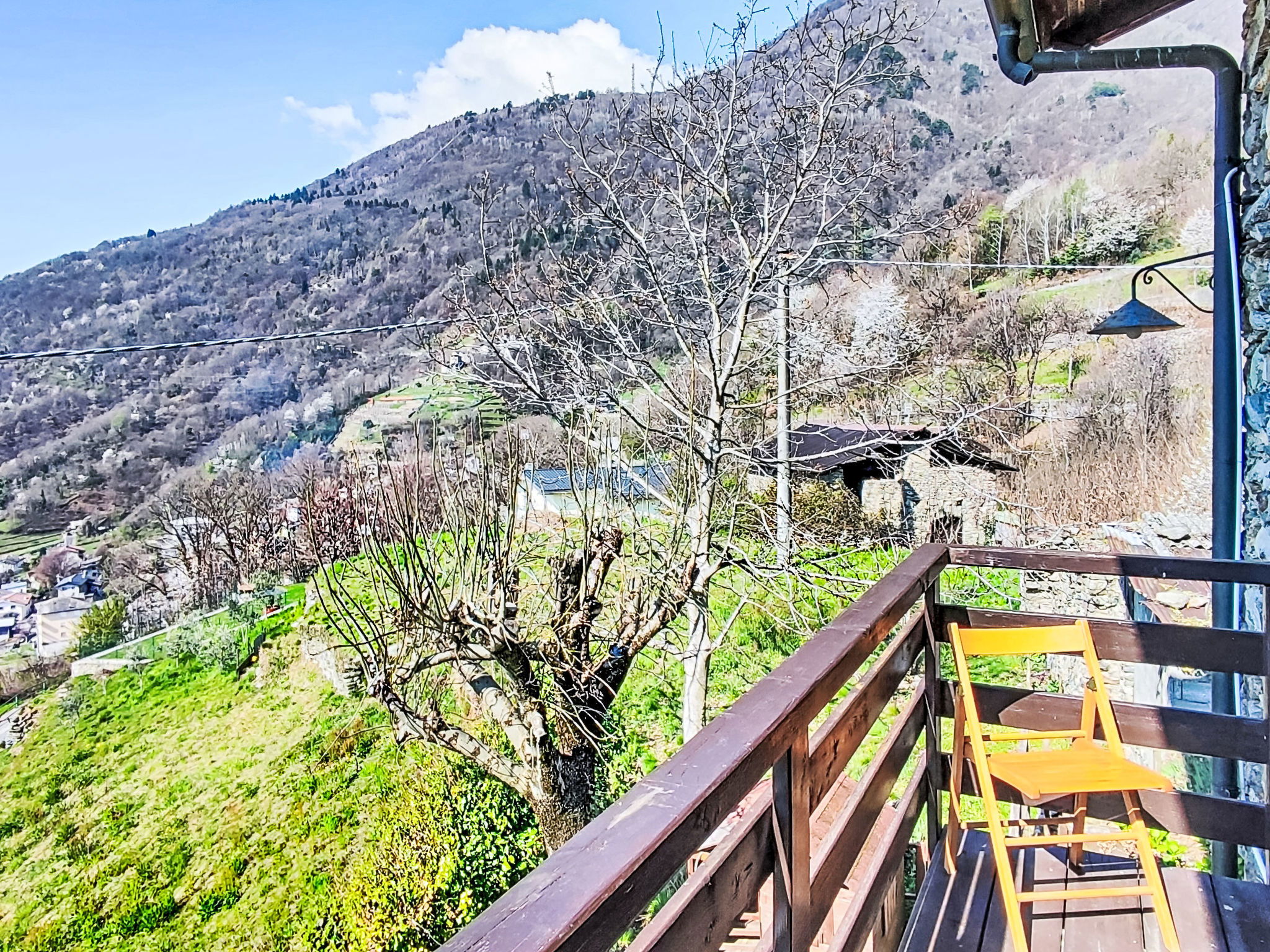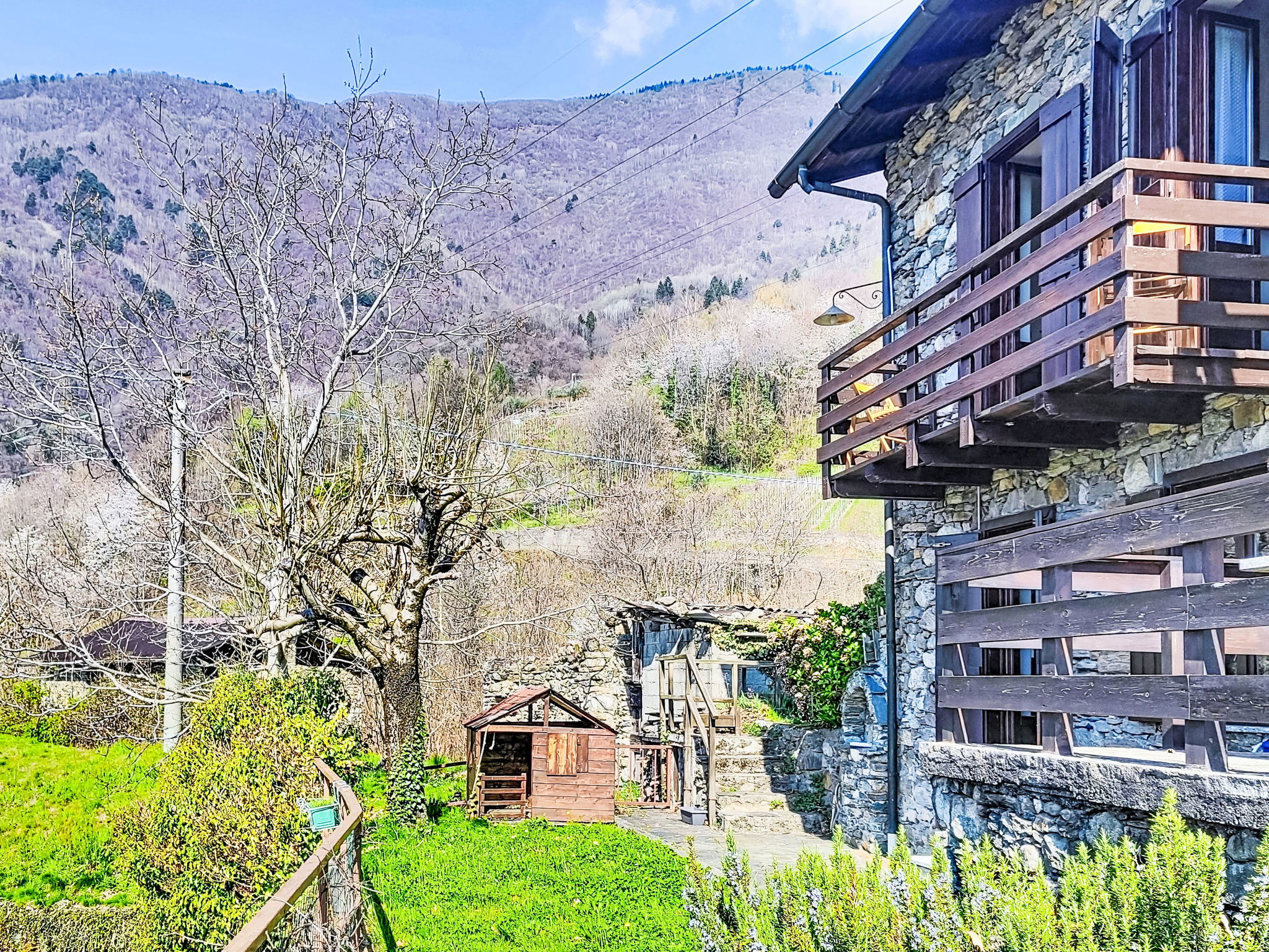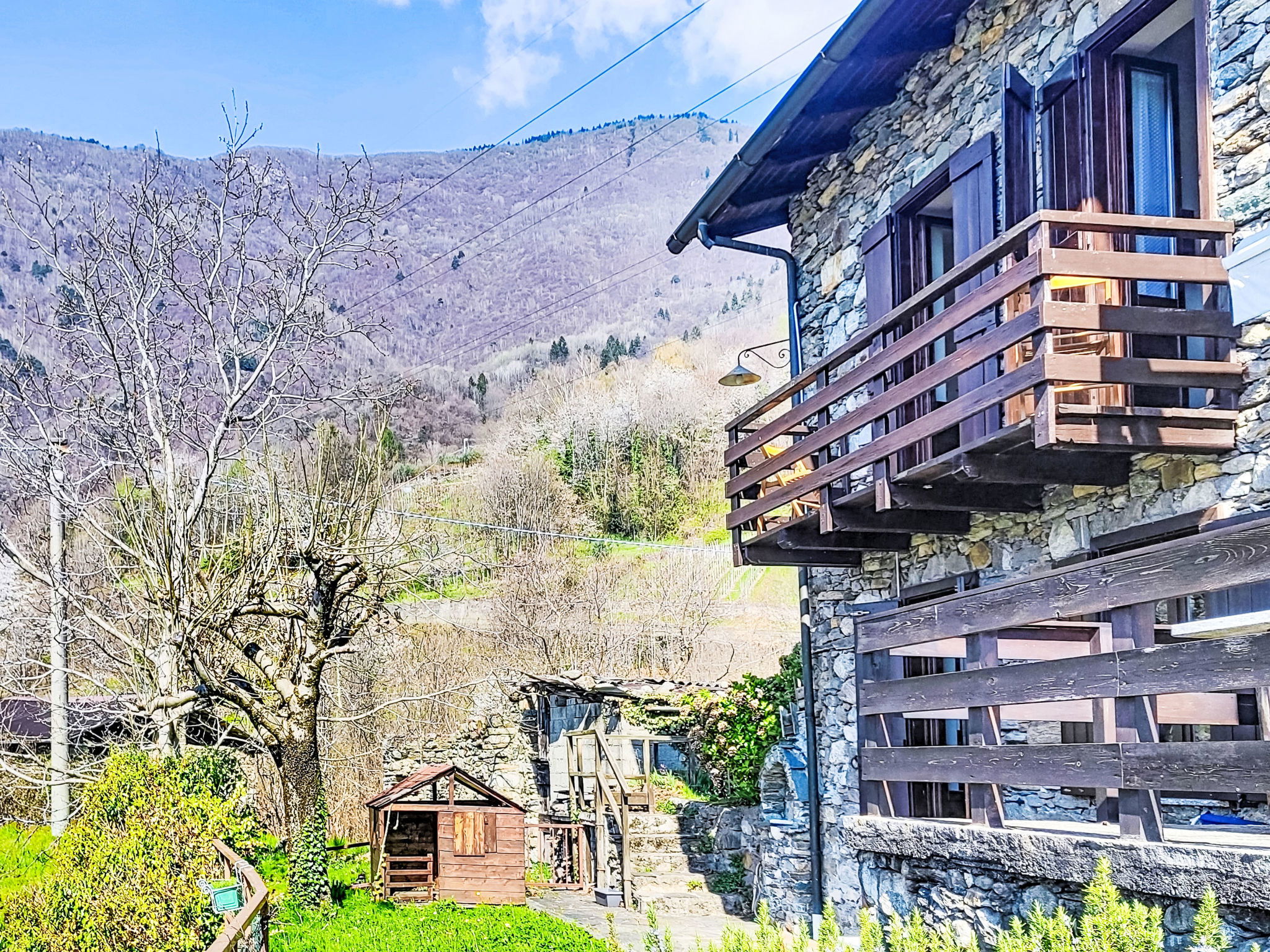 Rustic, historical 2-family house "Carla & Ninni", 550 m a.s.l., 2 storeys, semi-detached, surrounded by trees and meadows. In the hamlet Fascendini 2 km from the centre of Ardenno, in a quiet, sunny position in the residential district, south facing position. Private: small terraced garden (not fenced) with trees, lawn for sunbathing. Garden furniture, barbecue. Motor access (100 m via unmade road, mountain road). Parking (limited number of spaces) at the house. Supermarket 2.9 km, restaurant 1.9 km, bar 1.9 km, bus stop 1.9 km, railway station "Ardenno-Masino" 2.9 km. Nearby attractions: Morbegno 10 km, Ponte Tibetano Ponte nel Cielo 18 km, Riserva Naturale della Val di Mello 18 km, Fly Emotion (Zipline) 20 km, Sondrio 20 km, Train Bernina Express: Tirano-St Moritz 47 km. Well-known ski regions can easily be reached: Campodolcino 61 km, Madesimo 67 km. Well-known lakes can easily be reached: Lago di Como 27 km. Hiking paths: Bagni di Masino, Lago San Martino, Lago di Scermendone, Monte Belinghera, Sentiero Valtellina. Please note: car recommended.