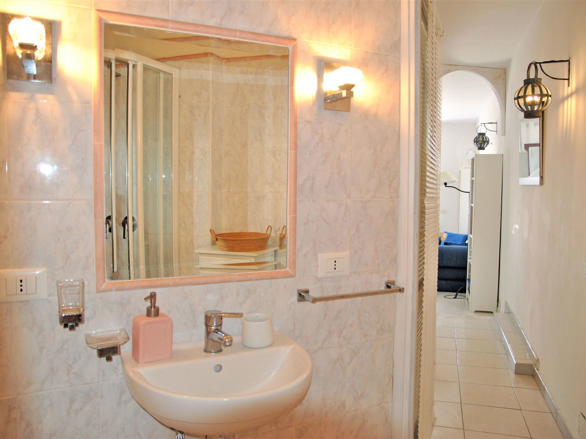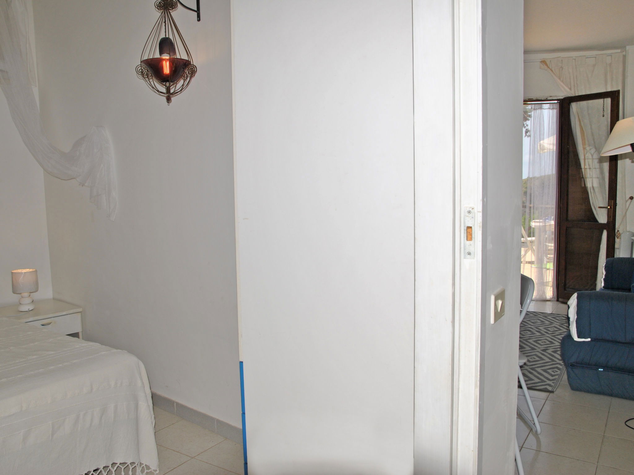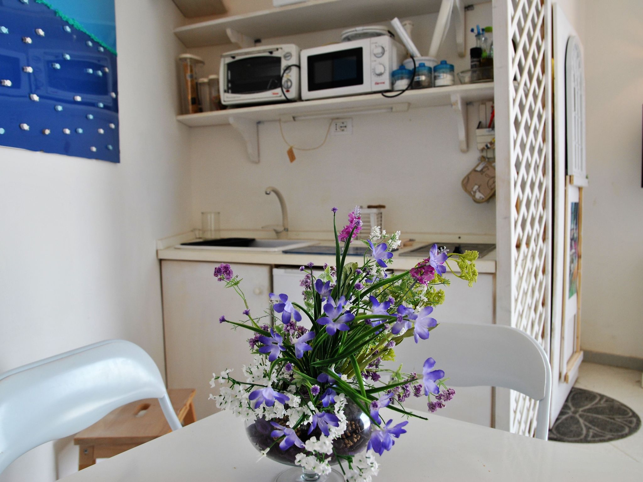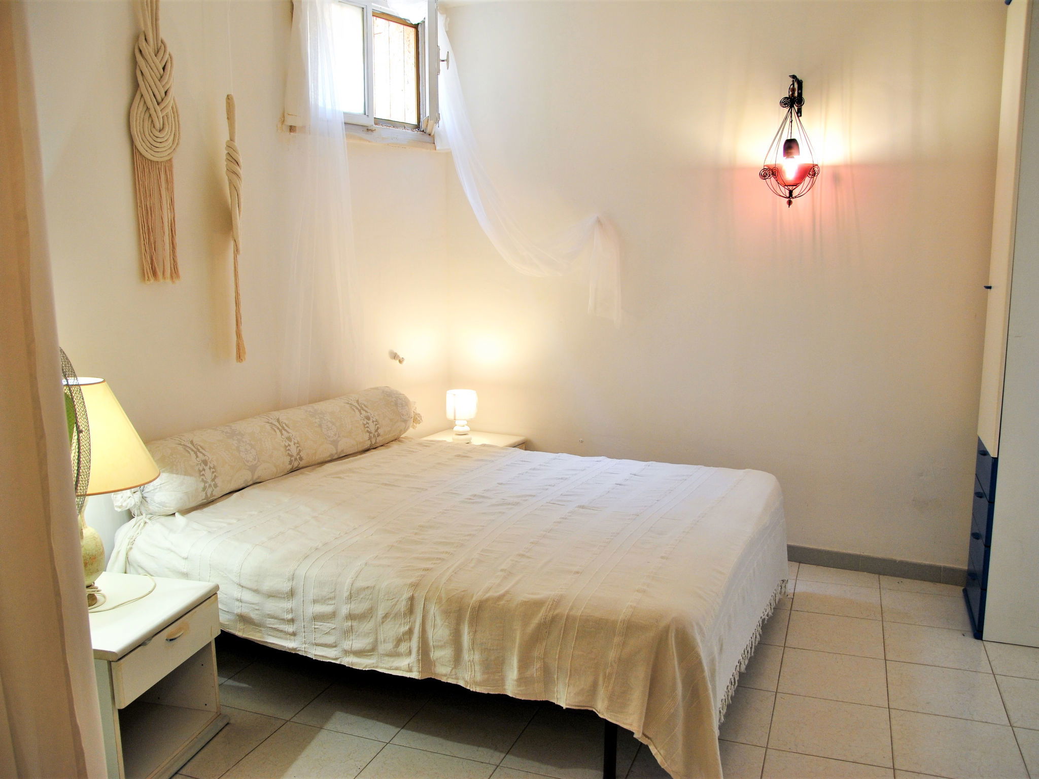 2-room terraced house 50 m2, on the ground floor. Simple and practical furnishings: living/dining room with 1 double sofabed and satellite TV. 1 double bedroom. Kitchenette (mini-oven, 2 induction hot plates, microwave) with small dining table. Shower/bidet/WC. Heating, air-conditioning. Patio 25 m2. Panoramic view of the sea. Facilities: washing machine. Internet (WiFi, free). Parking (1 car). Suitable for families. 1 small pet/ dog allowed. IT059030C223SE5HT7
