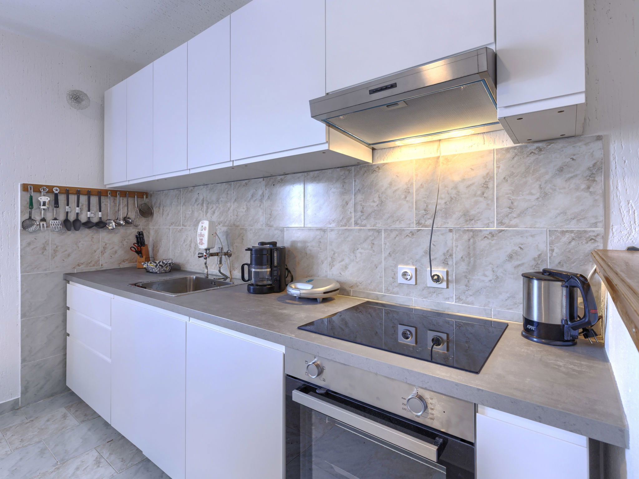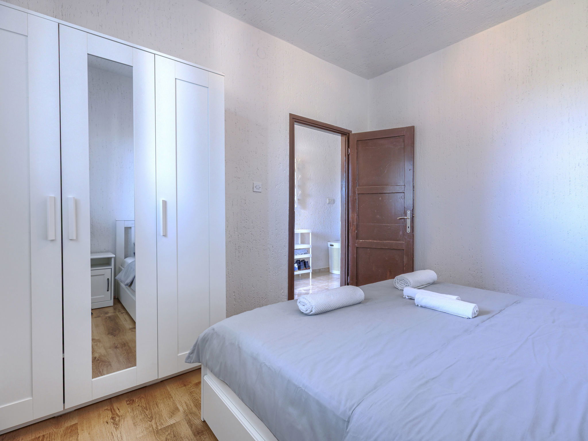 3-room house 80 m2, on the upper ground floor. Living/dining room with 1 double sofabed (150 cm, length 200 cm), satellite TV (flat screen), air conditioning. Exit to the terrace, to the swimming pool. 1 room with 2 beds (90 cm, length 200 cm). 1 room with 1 french bed (160 cm, length 200 cm). Open kitchen (oven, dishwasher, 4 ceramic glass hob hotplates, freezer, electric coffee machine). Bath/WC. Terrace 20 m2, roofed. Terrace furniture. View of the countryside. Facilities: Internet (WiFi, free). Please note: non-smoking house. 2 pets/ dogs allowed. Fire extinguisher.