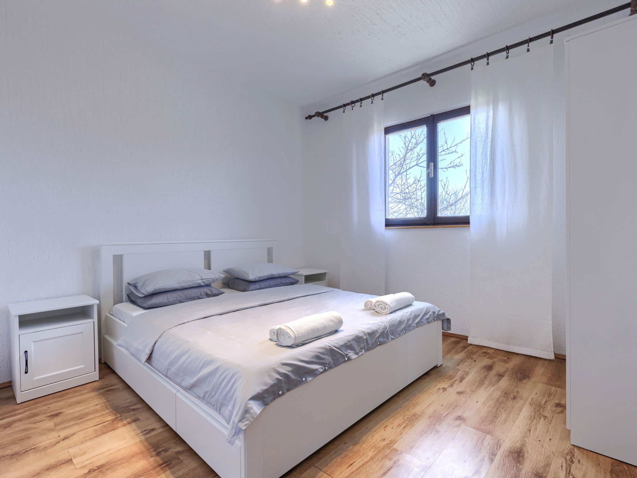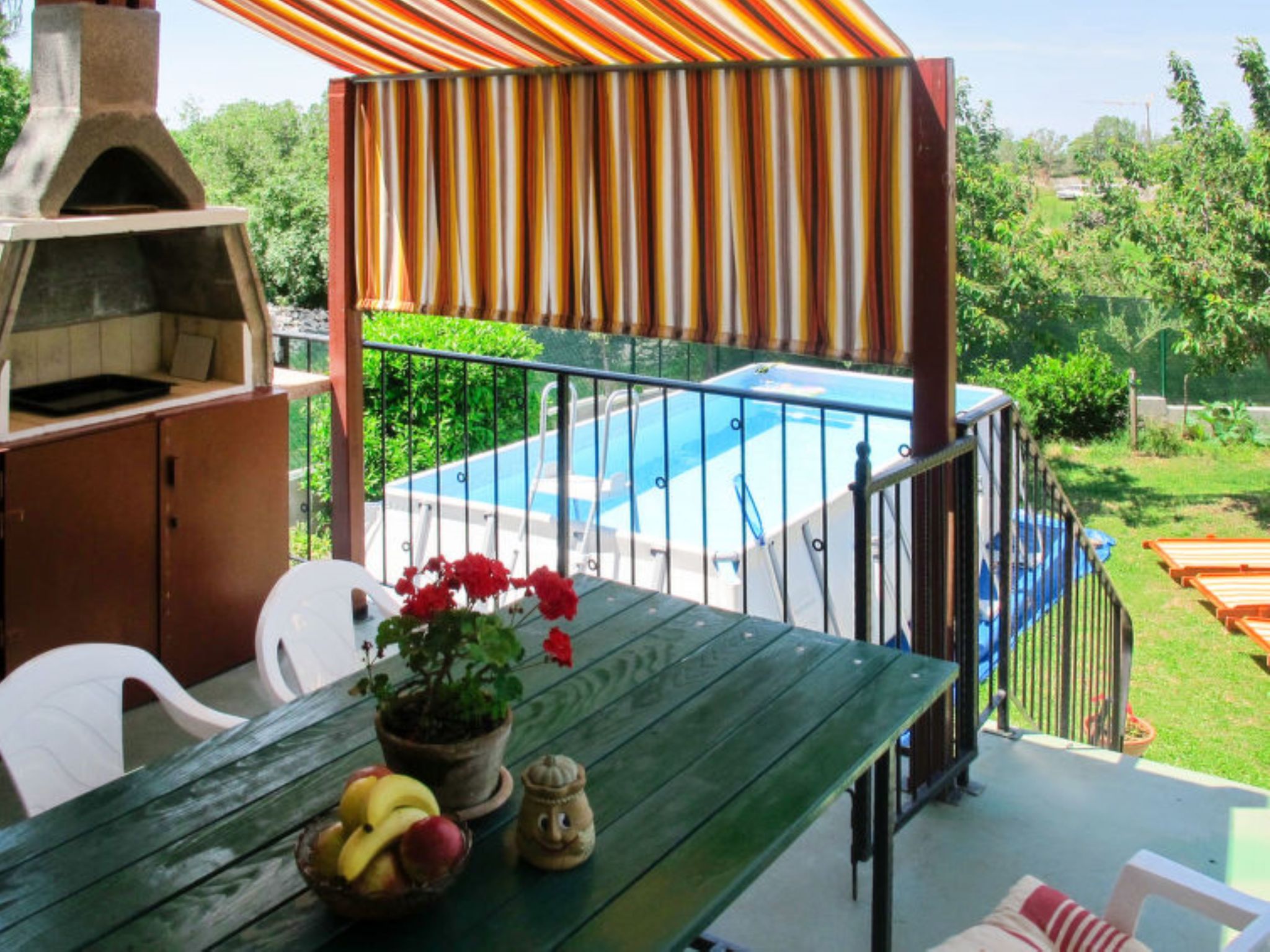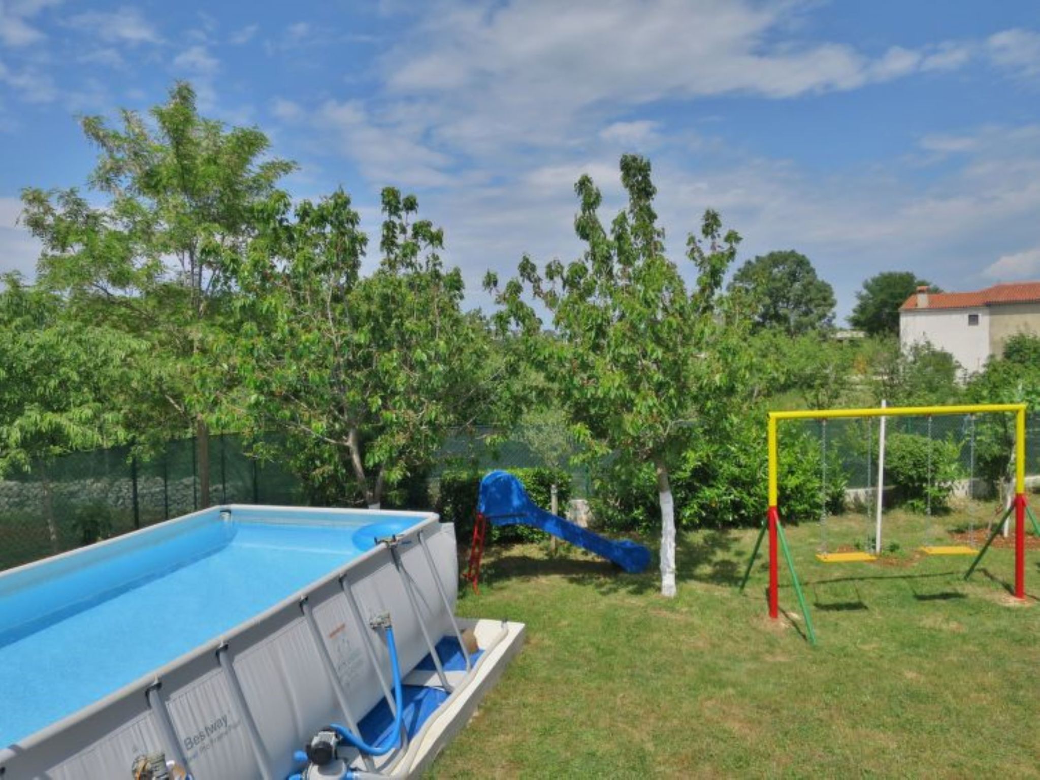 Single-family house "Majoli". In the hamlet Rapanji 2.5 km from the centre of Svetvinčenat, 20 km from the centre of Rovinj, 20 km from the sea. Private: property 2'300 m2 with trees, swimming pool (above ground) angular (6 x 2 m, depth 140 cm, seasonal availability: 01.May. - 01.Nov.). Outdoor shower, barbecue (slide, swing), pool maintenance by the owner/gardener. In the house: internet access, washing machine. Parking (for 3 cars) at the house on the premises. Shop 1.5 km, supermarket 3 km, restaurant 2.5 km, bus stop 3 km, pebble beach 20 km. The owner does not accept any youth groups. Part of the house is closed and unoccupied.