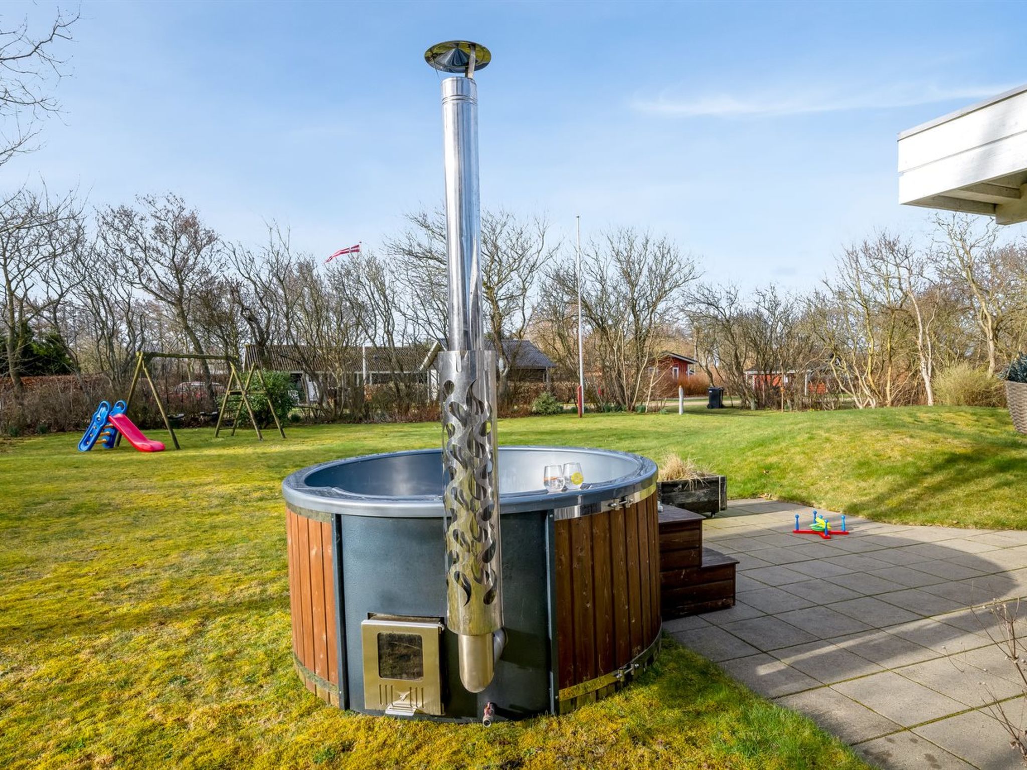 Single-family house, built in 1973. 13 km from the sea. Private: natural state property 1'200 m2. In the house: washing machine, tumble dryer. Parking at the house. E-charging station. Grocery 100 m. The owner does not accept any youth groups.