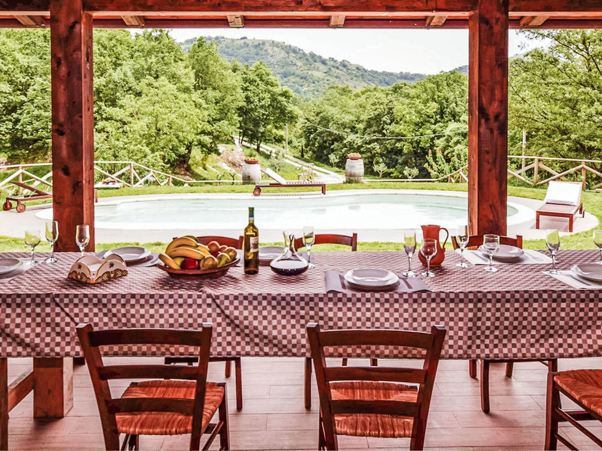 Telese 5 km from Guardia Sanframondi: Beautiful, rustic single-family house "Domus Incantada", 700 m a.s.l., surrounded by trees and fields. In a quiet, sunny, elevated position, in the woods. Private: property 10'000 m2, garden with flowers and trees, lawn for sunbathing, swimming pool kidney shaped, with privacy (50 m2, depth 120 - 170 cm, seasonal availability: 15.May. - 15.Nov.). Shower/WC in the pool area, table tennis, terrace, garden furniture, barbecue, fireplace, children's playground (slide, swing). In the house: WiFi, central heating system, washing machine, heating to be paid on the spot, heating available only from 15.Oct. - 15.Apr.. Room cleaning on request (extra). Pre-arrival grocery service. Airport transfer (extra). Parking (for 3 cars) at the house. Shop 2 km, restaurant 1 km, bus stop 5 km, railway station "Telese" 16 km, thermal baths "Telese Terme" 16 km. Walking paths from the house 100 m, skisport facilities 50 km. Nearby attractions: Napoli 66 km, Amalfi Coast 90 km, Sorrento 90 km, Pompei 60 km, Reggia di Caserta 50 km. Please note: car recommended. Baby equipment on request. Local sale of farm products. The house is surrounded by nature and enjoys total privacy and tranquility. Ideal to relax and regain the relationship with nature. The extra beds are in a bunk bed.