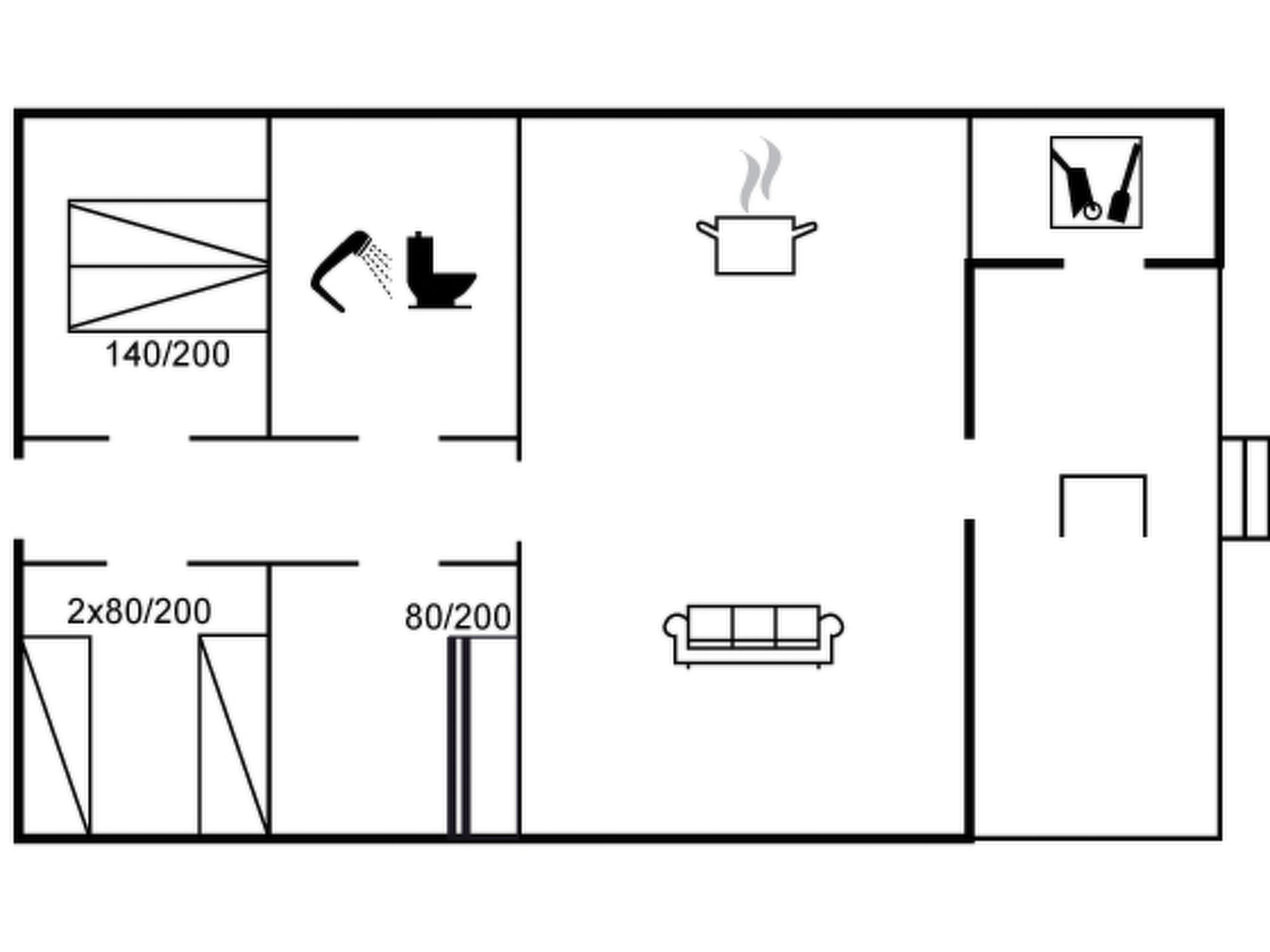 "Jutta" - 28km from the sea", 3-room house 68 m2. Object suitable for 6 adults + 1 child. Living room with TV, radio and CD-player. 1 room with 1 double bed. 1 room with 2 beds. 1 room with 1 x 2 bunk beds. Kitchen (oven, dishwasher, 4 ceramic glass hob hotplates, microwave, freezer). Shower/WC. Terrace 9 m2, roofed. Facilities: children's high chair, baby cot. Internet (WiFi). Please note: non-smokers only. Maximum 1 pet/ dog allowed. Bookings accepted for holiday purposes only. 550-22177