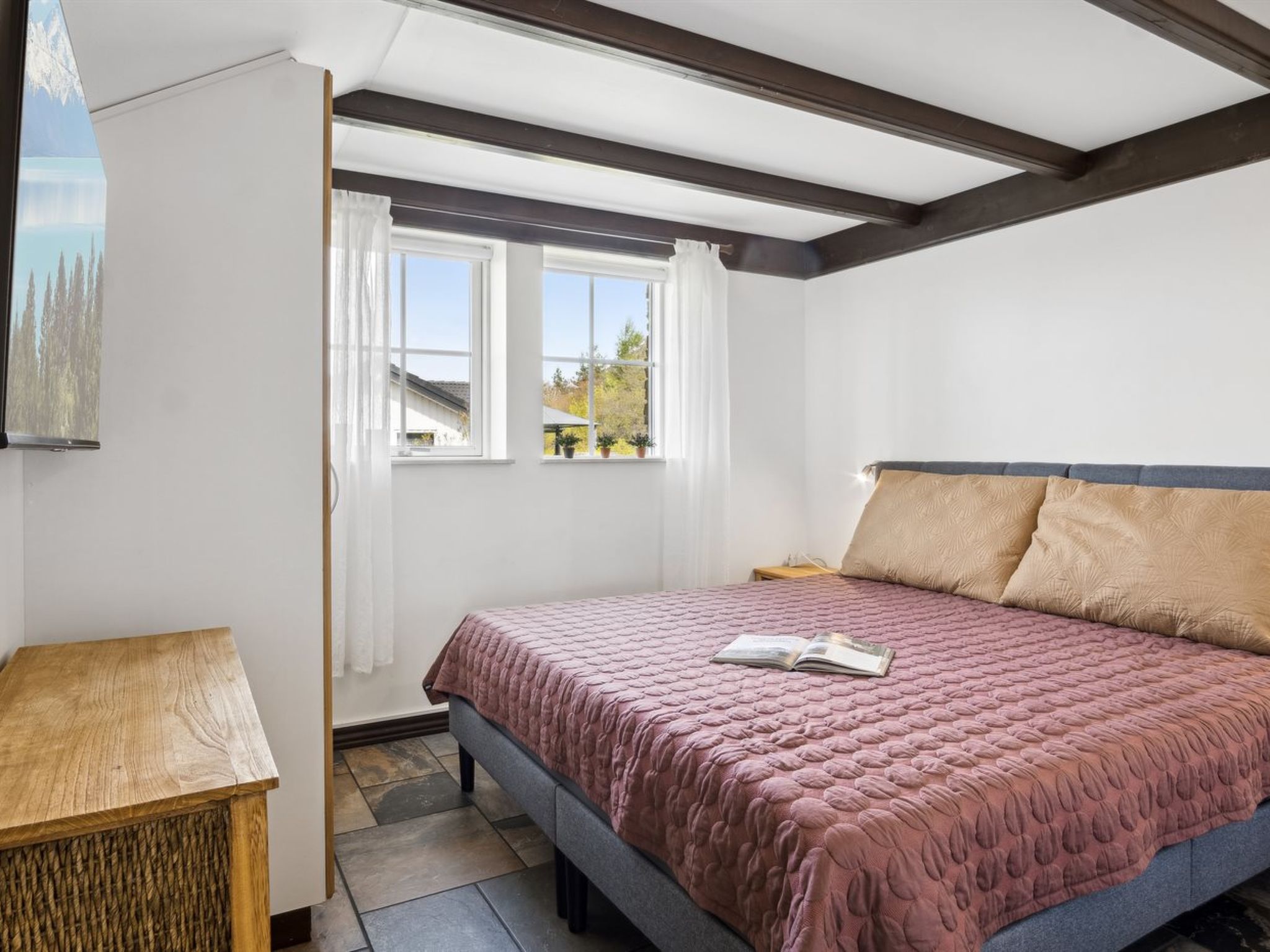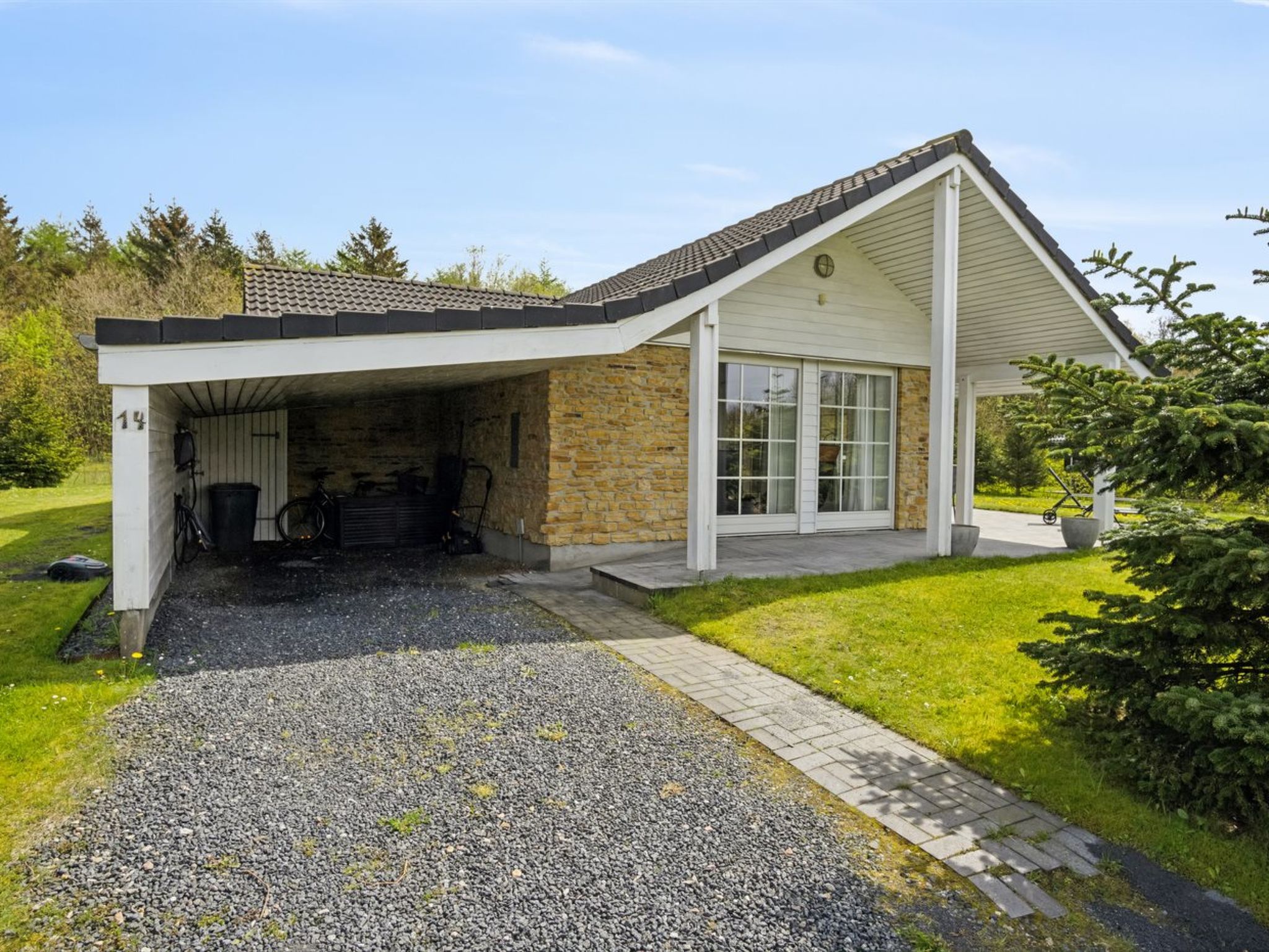 Single-family house, built in 2014. 29 km from the sea. Private: property 877 m2, well-kept garden. Barbecue. In the house: washing machine, tumble dryer. Parking at the house. Carport. E-charging station. Grocery 2 km. The owner does not accept any youth groups.