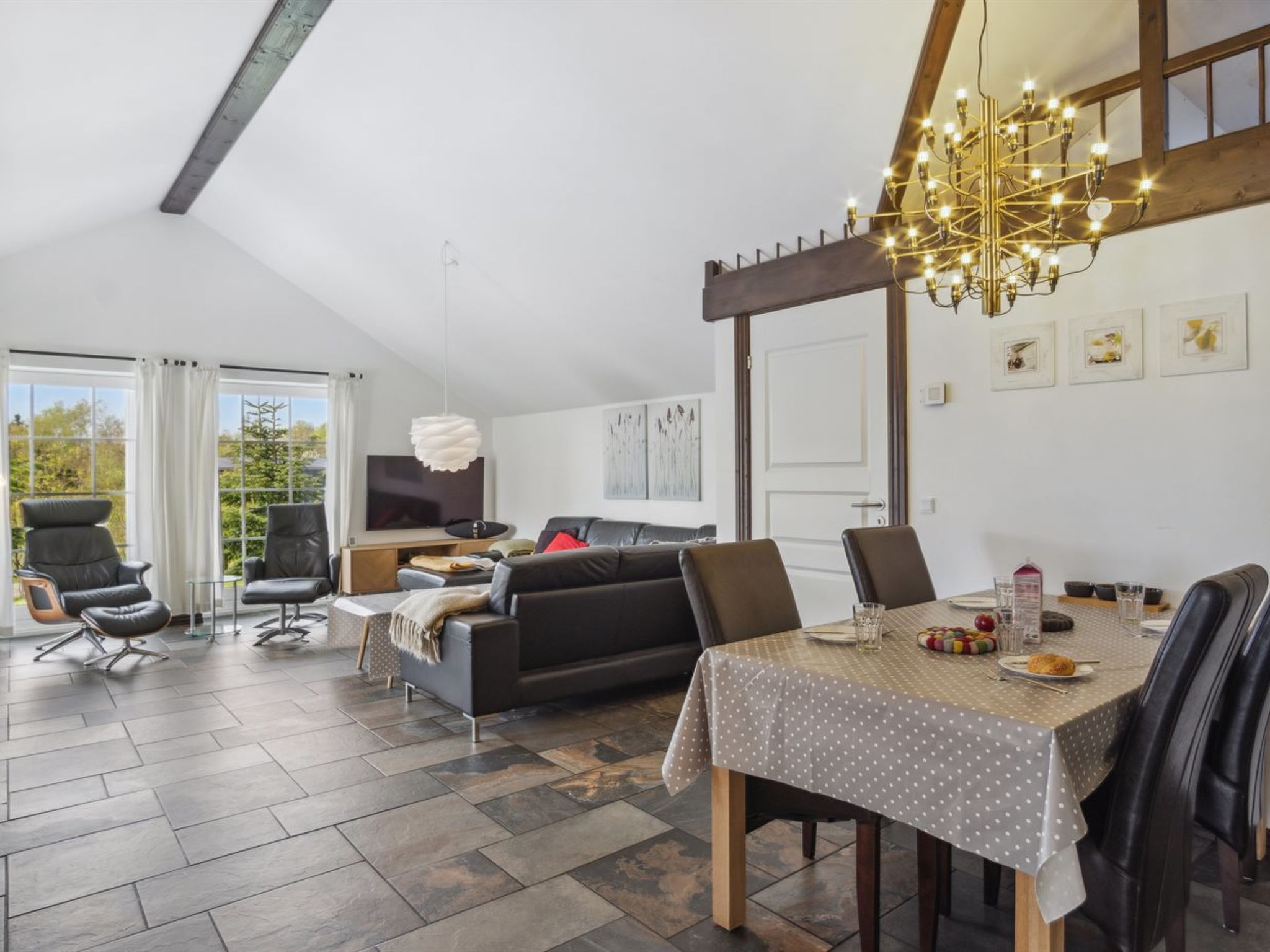 "Sippora" - 29km from the sea", 3-room house 106 m2. Object suitable for 8 adults. Living room with TV. 1 room with 2 sofabeds. 1 room with 1 double bed. Open gallery, 1 room with 1 double bed and 2 sleeping facilities. Kitchen (oven, dishwasher, 4 ceramic glass hob hotplates, 4 induction hot plates, microwave, freezer). 2 showers/WC, hydro massage bath. Facilities: Internet (WiFi). Please note: non-smokers only. Maximum 1 pet/ dog allowed. Bookings accepted for holiday purposes only. 550-24254