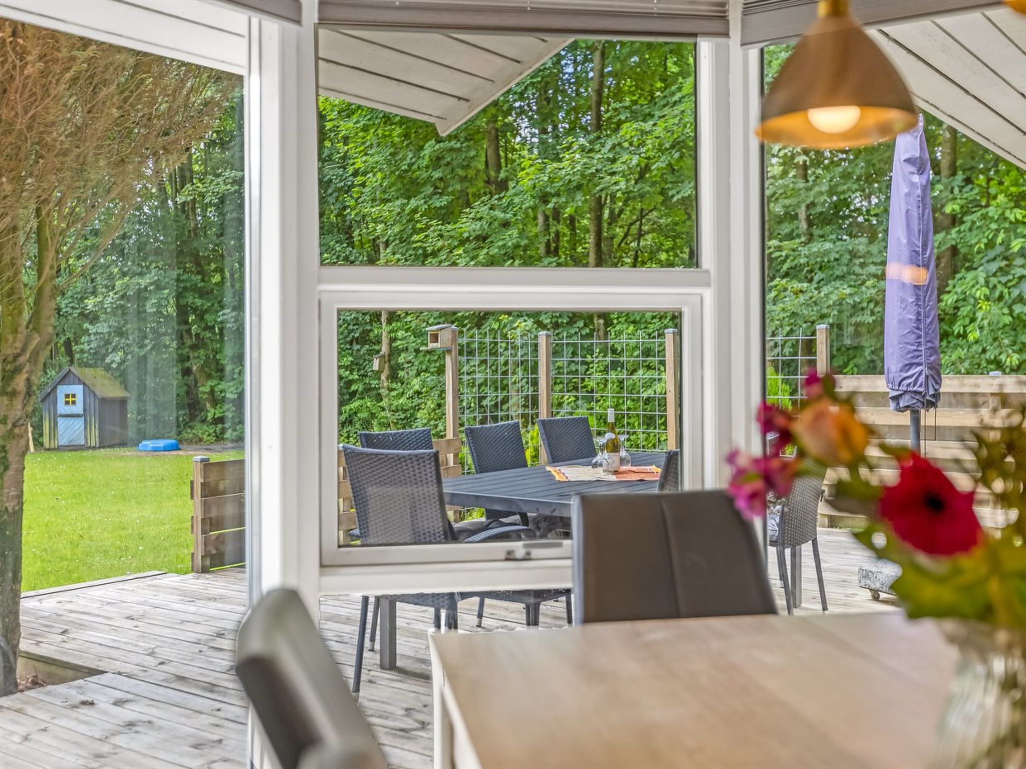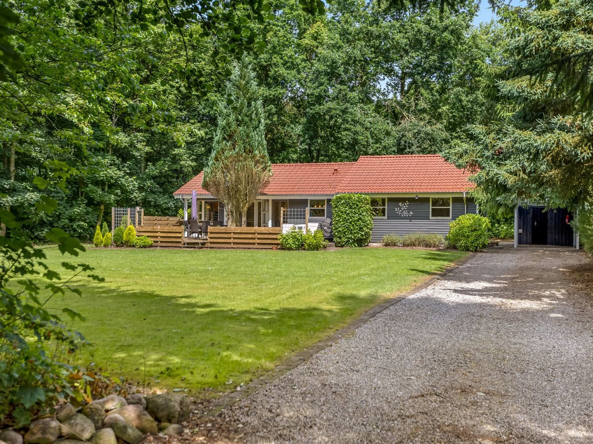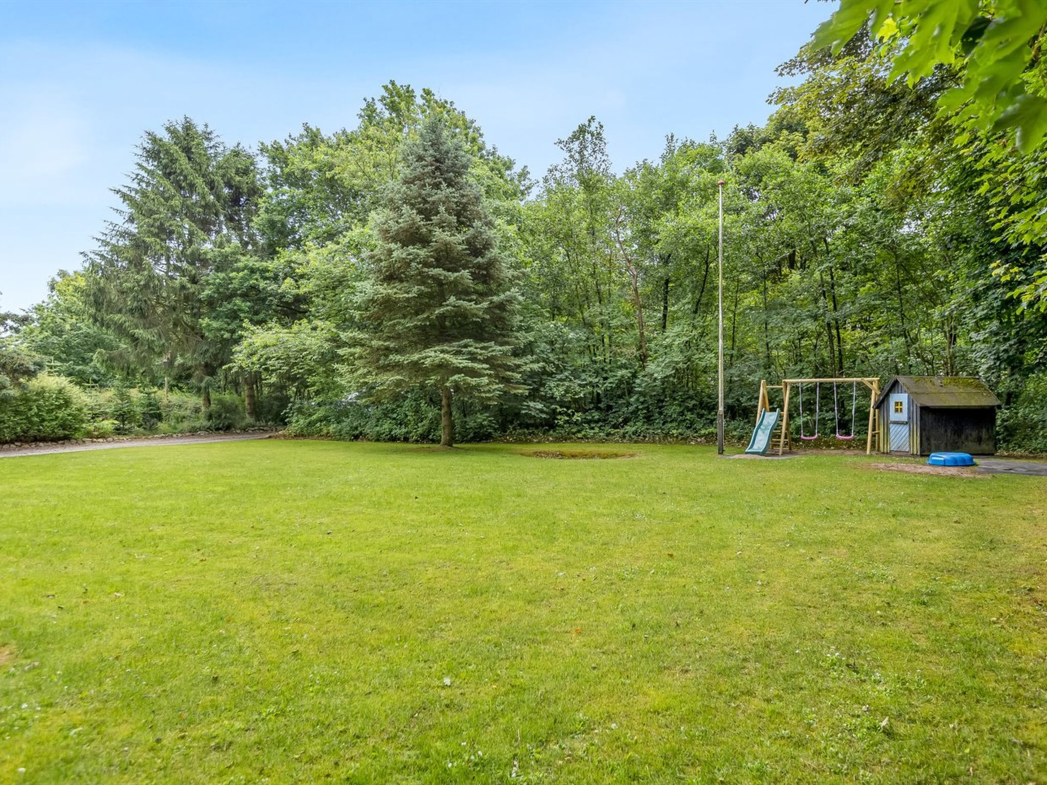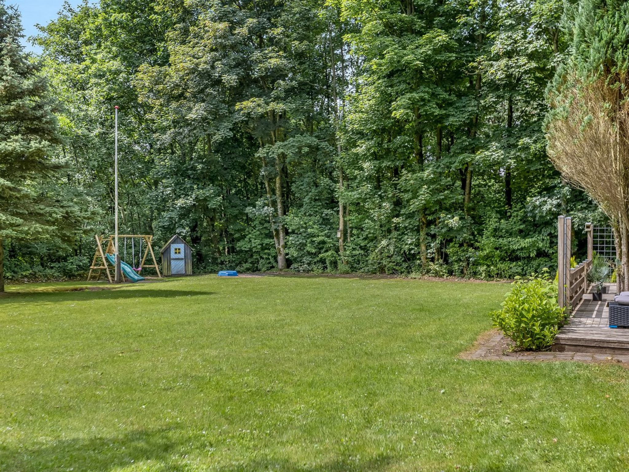 Single-family house, built in 1996. 30 km from the sea. Private: property 875 m2, well-kept garden. Children's playground (slide, swing). In the house: washing machine, tumble dryer. Parking at the house. Carport. Grocery 1 km. The owner does not accept any youth groups.