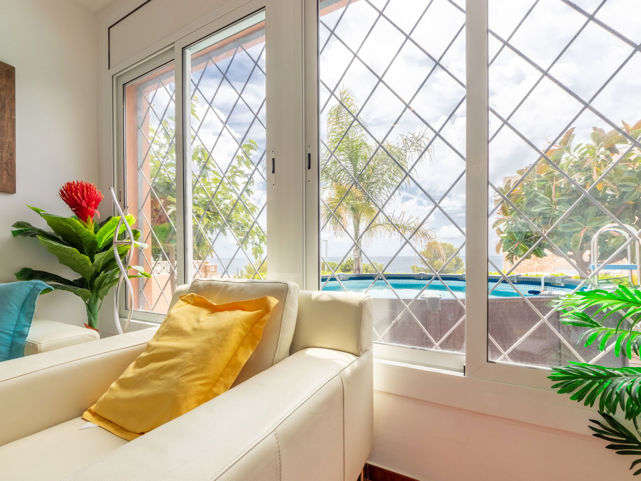 "Cantamar", 5-room semi-detached house 140 m2. Object suitable for 6 adults + 2 children. Practical and cosy furnishings: living/dining room with satellite TV, air conditioning and forced-air heating. Exit to the garden, to the veranda with air conditioning. Kitchen (5 hot plates, oven, dishwasher, toaster, kettle, microwave, electric coffee machine, Capsules for coffee machine (Nespresso) extra). Shower/WC. Solar power. Upper floor: 1 room with 1 french bed (180 cm, length 200 cm), air conditioning and forced-air heating. 2 rooms, each room with 2 beds (90 cm, length 200 cm), air conditioning and forced-air heating. 1 room with 1 x 2 bunk beds, air conditioning and forced-air heating. Shower/WC. Terrace 8 m2. Terrace furniture, barbecue, deck chairs (2), conservatory. Marvellous panoramic view of the port and the ocean. Facilities: washing machine, iron, children's high chair, baby cot for up to 3 year olds, hair dryer. Internet (WiFi, free). Parking at the house. Please note: non-smoking house. Maximum 1 pet/ dog allowed. TV only DE. The pool mentioned in the description is for private use. HUTT-062749 // Reg. Nr.: ESFCTU00004302700020918400000000000000000HUTT-0627492