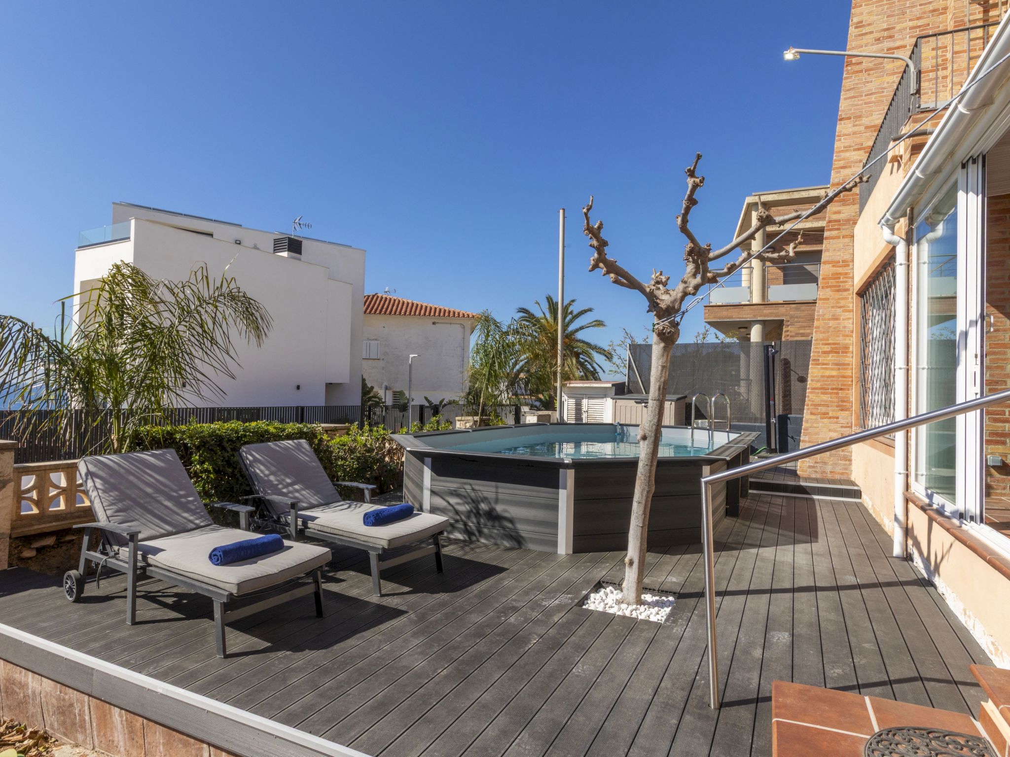 Torredembarra 20 km from Tarragona: Cosy, comfortable semi-detached house "Cantamar", 2 storeys. On the outskirts, 1 km from the centre of Torredembarra, in a quiet, sunny, elevated position, traffic calmed area, 30 m from the sea, 600 m from the beach, in a cul-de-sac. Private: courtyard, swimming pool (above ground) (6 x 3 m, 20 m2, depth 150 - 150 cm, seasonal availability: 01.May. - 30.Oct.). Unconventional pool shape. Outdoor shower, patio, barbecue, pool maintenance by the owner/gardener. Parking (for 2 cars). Shop, grocery, supermarket 600 m, shopping centre 20 km, restaurant 400 m, bar, bakery 1 km, pedestrian zone 600 m, 20 minute walk to the centre, bus stop 500 m, railway station "Renfe Torredembarra" 1.5 km, sandy beach 600 m. Sports harbour 500 m, marina 500 m, tennis 2 km, riding stable 2 km, sports centre 2 km, walking paths from the house 5 km. Nearby attractions: Port Aventura / Ferrari Land, Jungle Trek. Please note: car recommended. Object suitable for 6 adults + 2 children. The owner does not accept any youth groups. Neighbourhood highly sensitive to noise. Quietness and good behaviour expected.