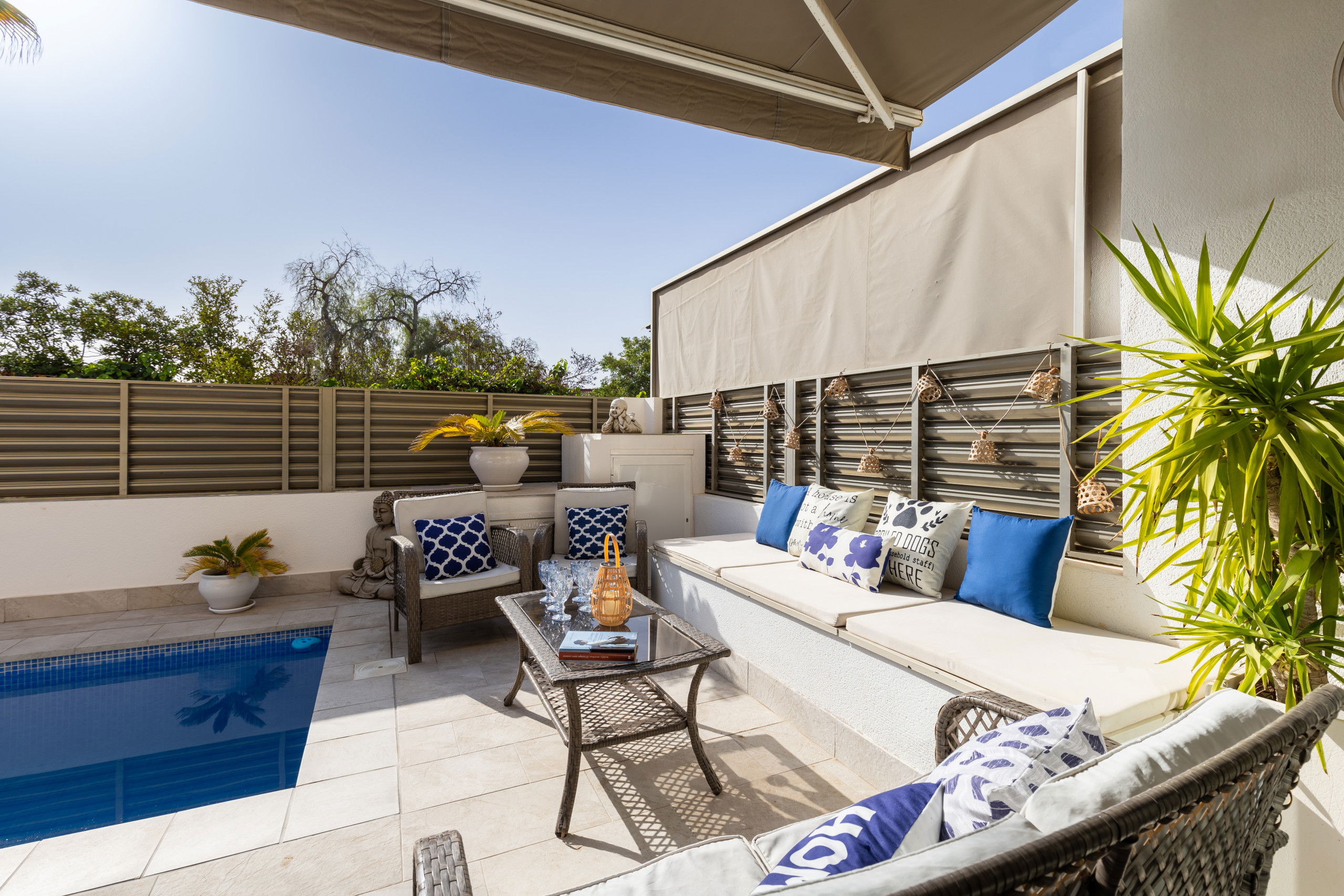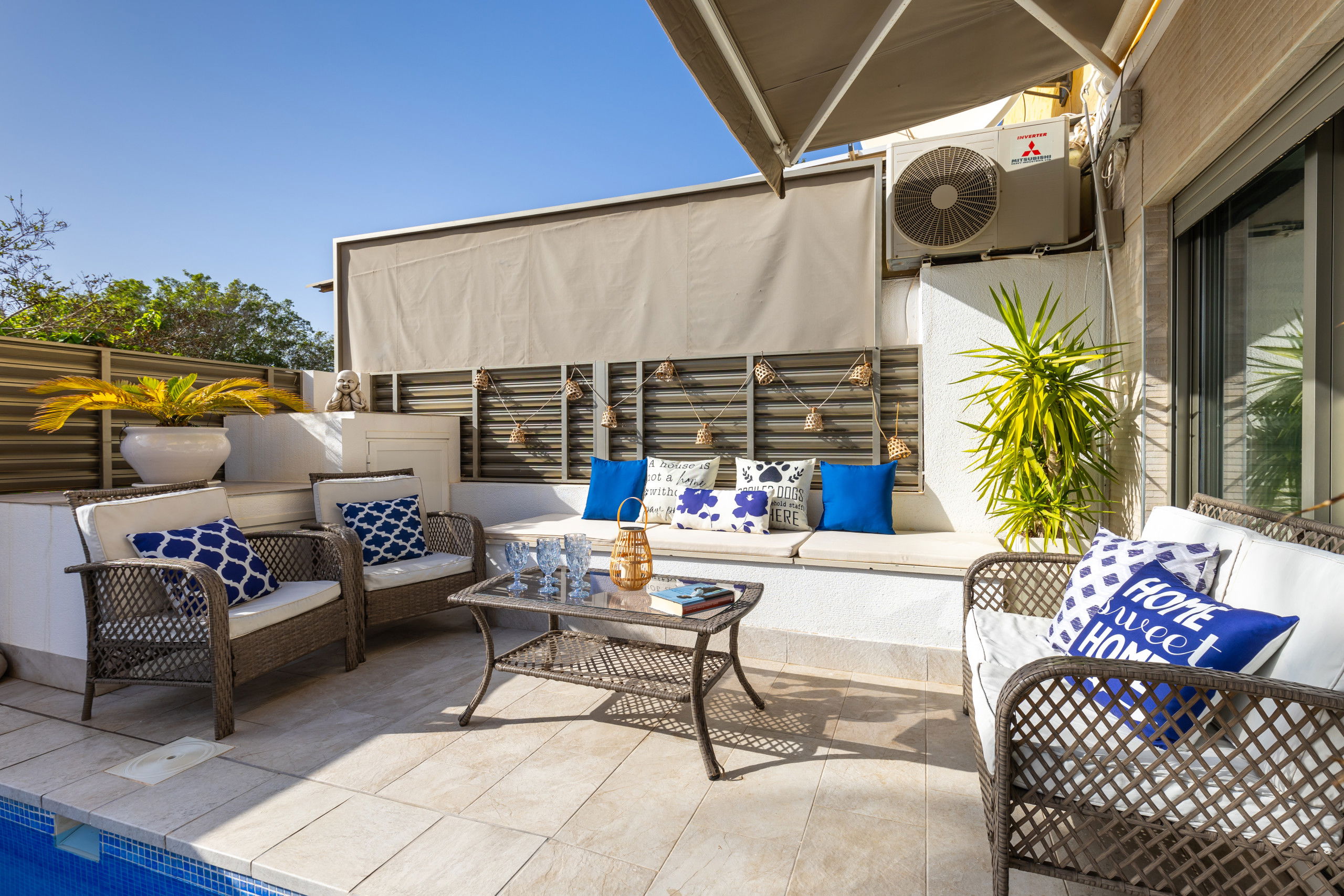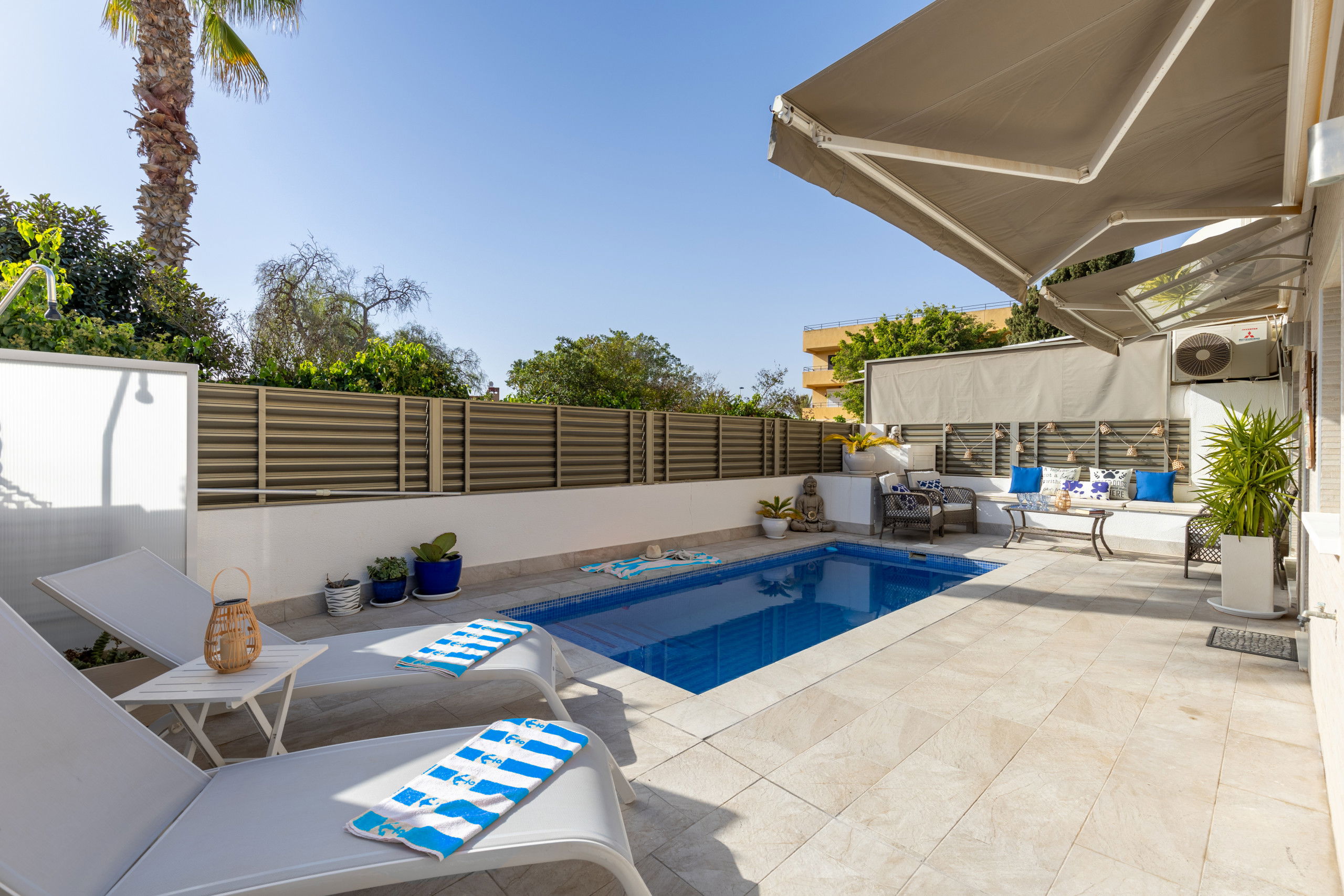 Spacious private garden with a spectacular pool, ideal for relaxing or enjoying outdoor gatherings.