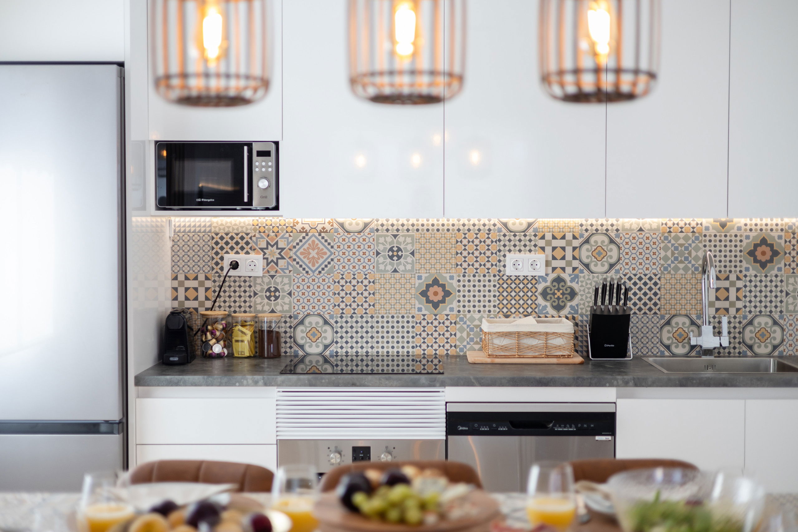 Spacious Nordic-style kitchen fully equipped, with space to cook and share family moments.