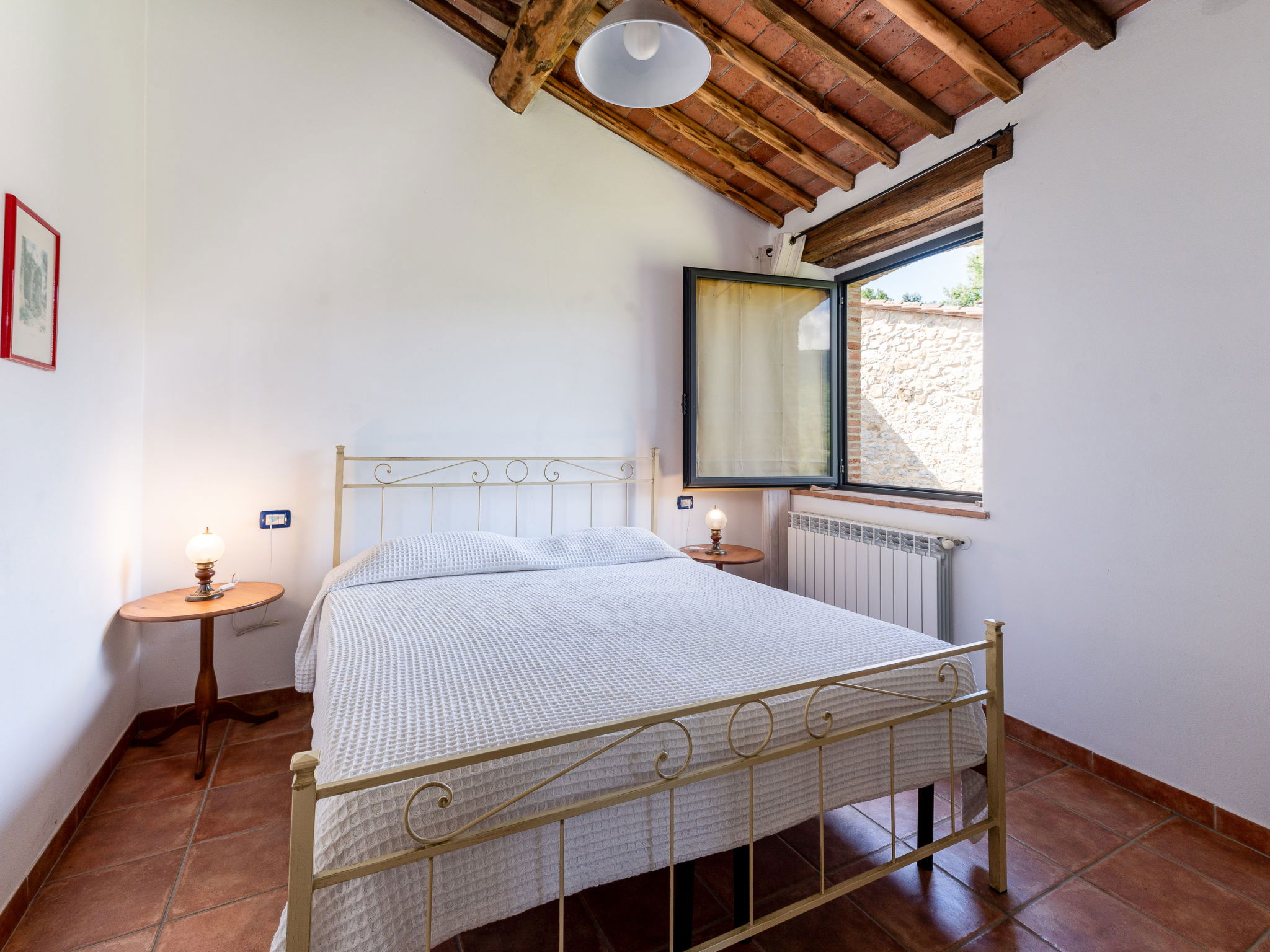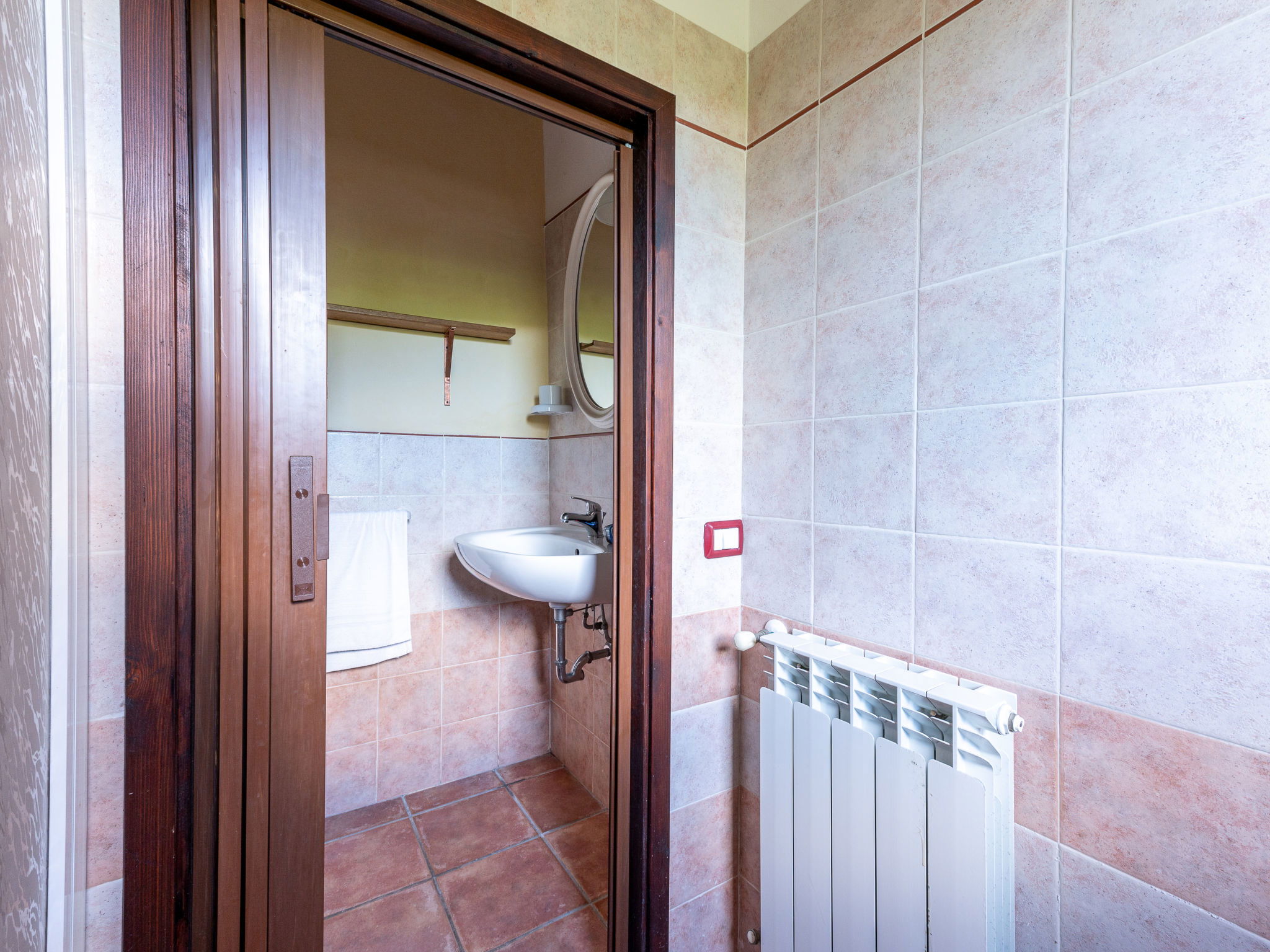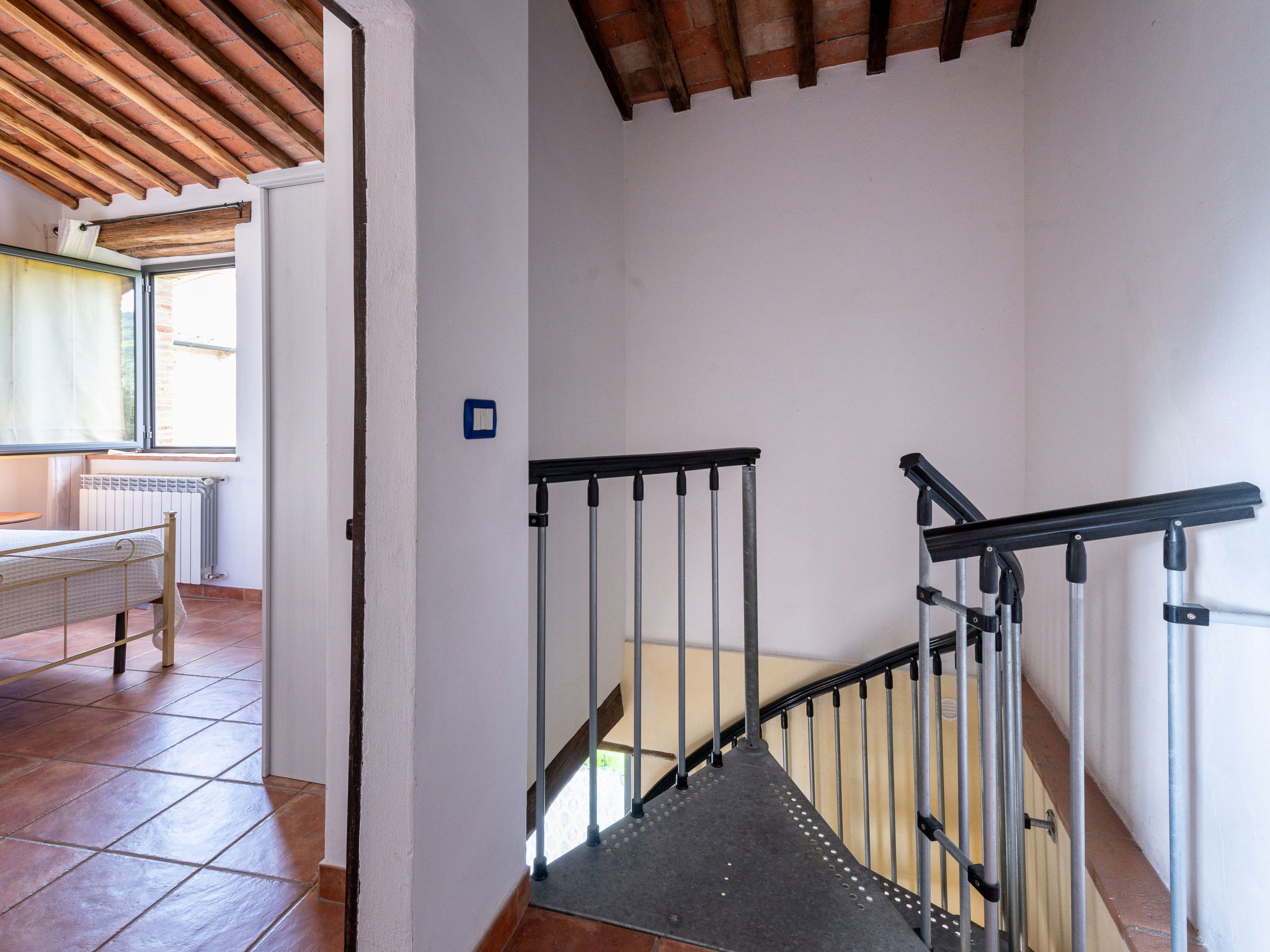 Country house "I Prati di Travale", detached, surrounded by trees, meadows and fields. 4 apartments in the residence. 1 km from the centre of Travale, 6 km from the centre of Montieri, 45 km from the centre of Siena, 45 km from the sea. For shared use: natural state property 3'000 m2, trees, meadow, swimming pool (12 x 6 m, depth 140 cm, seasonal availability: 24.May. - 20.Sep. pool opening hours: 09:00-20:00). Outdoor shower, patio, pool maintenance by the owner/gardener. In the house: washing machine (for shared use, extra). 400 m long bumpy motor access. Parking on the premises. Shop 1 km, supermarket 6 km, bicycle rental 5 km, park "Cornate e Fosini" 12 km, bathing lake "Accesa" 19 km. Riding stable 5 km, walking paths from the house 10 m. Nearby attractions: Giardino dei Suoni 19 km, Abbazia di San Galgano 20 km, Dream Wood - Artistic park 30 km. Well-known lakes can easily be reached: Accesa 35 km. Hiking paths: Mountain-bike 3 km. Local sale of farm products. Please note: animals in the neighbourhood. The swimming pool is reached by an external staircase. E-Bike rental 5km. The prices include limited consumption of electricity.