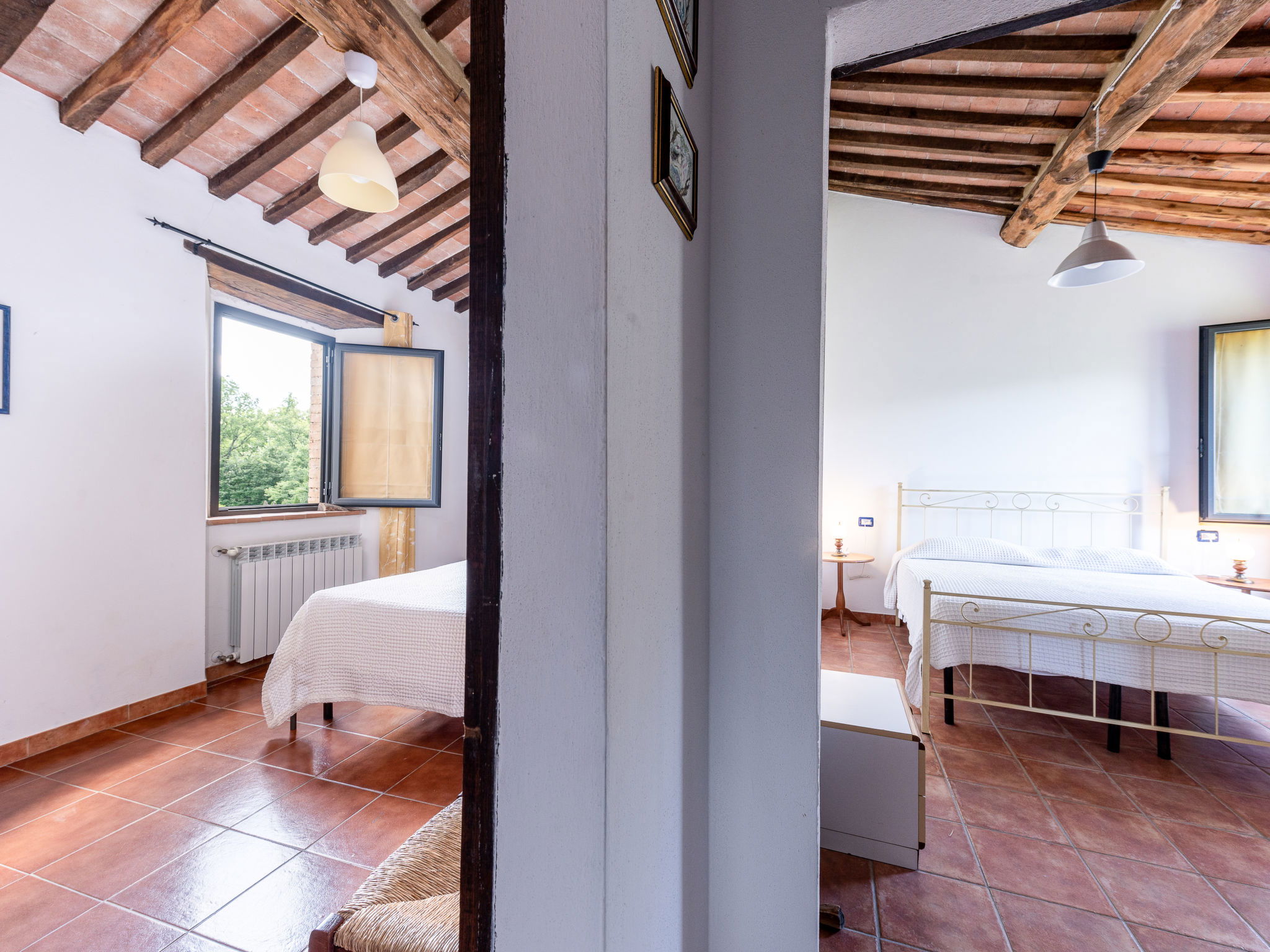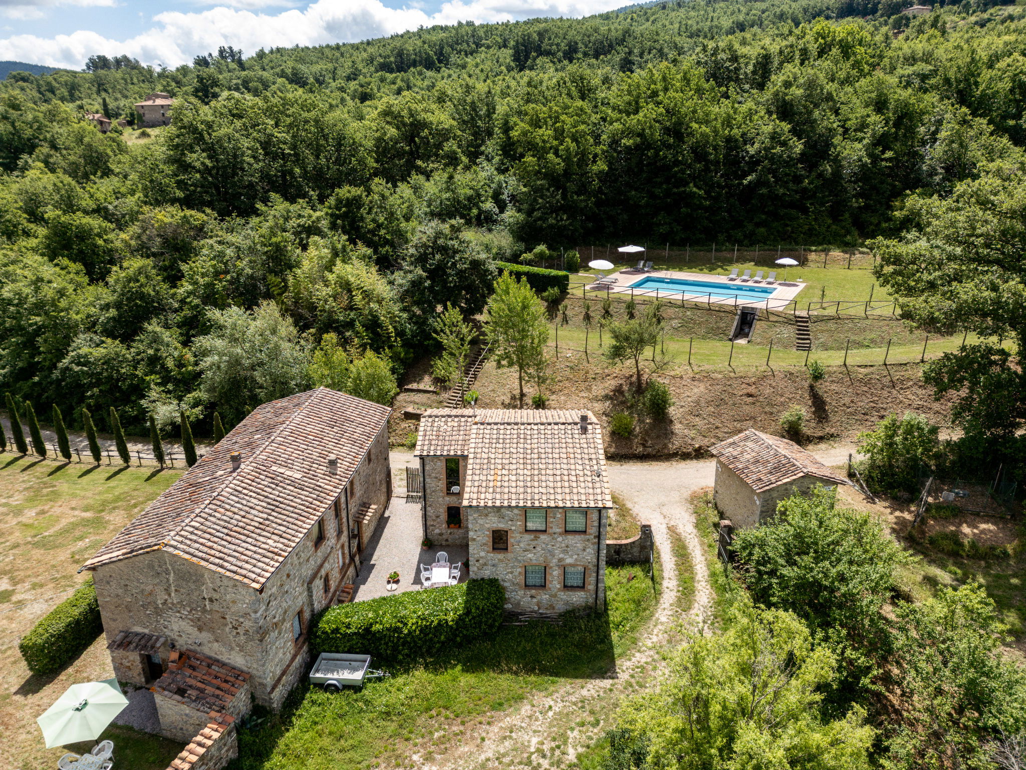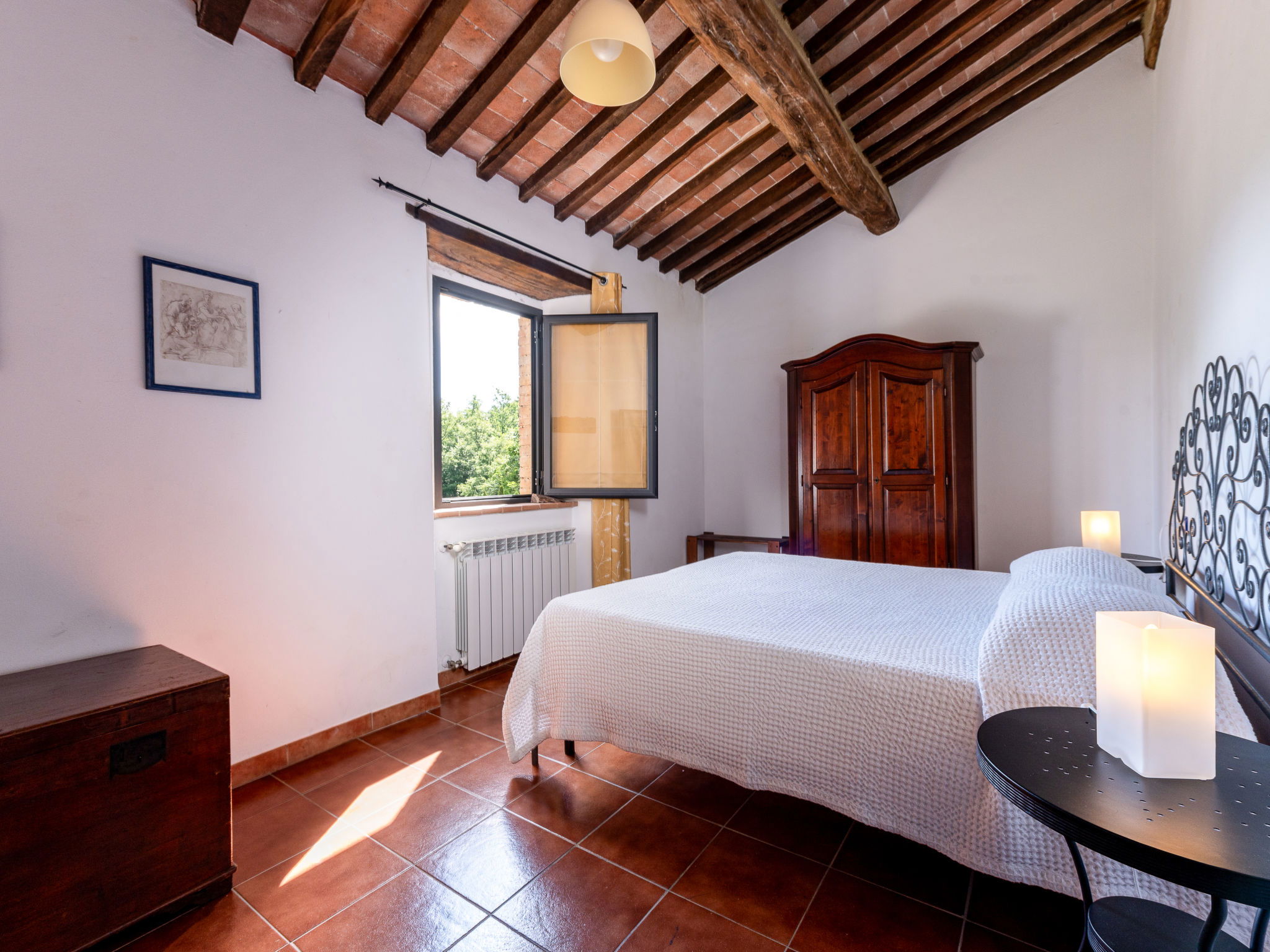 Country house "I Prati di Travale", detached, surrounded by trees, meadows and fields. 4 apartments in the residence. 1 km from the centre of Travale, 6 km from the centre of Montieri, 45 km from the centre of Siena, 45 km from the sea. For shared use: natural state property 3'000 m2, trees, meadow, swimming pool (12 x 6 m, depth 140 cm, seasonal availability: 24.May. - 20.Sep. pool opening hours: 09:00-20:00). Outdoor shower, patio, pool maintenance by the owner/gardener. In the house: washing machine (for shared use, extra). 400 m long bumpy motor access. Parking on the premises. Shop 1 km, supermarket 6 km, bicycle rental 5 km, park "Cornate e Fosini" 12 km, bathing lake "Accesa" 19 km. Riding stable 5 km, walking paths from the house 10 m. Nearby attractions: Giardino dei Suoni 19 km, Abbazia di San Galgano 20 km, Dream Wood - Artistic park 30 km. Well-known lakes can easily be reached: Accesa 35 km. Hiking paths: Mountain-bike 3 km. Local sale of farm products. Please note: animals in the neighbourhood. The swimming pool is reached by an external staircase. E-Bike rental 5km. The prices include limited consumption of electricity.