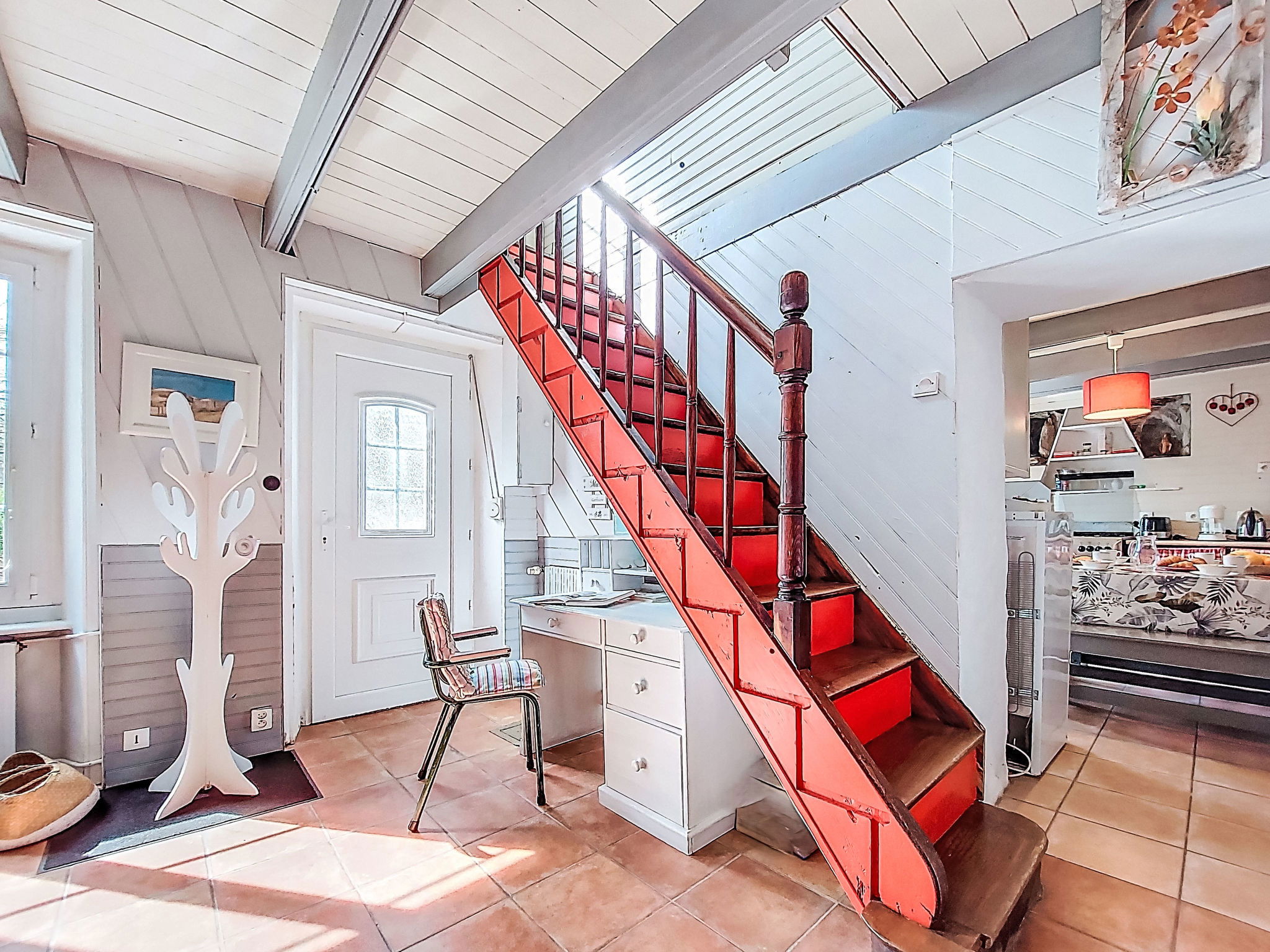 "La Chapelle", 4-room house 80 m2 on 3 levels, south facing position. Simple and cosy furnishings: living/dining room with open-hearth fireplace and TV (flat screen), radio. Exit to the garden. Open kitchen (oven, 4 gas rings, toaster, kettle, microwave, freezer, electric coffee machine, Capsules for coffee machine (nespresso) extra, raclette grill) with dining table. Shower, sep. WC. Oil heating. Upper floor: (steep stair) with sloping ceilings, 1 room with 1 french bed (140 cm, length 190 cm). 1 room with 2 beds (90 cm, length 190 cm). 2nd upper floor: (spiral staircase) with sloping ceilings, 1 room with 2 beds (90 cm, length 190 cm). Terrace furniture, barbecue (portable), deck chairs (2). Facilities: washing machine, dryer, iron, children's high chair, baby cot for up to 2 year olds, hair dryer. Internet (WiFi, free). Please note: non-smoking house. Maximum 1 small pet/ dog allowed. Smoke alarm. Offer by a private individual according to Art. 155, IV of CGI.