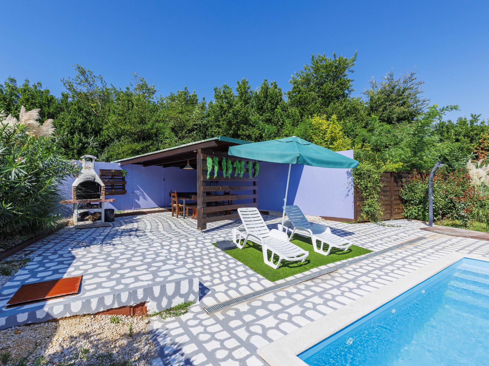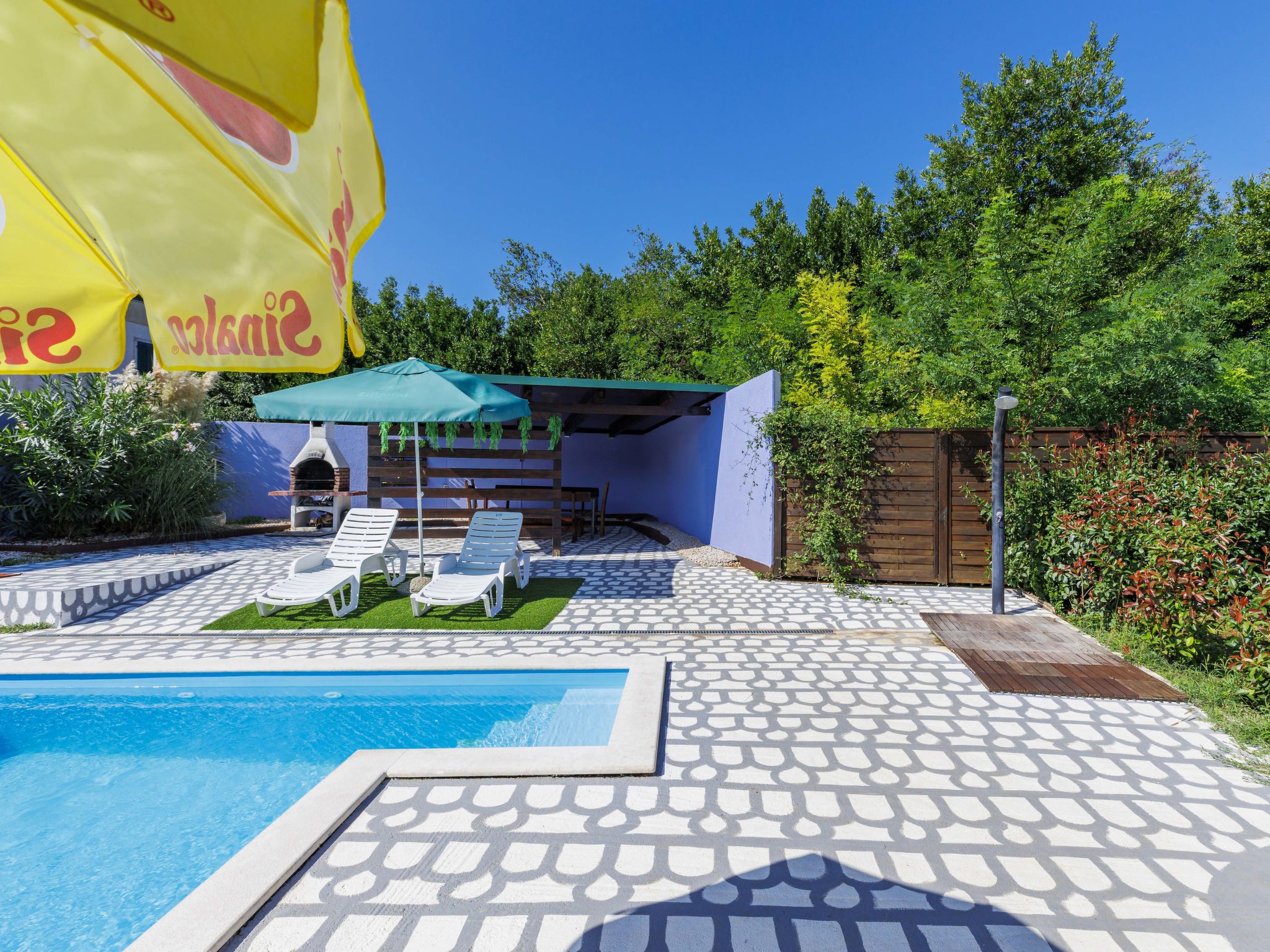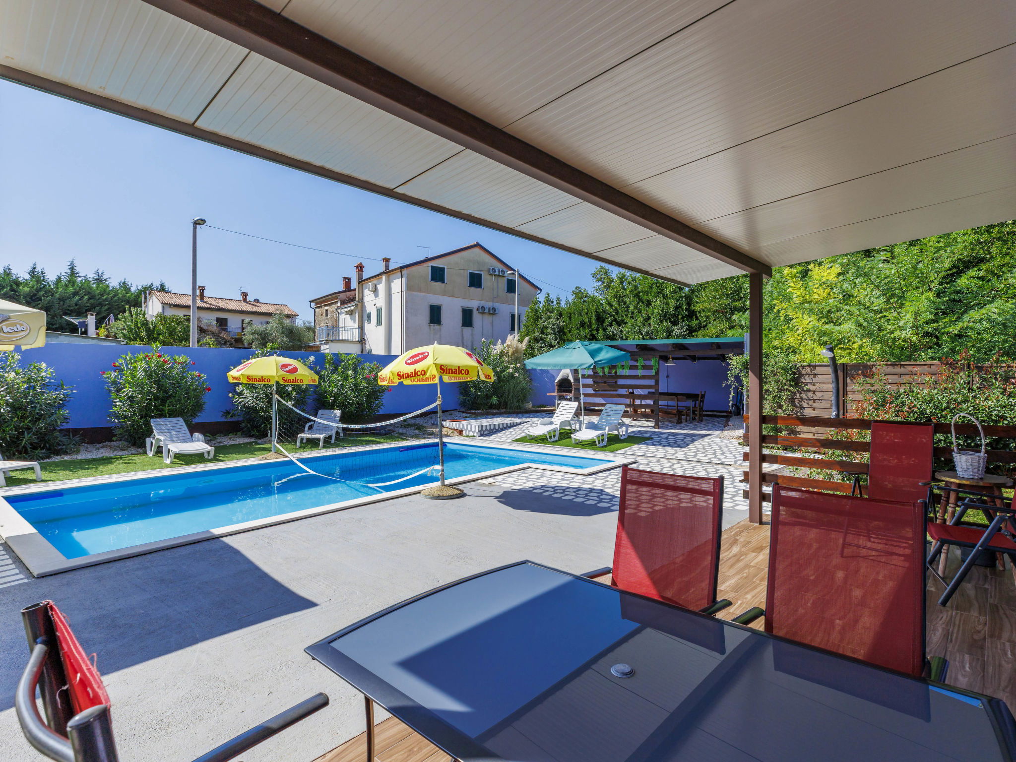 Single-family house "Minja", 2 storeys, built in 2015. In the hamlet Martinčići 2 km from the centre of Buje, 8 km from the centre of Umag, 7 km from the sea. Private: property 750 m2 (fenced), swimming pool angular (8 x 4 m, depth 150 cm, seasonal availability: 04.Apr. - 06.Nov.) with internal staircase. Outdoor shower, terrace, garden furniture, barbecue, pool maintenance by the owner/gardener. In the house: internet access, washing machine. Parking (for 2 cars) on the premises. Shop 1 km, supermarket 2 km, bus stop 7 km, railway station 34 km, pebble beach 7 km, rocky beach 7 km.