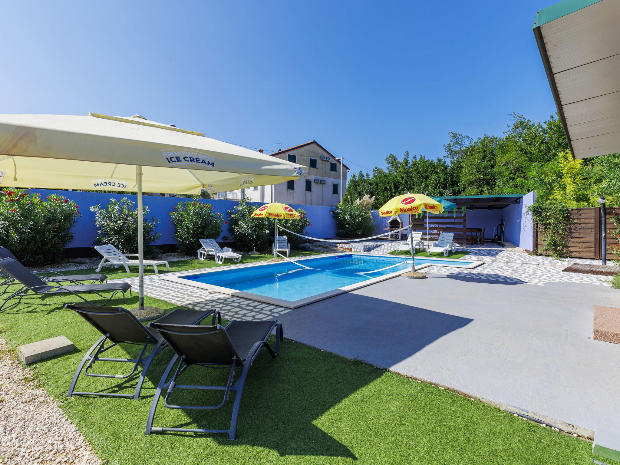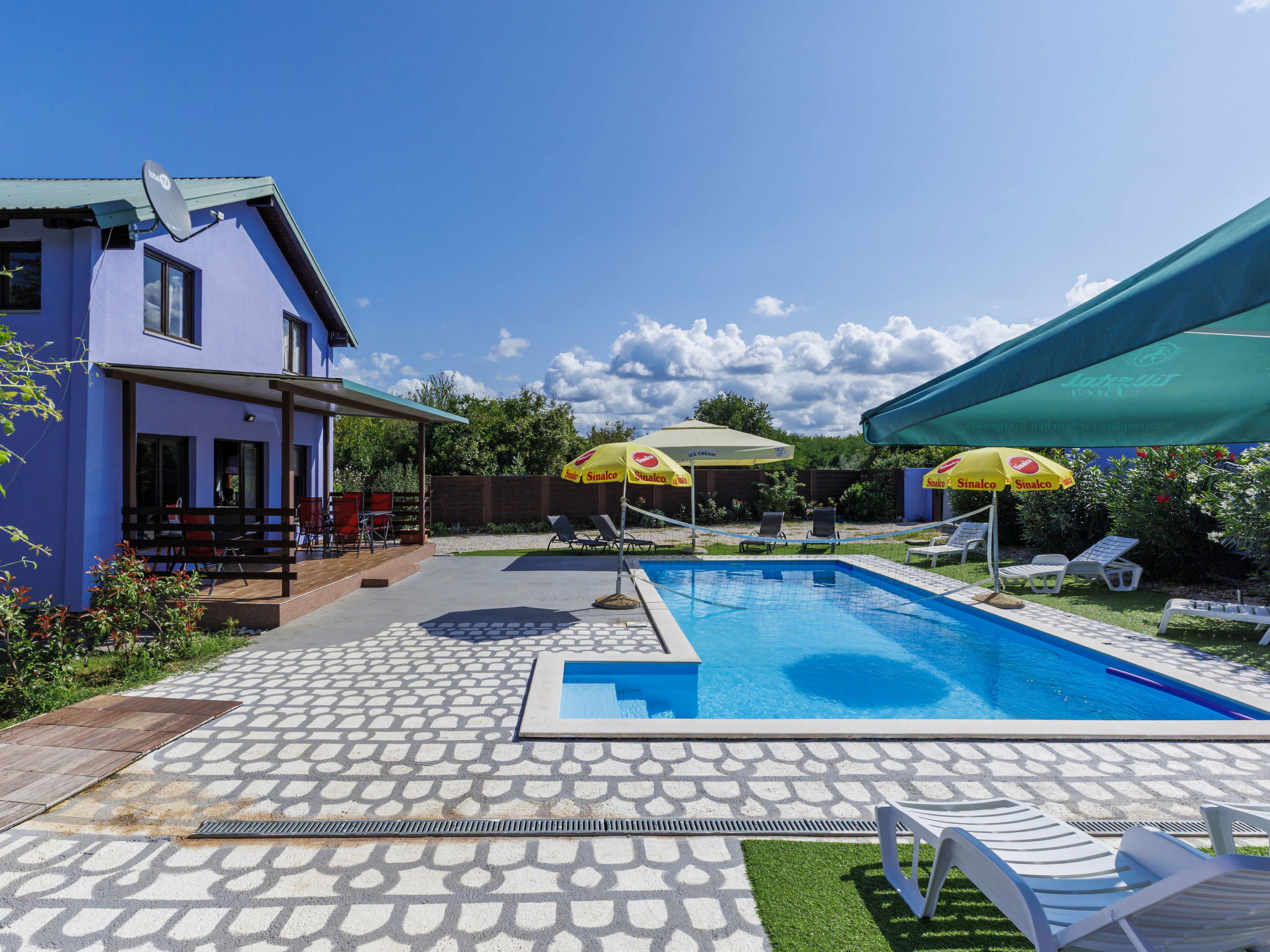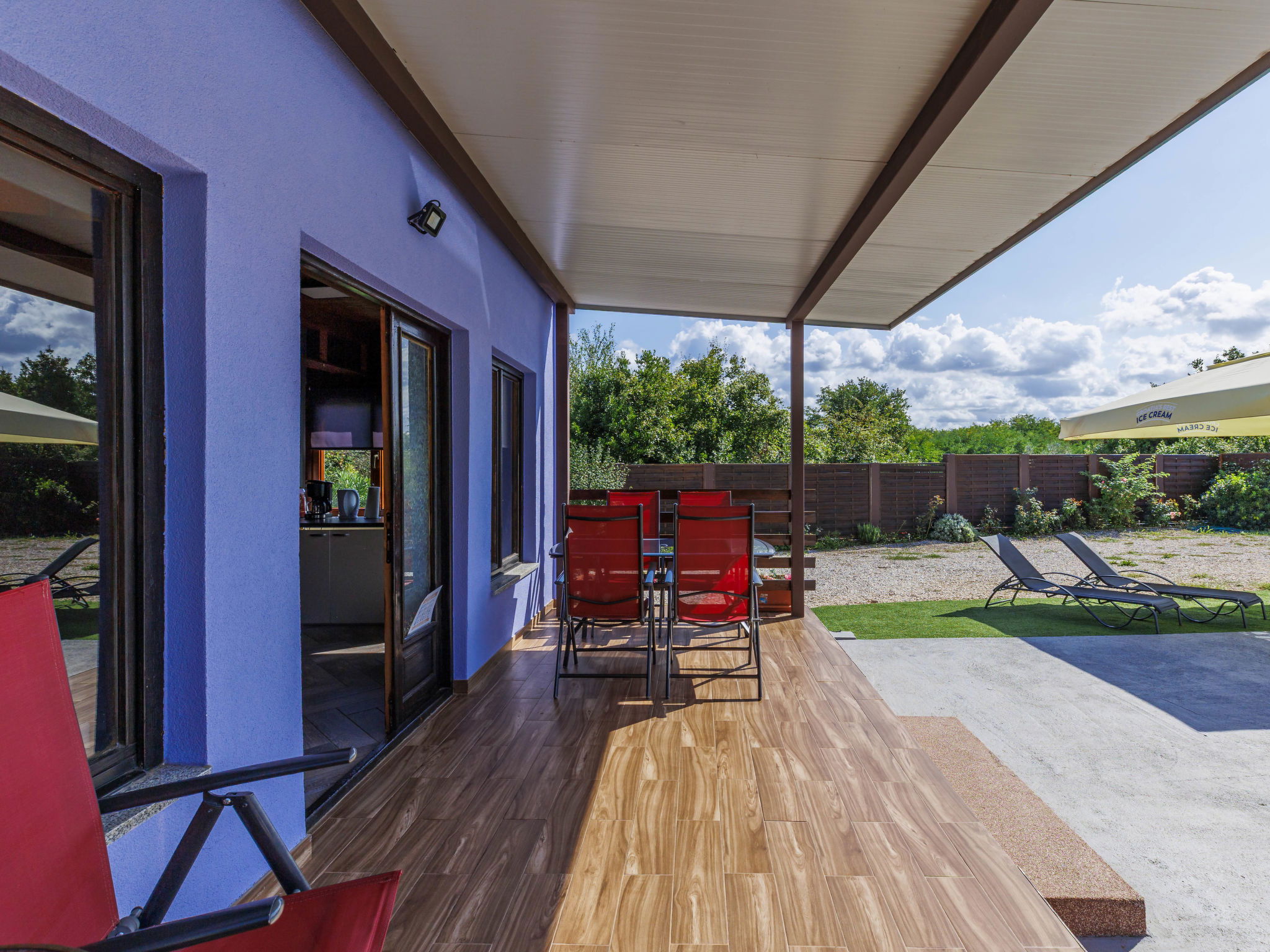 Single-family house "Minja", 2 storeys, built in 2015. In the hamlet Martinčići 2 km from the centre of Buje, 8 km from the centre of Umag, 7 km from the sea. Private: property 750 m2 (fenced), swimming pool angular (8 x 4 m, depth 150 cm, seasonal availability: 04.Apr. - 06.Nov.) with internal staircase. Outdoor shower, terrace, garden furniture, barbecue, pool maintenance by the owner/gardener. In the house: internet access, washing machine. Parking (for 2 cars) on the premises. Shop 1 km, supermarket 2 km, bus stop 7 km, railway station 34 km, pebble beach 7 km, rocky beach 7 km.