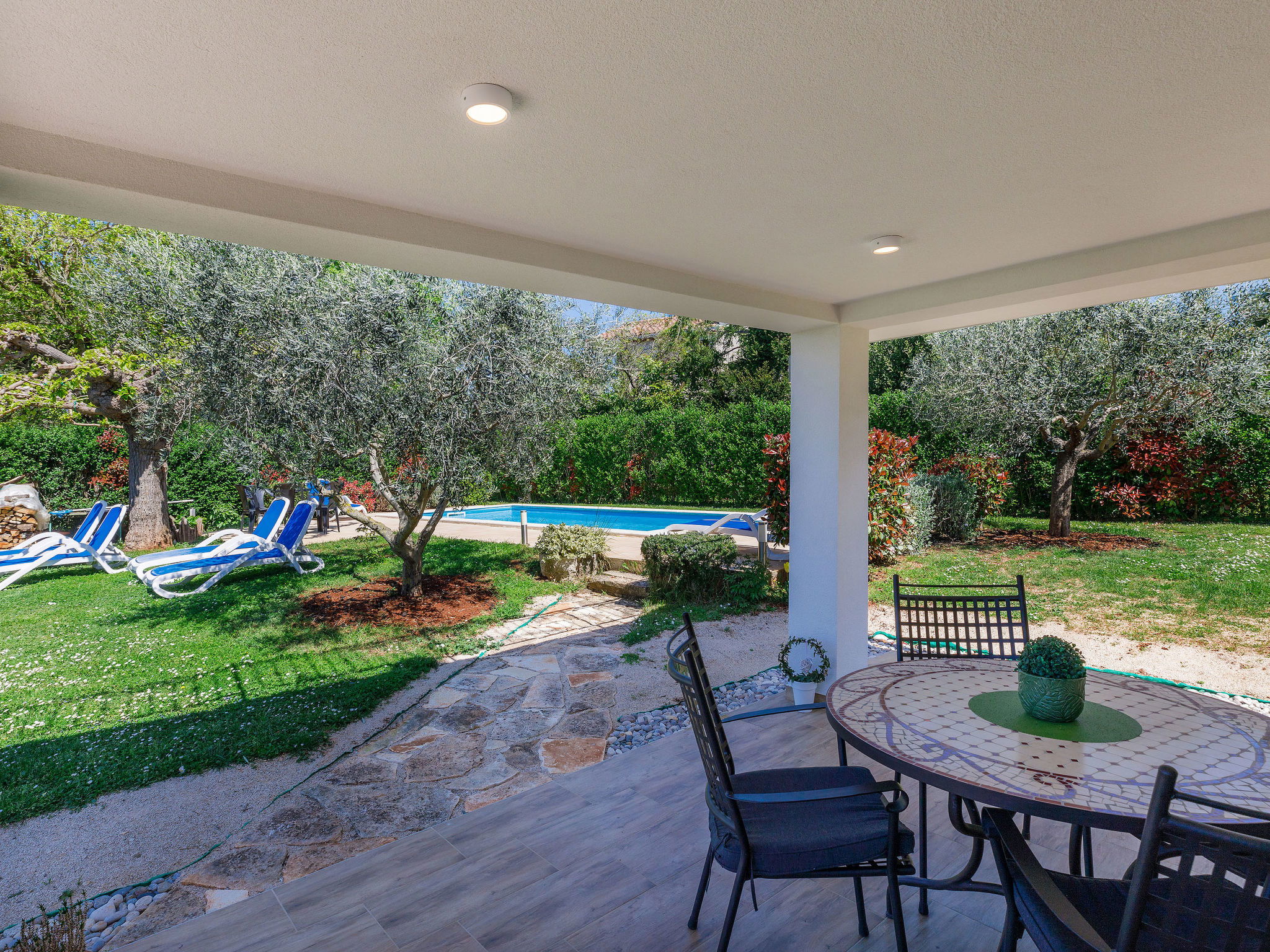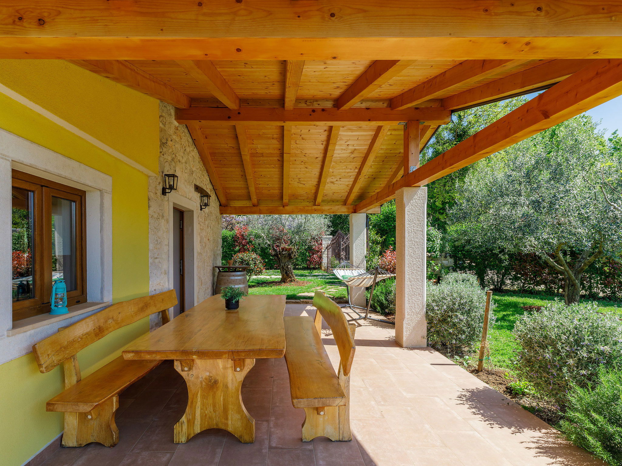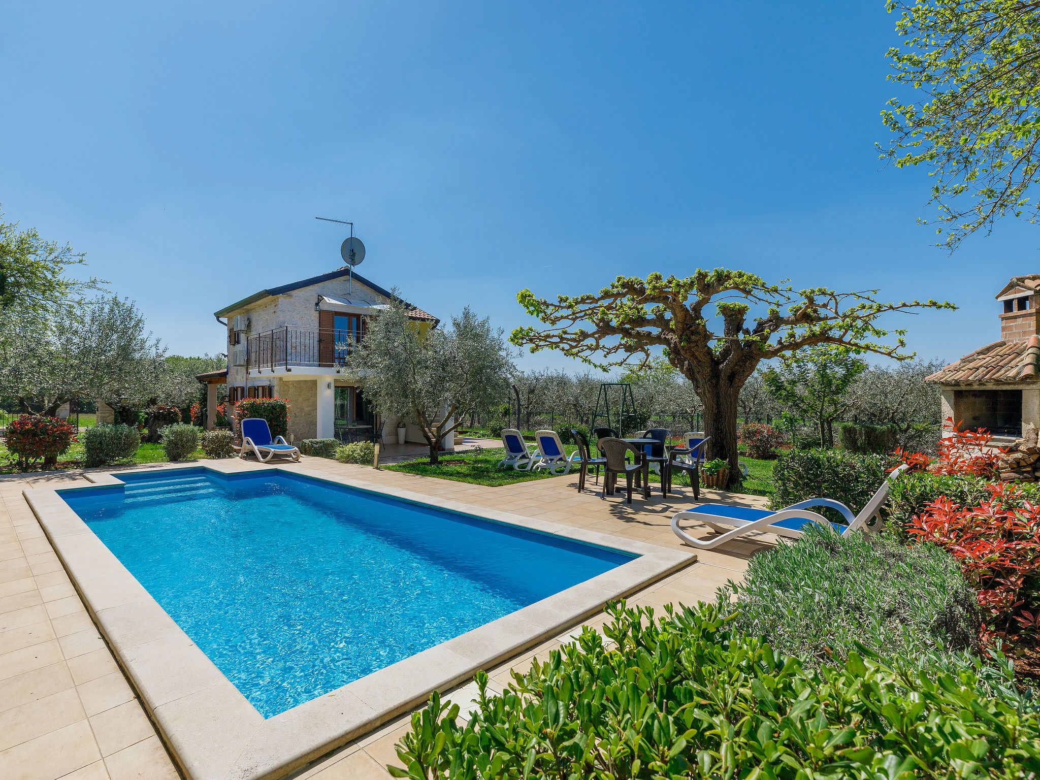 Old, child friendly country house "Marinko", 2 storeys, surrounded by trees. In the hamlet Kušći 6 km from the centre of Umag, outside the resort, in a quiet position, 1.5 km from the sea, 1.5 km from the beach, in the countryside. Private: property 800 m2 (fenced) with lawn, swimming pool angular (7 x 3 m, depth 140 cm, seasonal availability: 15.Apr. - 01.Oct.) with internal staircase. Terrace (30 m2), garden furniture, barbecue (swing). In the house: washing machine. Motor access to the house (250 m via unmade road). Parking at the house on the premises. Shop 1.5 km, restaurant 1.5 km, bus stop 2.2 km, pebble beach 1.5 km, rocky beach 1.5 km.
