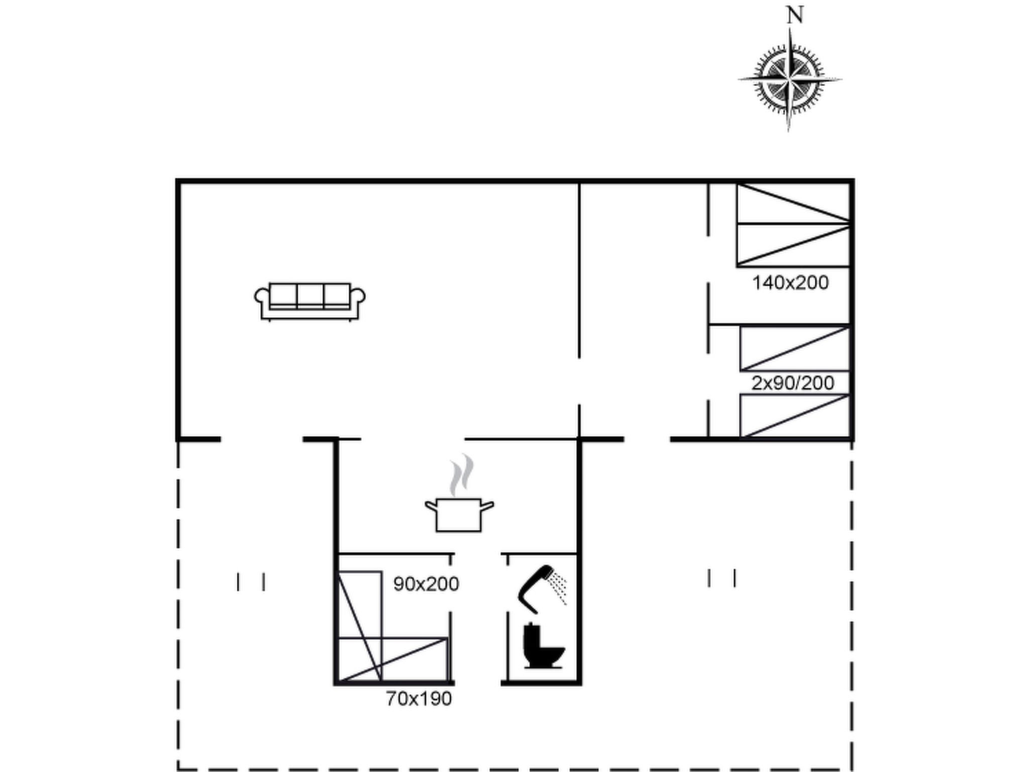 "Aarno" - 700m from the sea", 3-room house 70 m2. Object suitable for 6 adults. Living room with TV, radio, CD-player and DVD. 1 room with 1 double bed. 1 room with 2 beds. 1 room with 1 bed and 1 sleeping facility. Kitchen (oven, dishwasher, 4 ceramic glass hob hotplates, microwave, freezer). Shower/WC. Facilities: Internet (WiFi). Please note: non-smokers only. Maximum 1 pet/ dog allowed. 376-26500