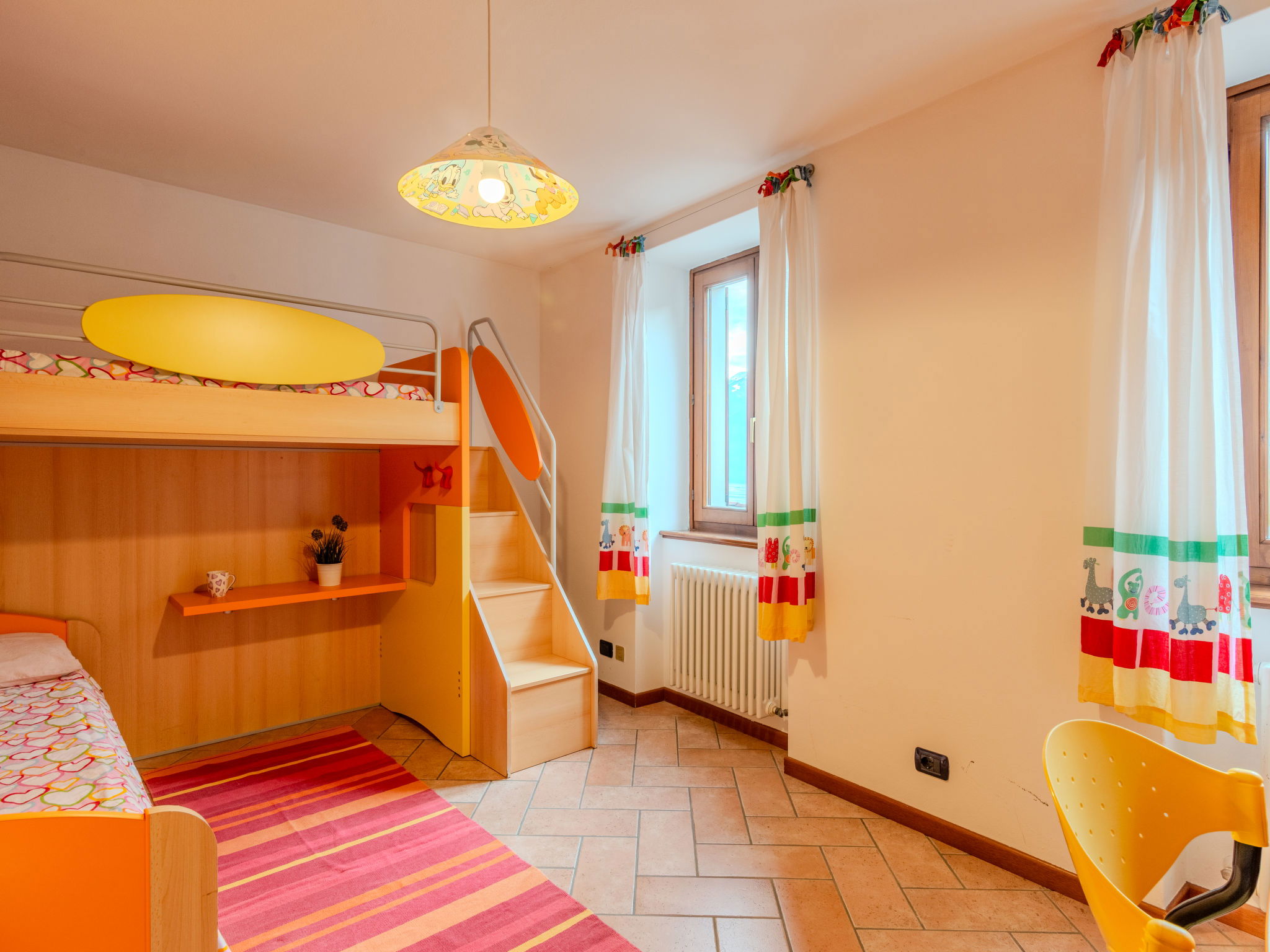 4-room house 100 m2 on 3 levels. Beautiful furnishings: 1 double bedroom. 1 room with 1 x 2 bunk beds. Bath/bidet/WC. Upper floor: open living/dining room with dining table and TV (flat screen). Open kitchen (oven, dishwasher, Gas stove, 4 gas rings, toaster, kettle, microwave, freezer, electric coffee machine) with bar. Shower/bidet/WC. 2nd upper floor: 1 double bedroom with sloping ceilings. Bath/bidet/WC. Gas heating. Heating available only from 15.10. to 15.04. Natural stone floors. Small terrace. Beautiful view of the lake, the mountains and the resort. Facilities: children's high chair, baby cot for up to 2 year olds. Internet (WiFi, free). Please note: non-smoking house, no parking. Maximum 1 pet/ dog allowed. IT013234C2KMSDY8OT