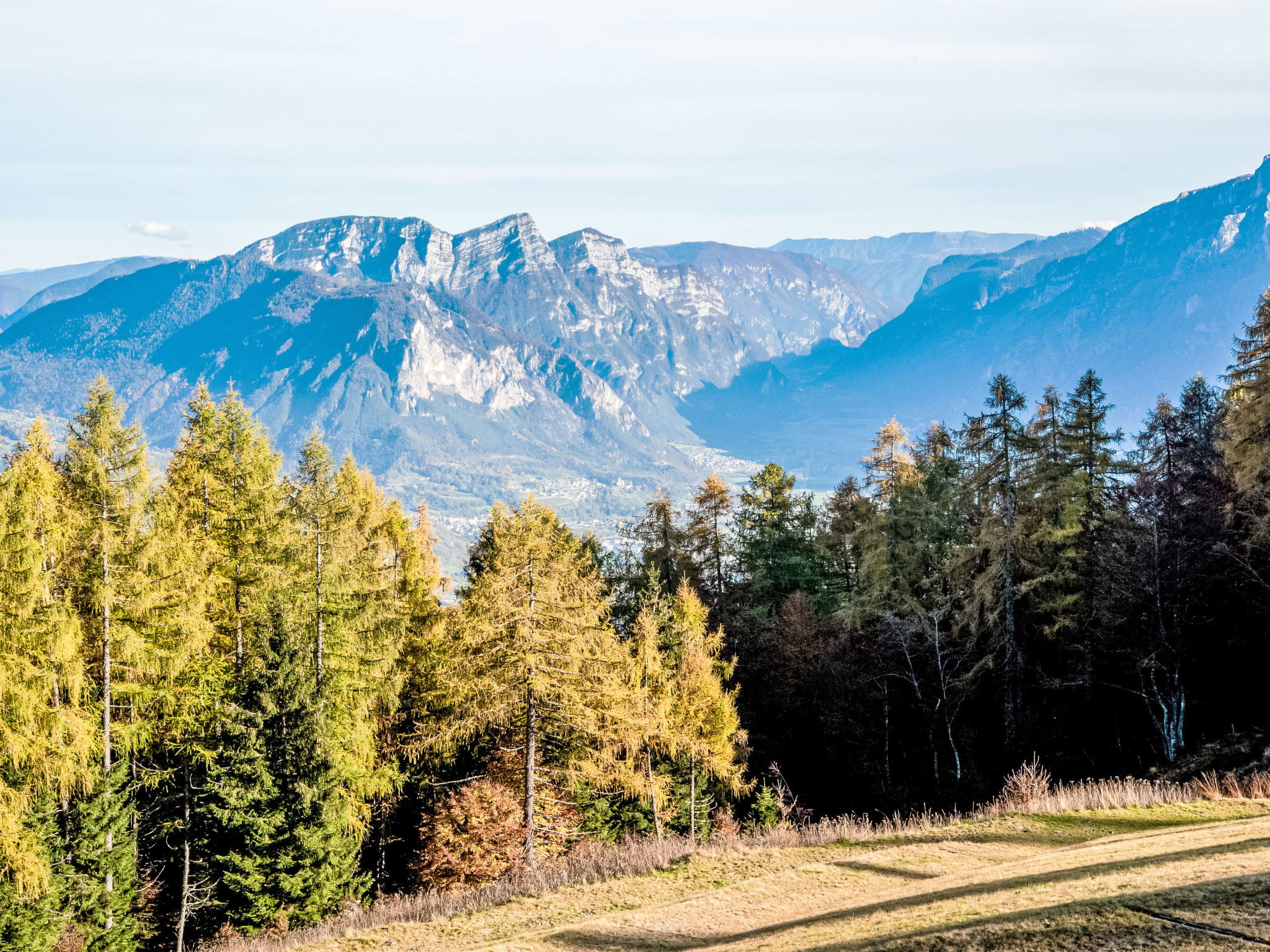 Ronchi Valsugana: Cosy, rustic rustic chalet "Baita al Compo", 2 storeys, detached, surrounded by meadows, fields and vineyards. In the district of Compo 7 km from the centre of Torcegno, in a quiet, sunny position on top of a hill, 20 m from the edge of the forest, in the countryside, south facing position. Linen change weekly (suppl. charge extra). Towel change weekly (suppl. charge extra). Room cleaning weekly on request (extra). Parking at the house. Grocery 7 km, supermarket 7 km, restaurant 7 km, bar 7 km, pedestrian zone 7 km, pub garden 7 km, bus stop 7 km, bathing lake "Lago di Levico" 23 km. Walking paths from the house 20 m. Owner uses some rooms in the house.