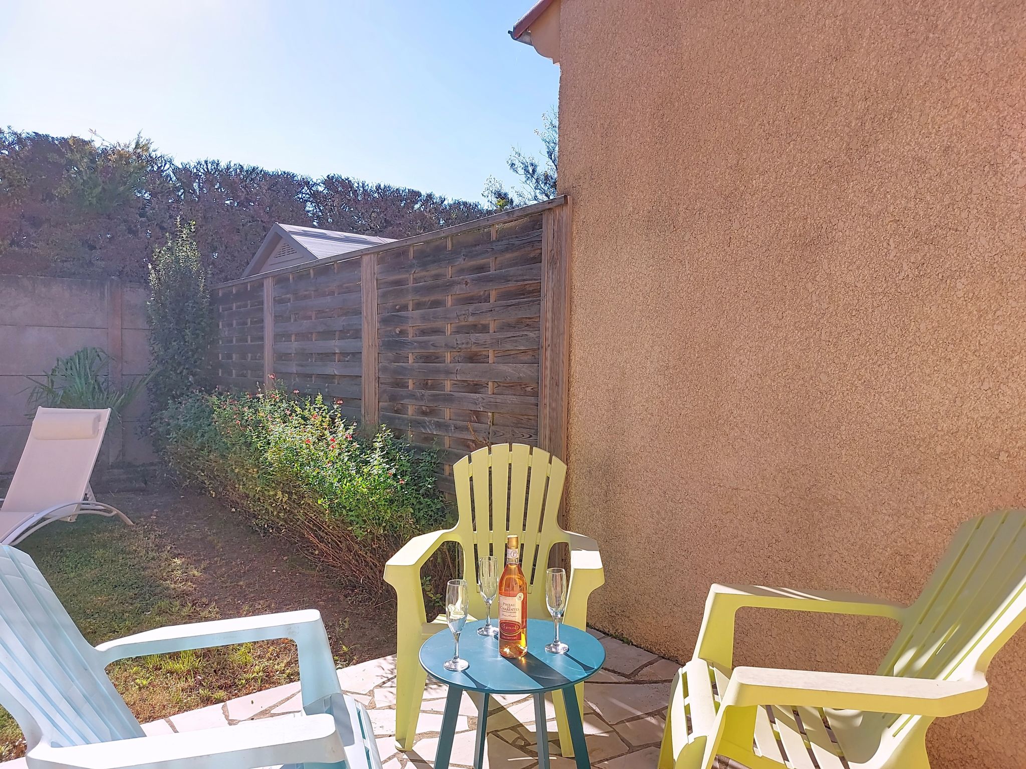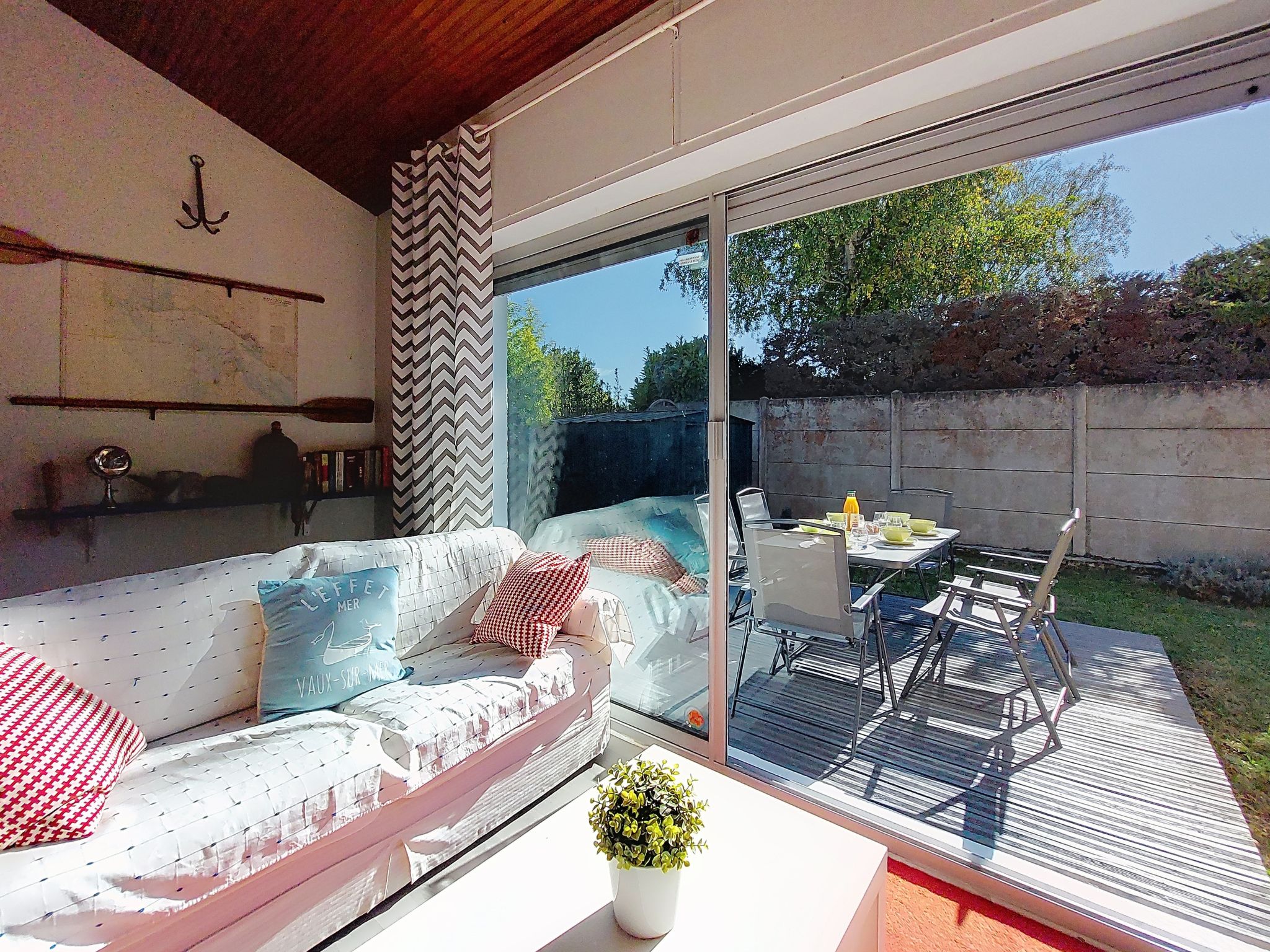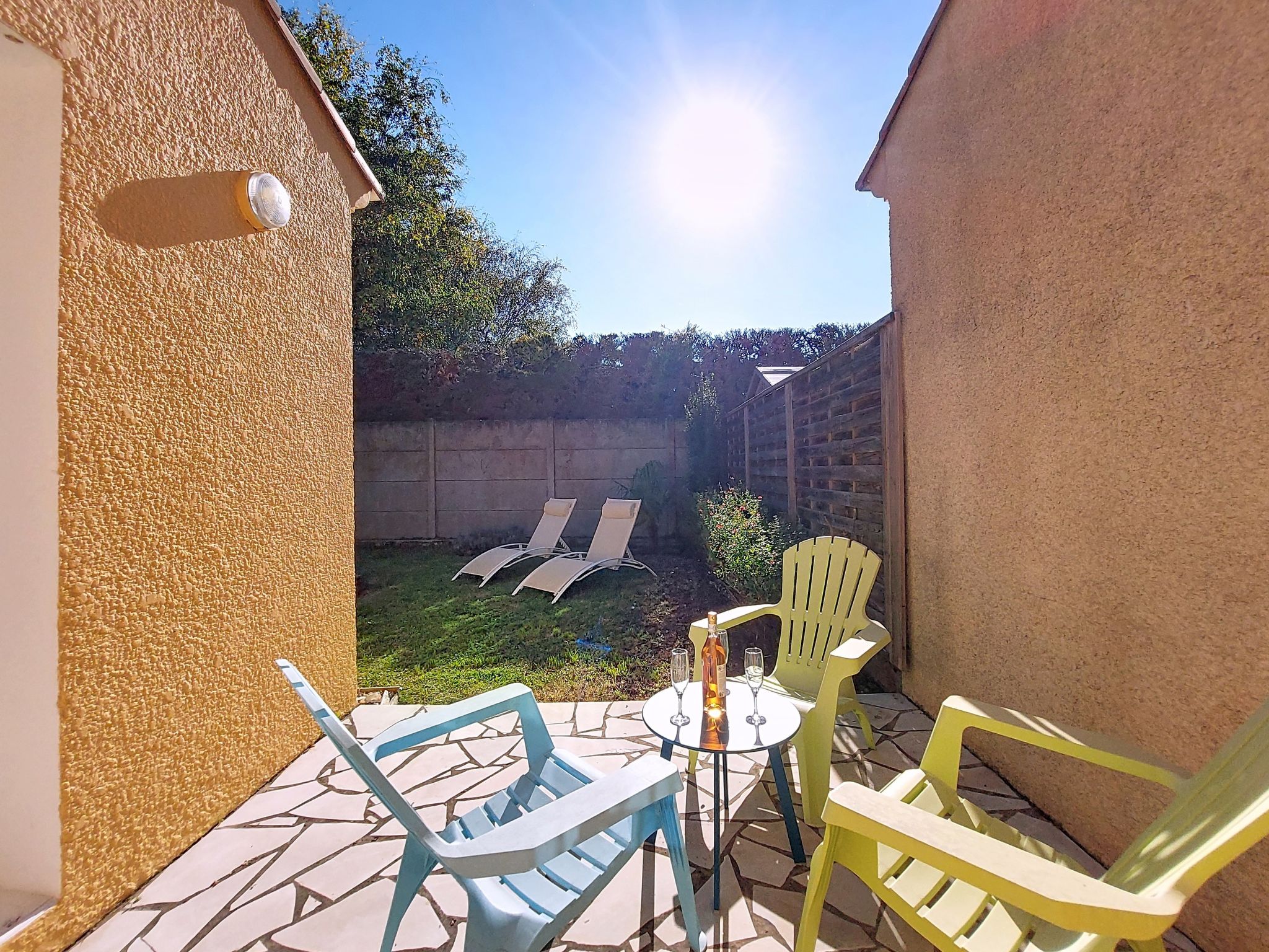 Small residence "Les Floriales". 4 houses in the residence. In the centre of Vaux sur Mer, excellent location: right in the centre but still quiet, 2 km from the sea, 2 km from the beach. Grocery 350 m, supermarket 1.5 km, bar, bakery 350 m, bus stop "Courtot" 350 m, railway station "Royan" 6 km, sandy beach "Nauzan" 2 km, indoor swimming pool 6 km, thermal baths "Thalassothérapie Thalazur Royan" 4 km. Golf course (18 hole) 4 km, tennis 1 km, indoor tennis centre 1 km, cycle lane 350 m. Nearby attractions: Tennis et Padel Club de Vaux sur Mer 1 km, Casino Barrière 2.5 km, Palais des Congrès 4 km, Embarcadère Royan - Le Verdon 4.5 km, Marché Central de Royan 3.5 km, Zoo de La Palmyre 11 km. The keys‘ handover takes place by the agency in Vaux sur Mer, 3 km.