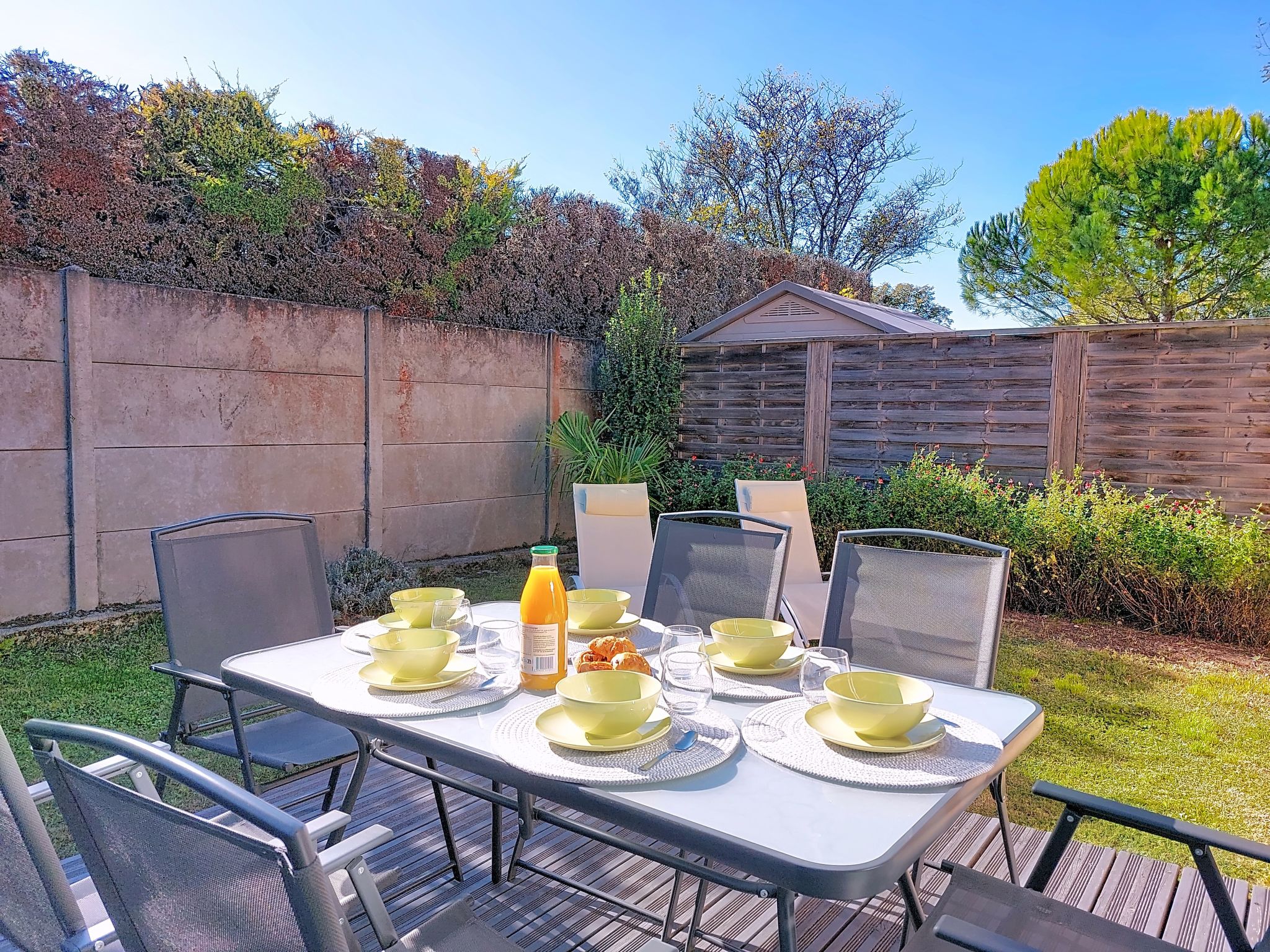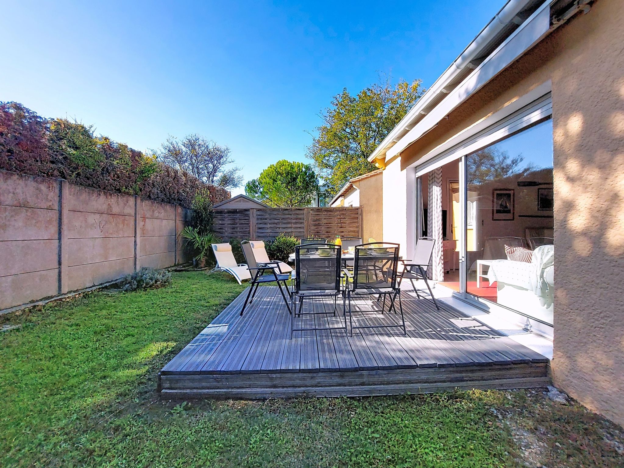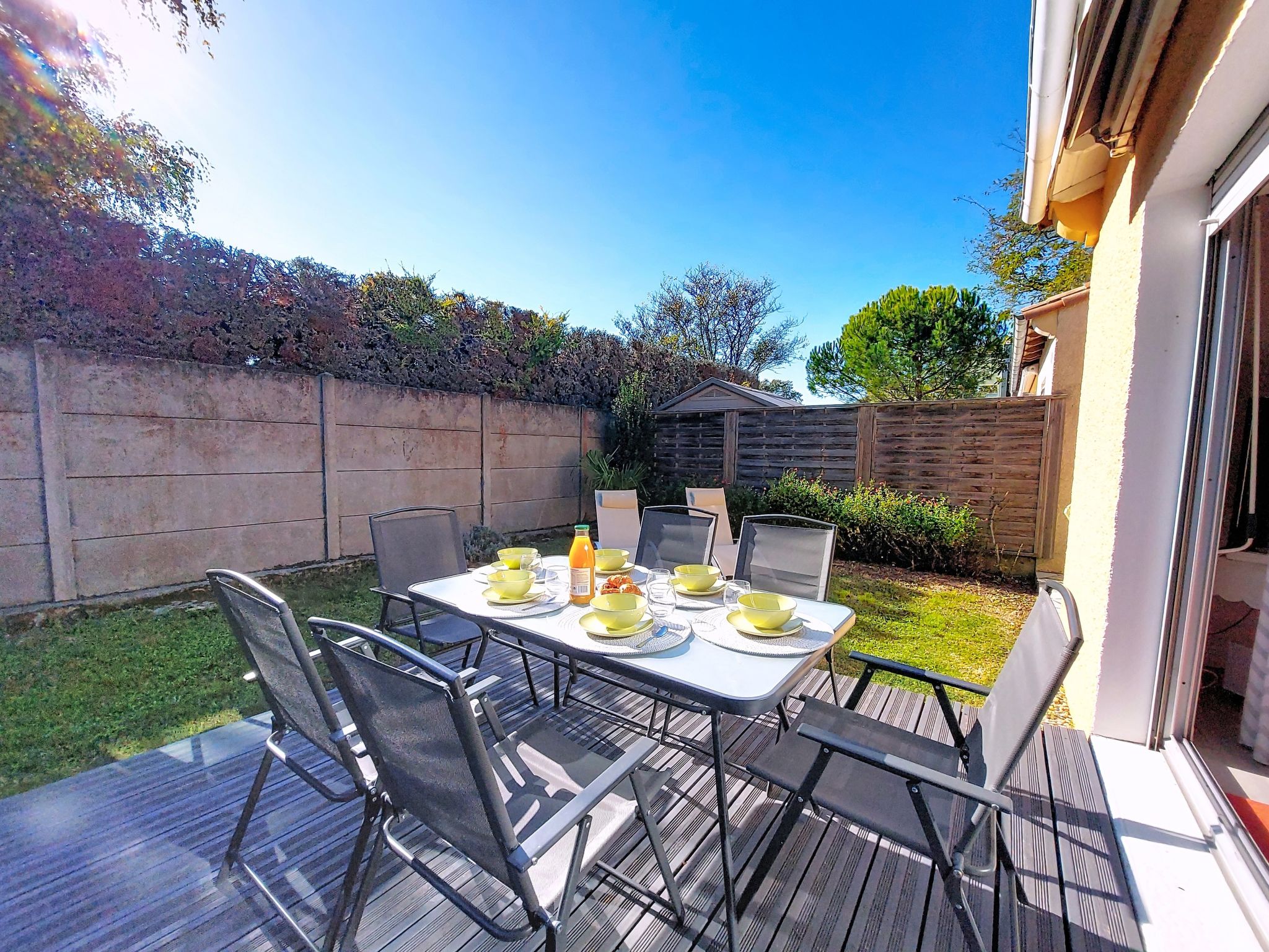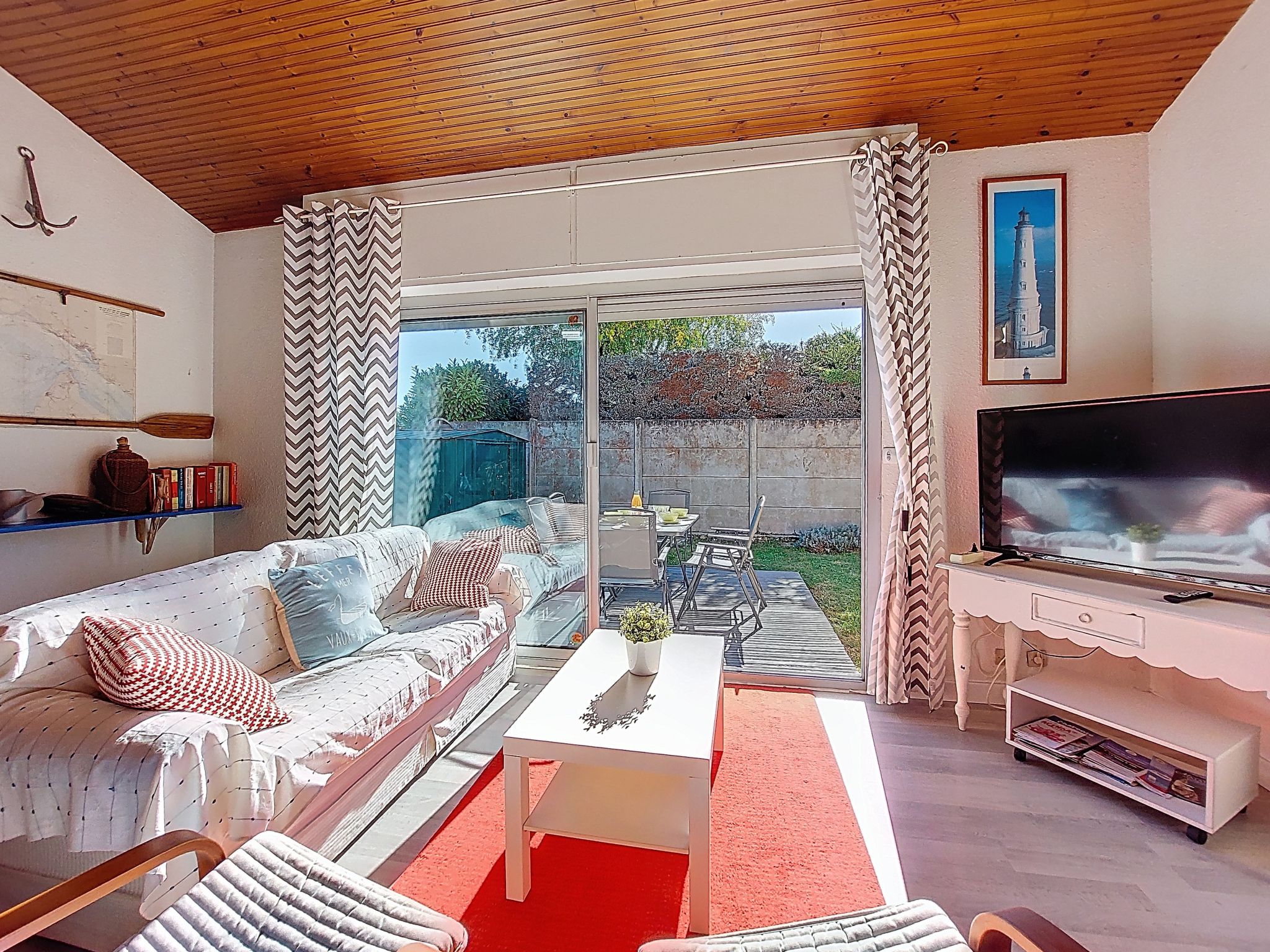 Small residence "Les Floriales". 4 houses in the residence. In the centre of Vaux sur Mer, excellent location: right in the centre but still quiet, 2 km from the sea, 2 km from the beach. Grocery 350 m, supermarket 1.5 km, bar, bakery 350 m, bus stop "Courtot" 350 m, railway station "Royan" 6 km, sandy beach "Nauzan" 2 km, indoor swimming pool 6 km, thermal baths "Thalassothérapie Thalazur Royan" 4 km. Golf course (18 hole) 4 km, tennis 1 km, indoor tennis centre 1 km, cycle lane 350 m. Nearby attractions: Tennis et Padel Club de Vaux sur Mer 1 km, Casino Barrière 2.5 km, Palais des Congrès 4 km, Embarcadère Royan - Le Verdon 4.5 km, Marché Central de Royan 3.5 km, Zoo de La Palmyre 11 km. The keys‘ handover takes place by the agency in Vaux sur Mer, 3 km.