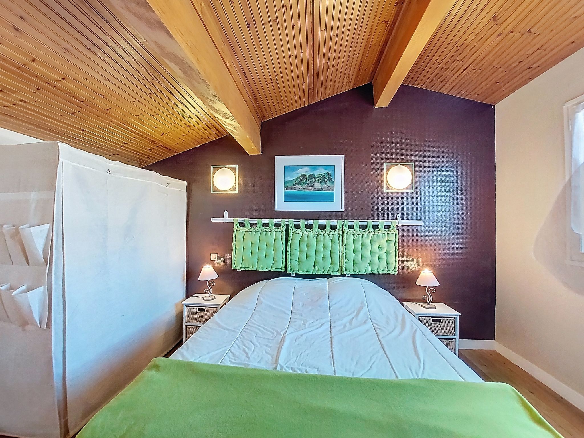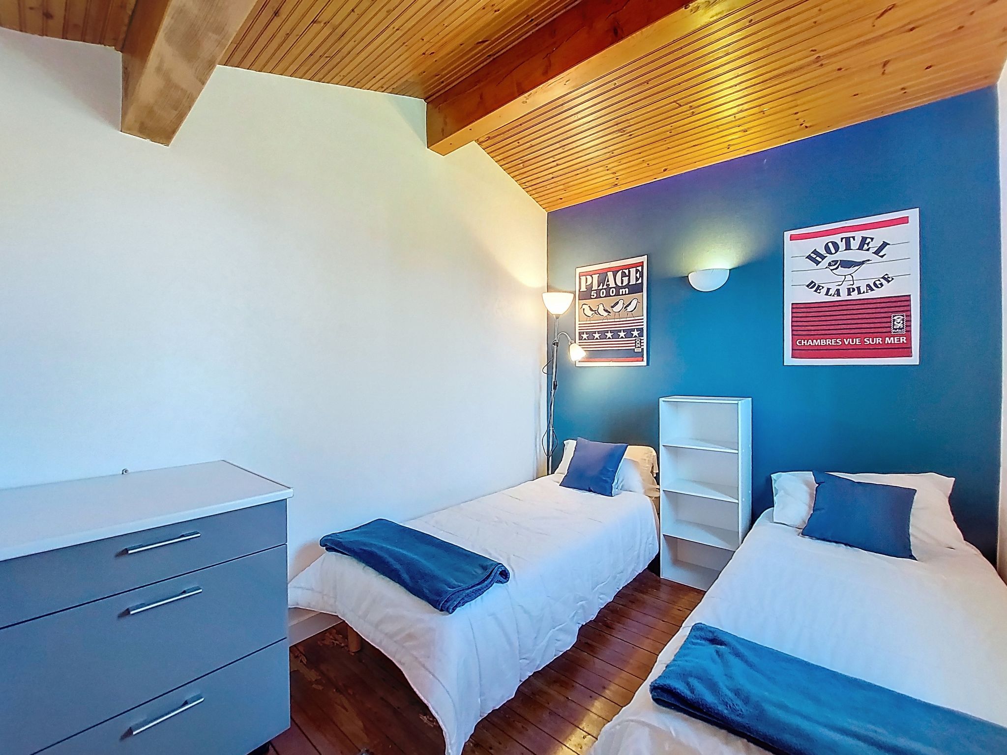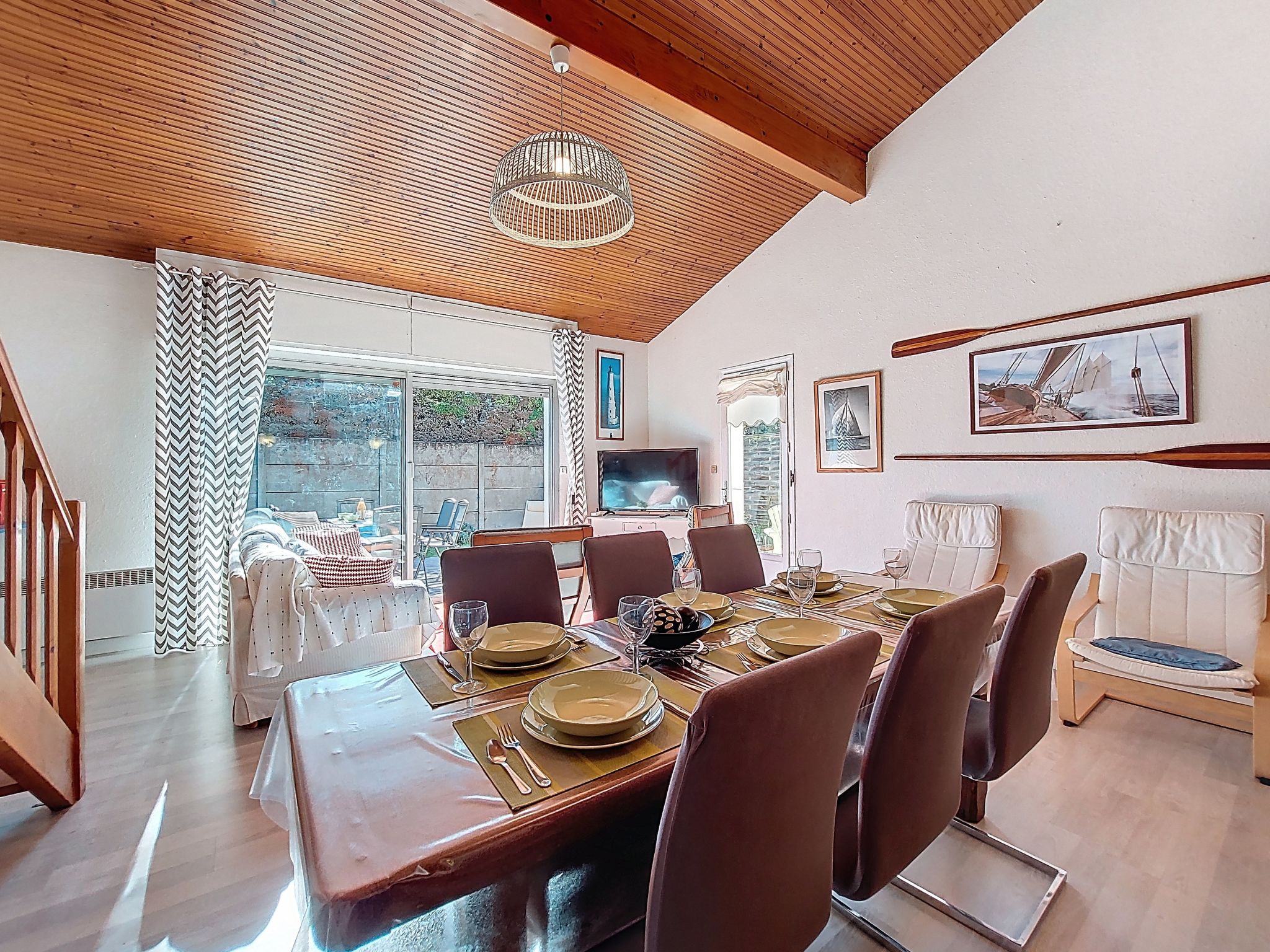 4-room house 83 m2 on 2 levels. Living/dining room with TV (flat screen). Exit to the terrace. 1 room with 1 french bed (1 x 180 cm, length 190 cm). Kitchen (oven, dishwasher, 3 induction hot plates, microwave, freezer, electric coffee machine, Capsules for coffee machine (Magimix) extra). Shower, sep. WC. Electric heating. Upper floor: 1 room with 2 beds (80 cm, length 190 cm). 1 room with 1 double bed (2 x 80 cm, length 190 cm). 2 terraces 10 m2, garden 250 m2. Terrace furniture, barbecue. Facilities: washing machine, iron, children's high chair, baby cot. Internet (WiFi, extra). Parking (2 cars). Please note: maximum 1 small pet/ dog allowed. Smoke alarm. Offer by a private individual according to Art. 155, IV of CGI.