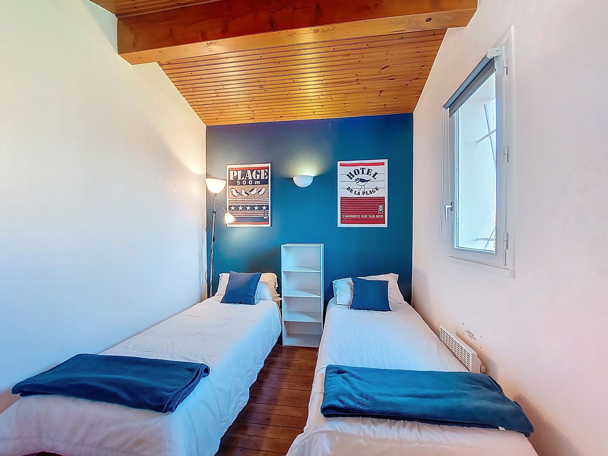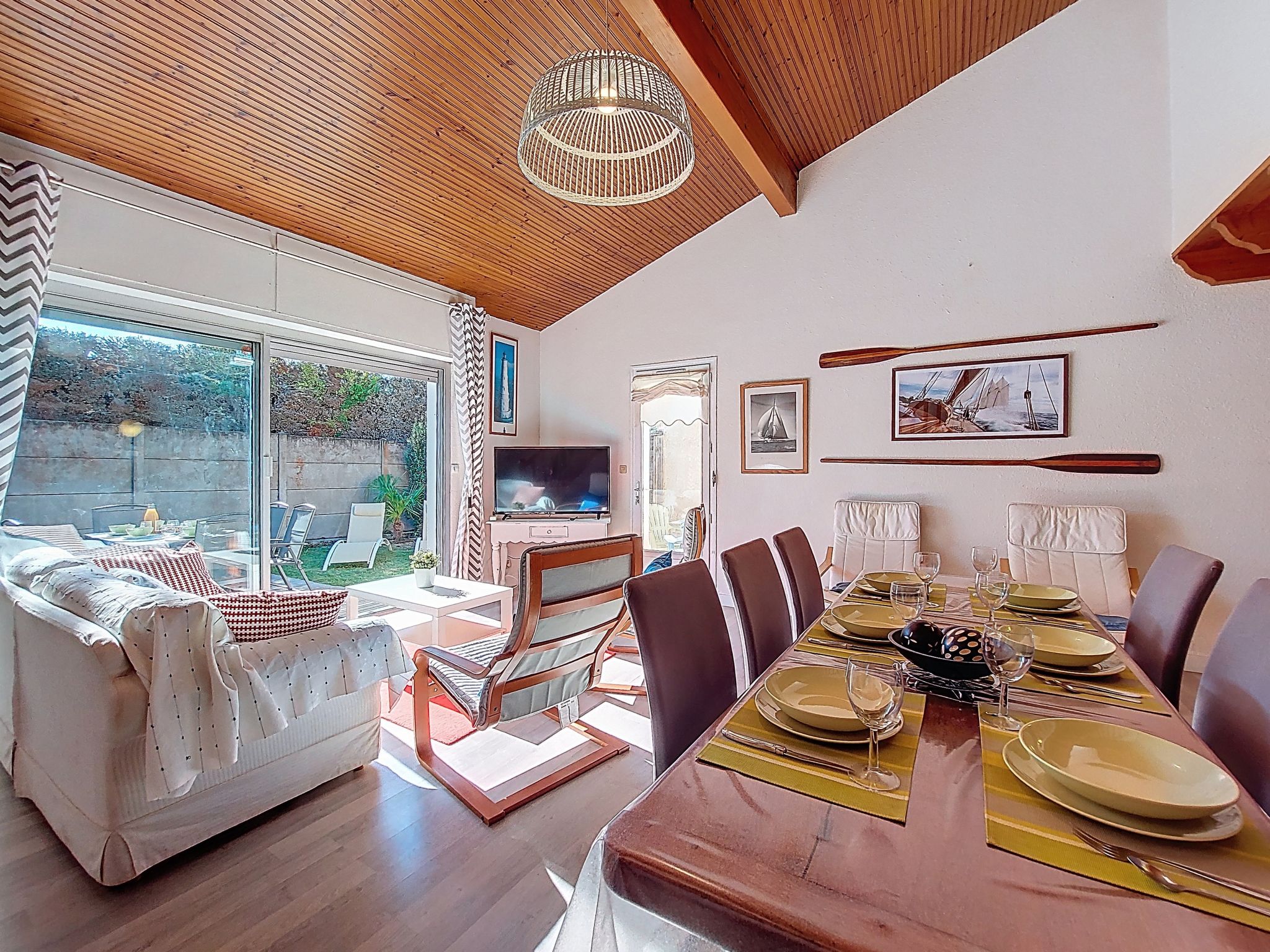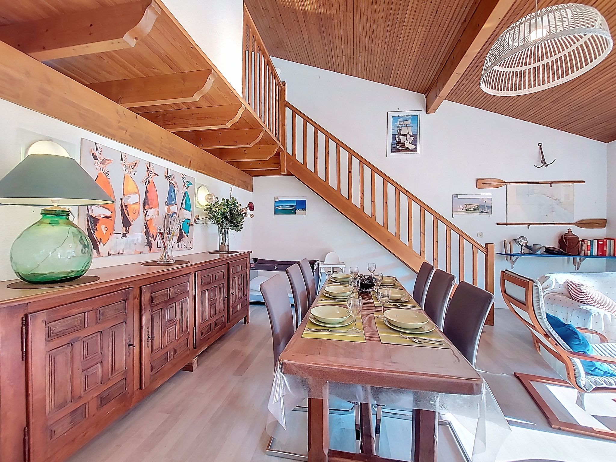 4-room house 83 m2 on 2 levels. Living/dining room with TV (flat screen). Exit to the terrace. 1 room with 1 french bed (1 x 180 cm, length 190 cm). Kitchen (oven, dishwasher, 3 induction hot plates, microwave, freezer, electric coffee machine, Capsules for coffee machine (Magimix) extra). Shower, sep. WC. Electric heating. Upper floor: 1 room with 2 beds (80 cm, length 190 cm). 1 room with 1 double bed (2 x 80 cm, length 190 cm). 2 terraces 10 m2, garden 250 m2. Terrace furniture, barbecue. Facilities: washing machine, iron, children's high chair, baby cot. Internet (WiFi, extra). Parking (2 cars). Please note: maximum 1 small pet/ dog allowed. Smoke alarm. Offer by a private individual according to Art. 155, IV of CGI.