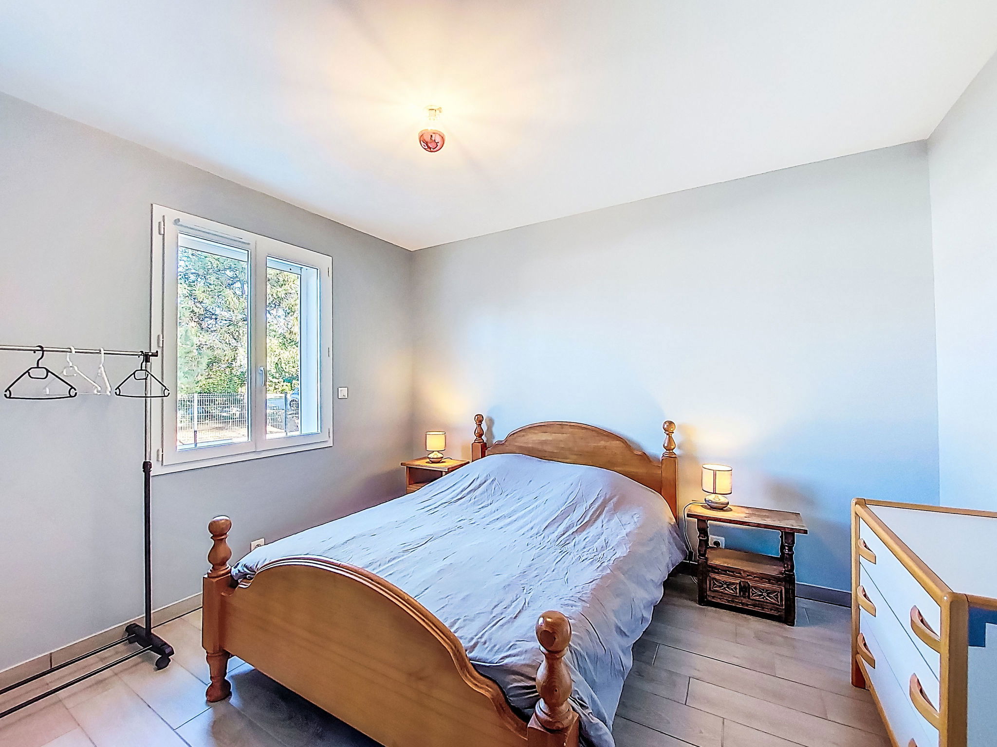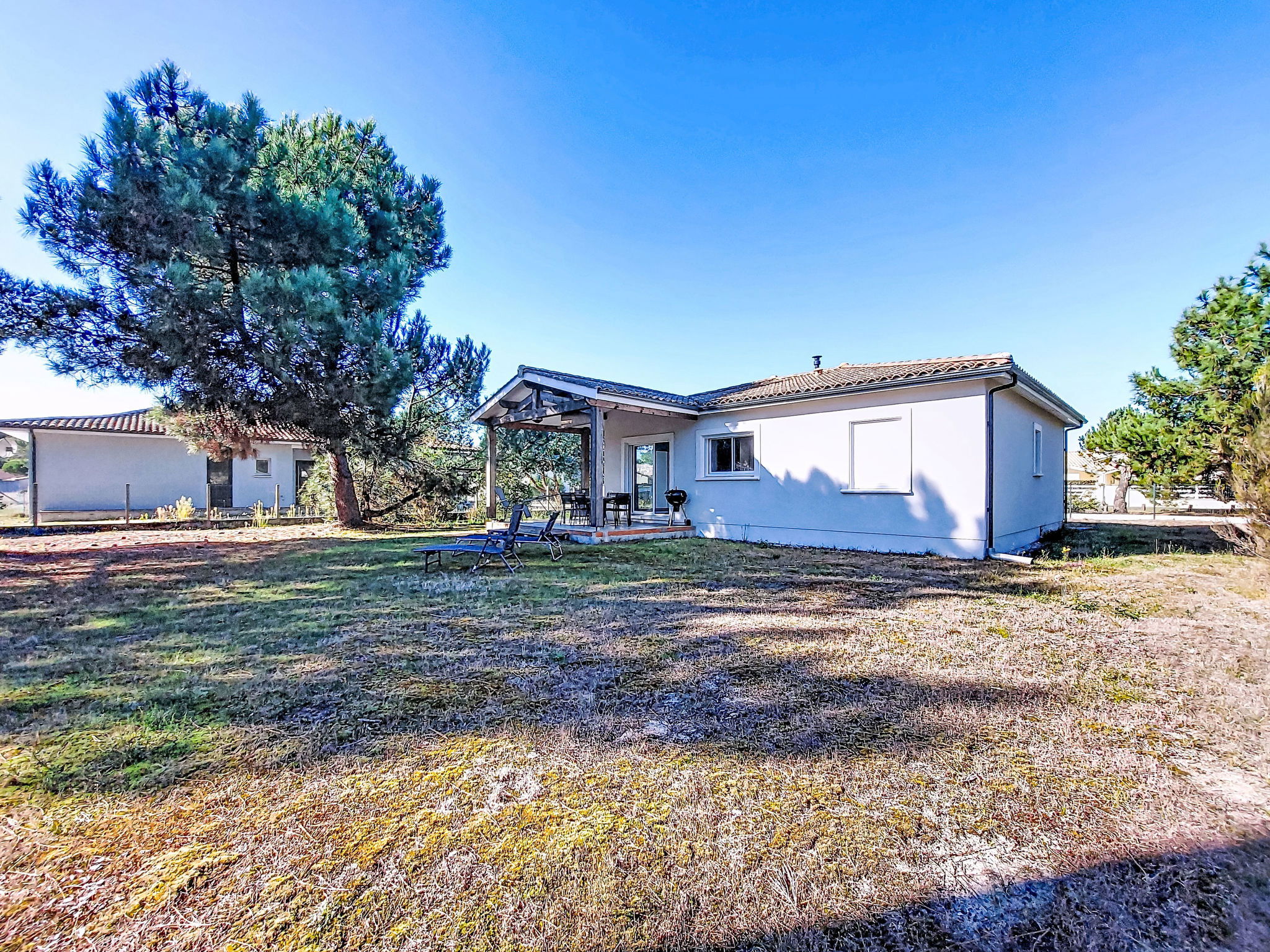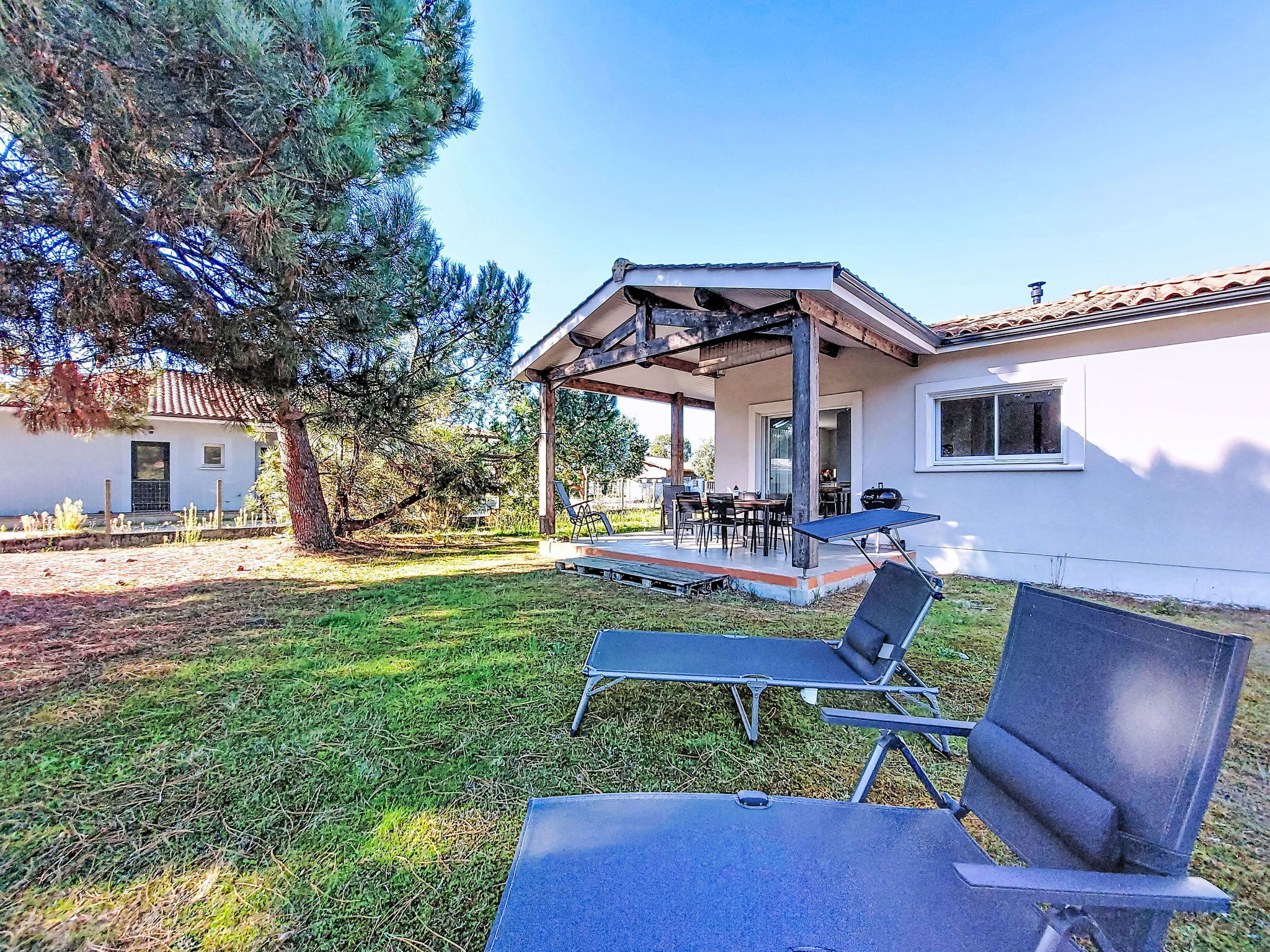 Single-family house. In the district of Le Hameau des Pins 1 km from the centre of Montalivet, 7.5 km from the centre of Vendays, 19 km from the centre of Soulac-sur-Mer, in the residential district, 1.4 km from the sea, 1.4 km from the beach, in a cul-de-sac. Private: natural state property 800 m2 (fenced), parking at the house on the premises. Shop 1 km, supermarket 1.2 km, bus stop "Av. De l'Europe/Montalivet" 650 m, sandy beach "Montalivet" 1.4 km, bathing lake "Hourtin" 30 km. Nearby attractions: Lacanau 50 km, Bordeaux 80 km.