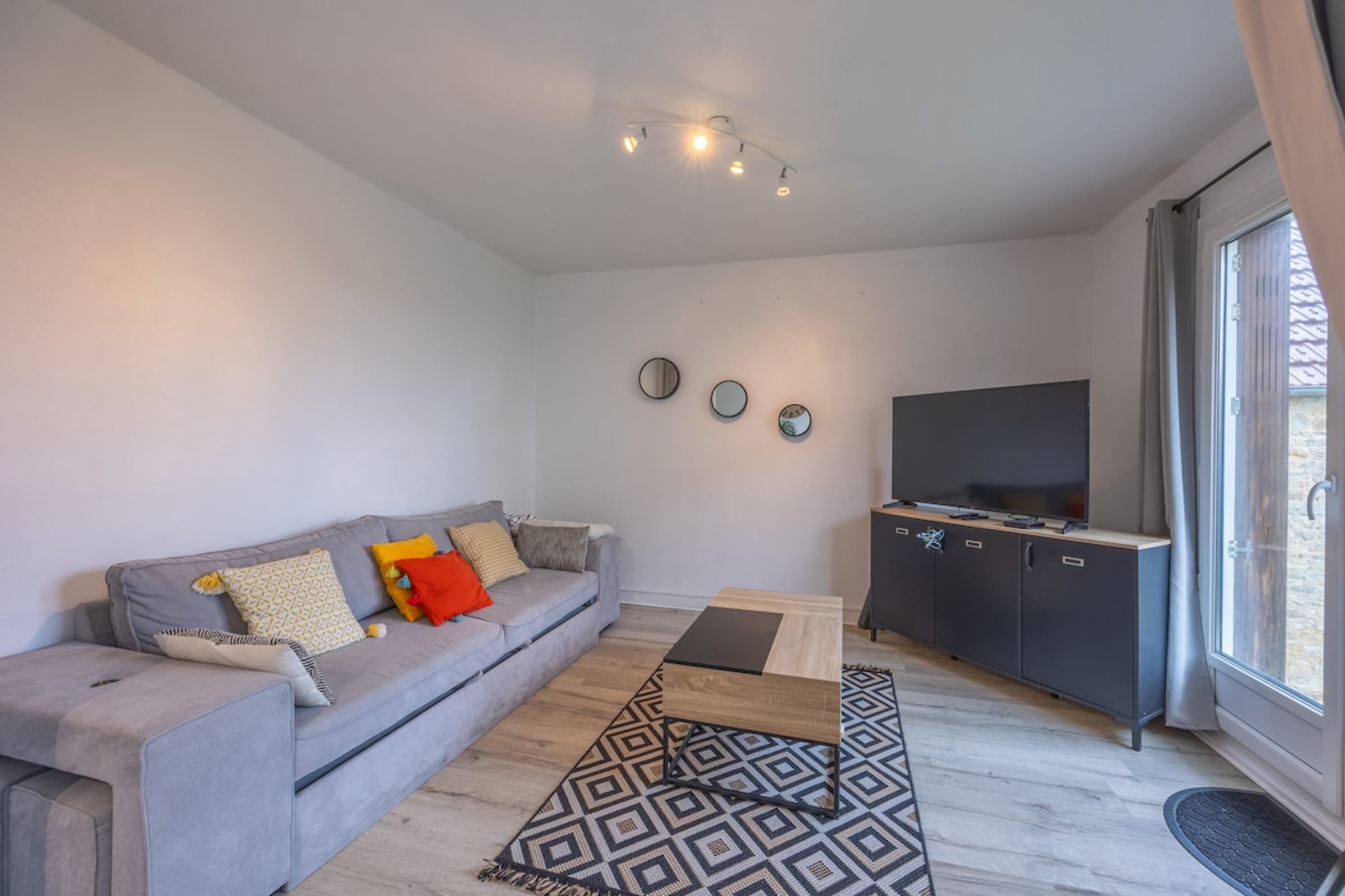 This apartment features a 140cm double bed in one bedroom and a sofa bed in the living room.