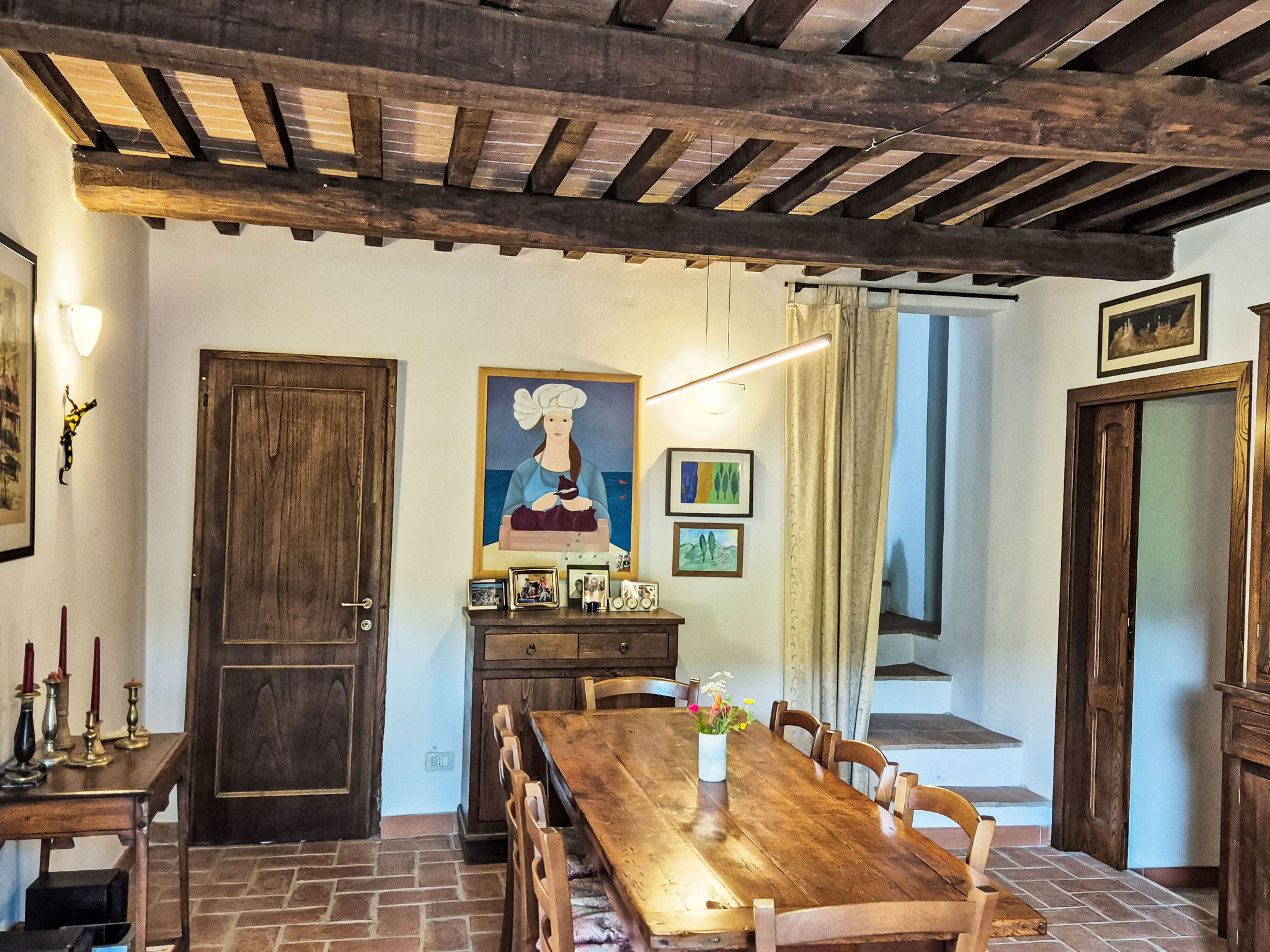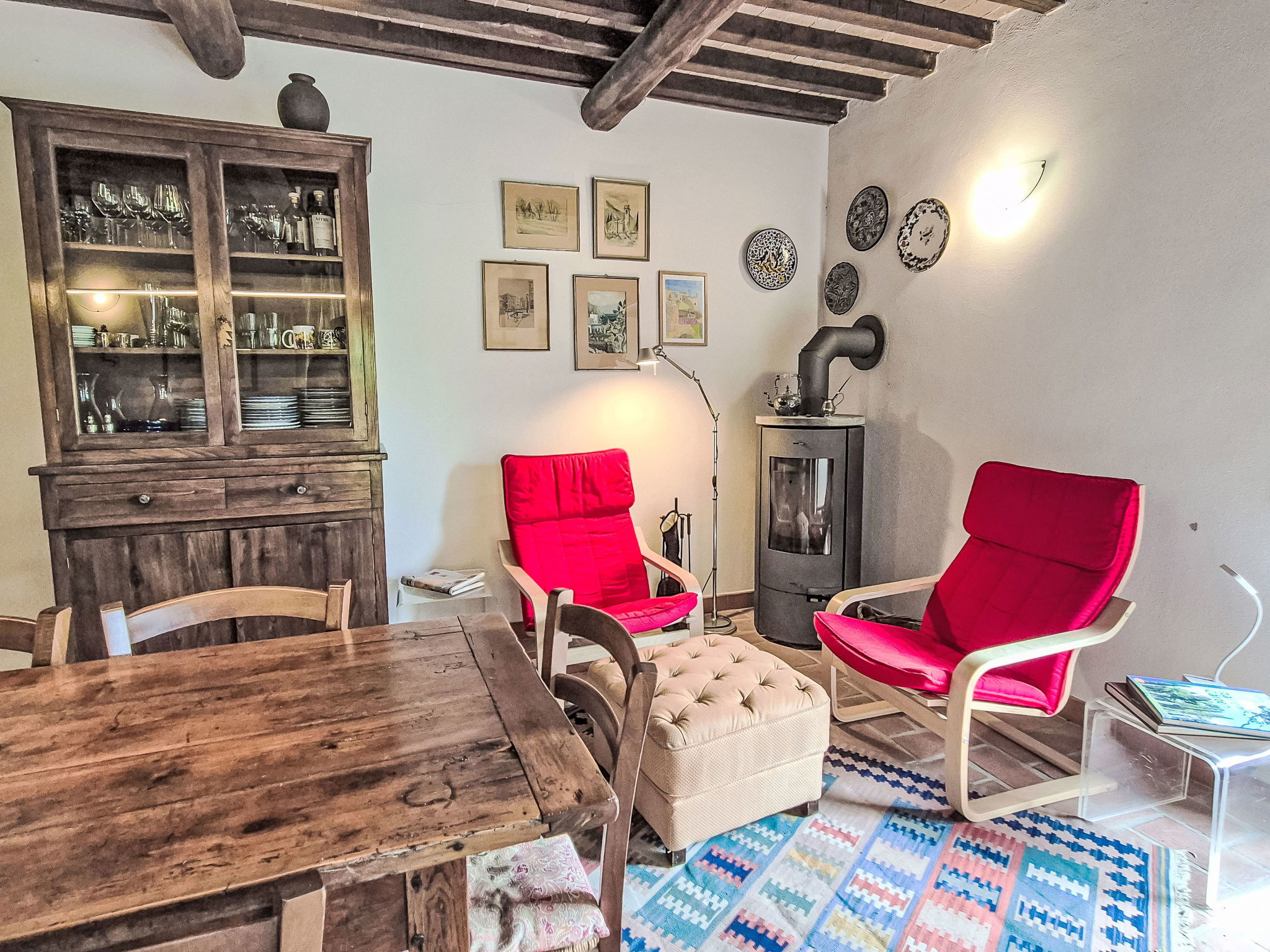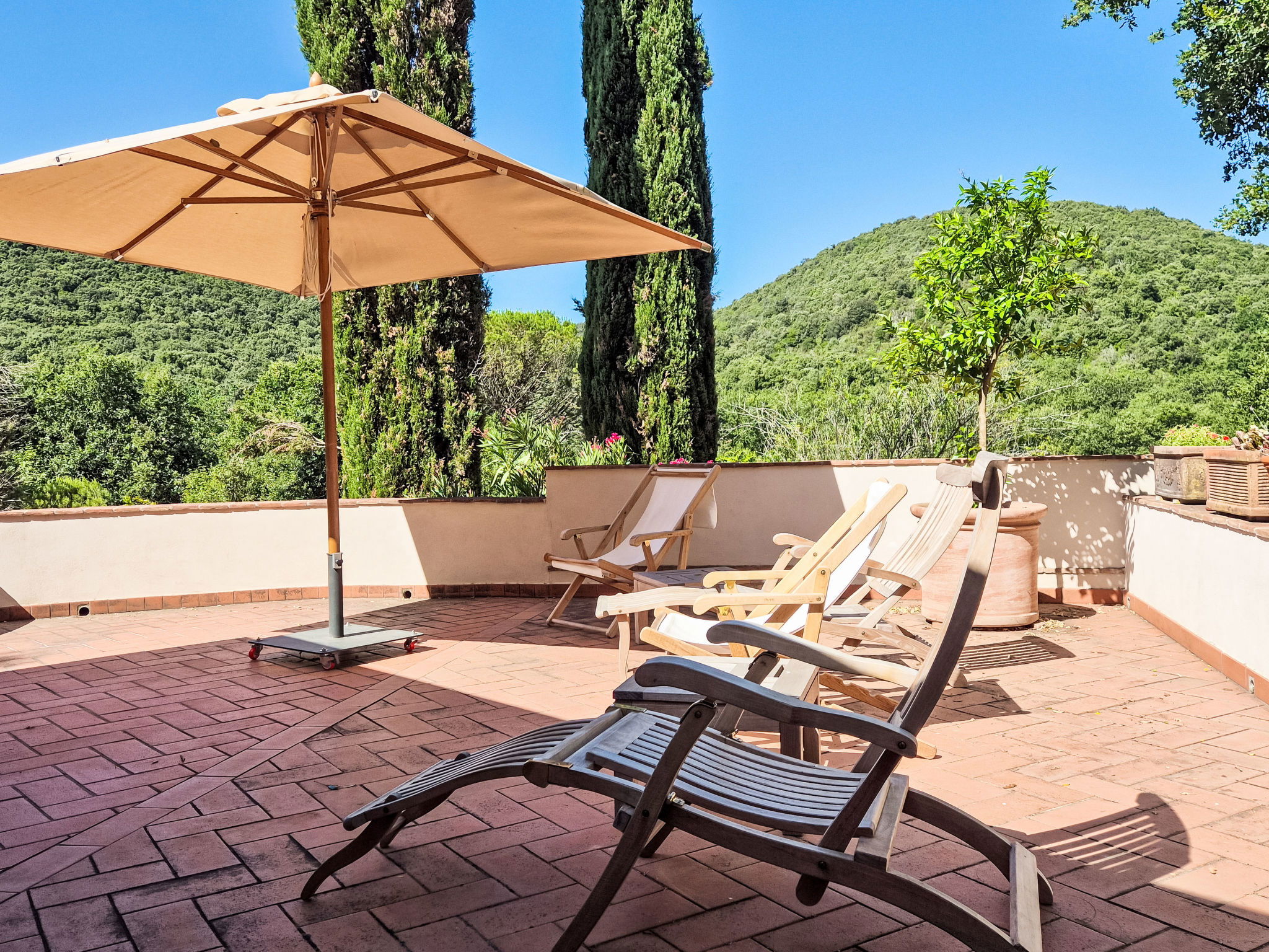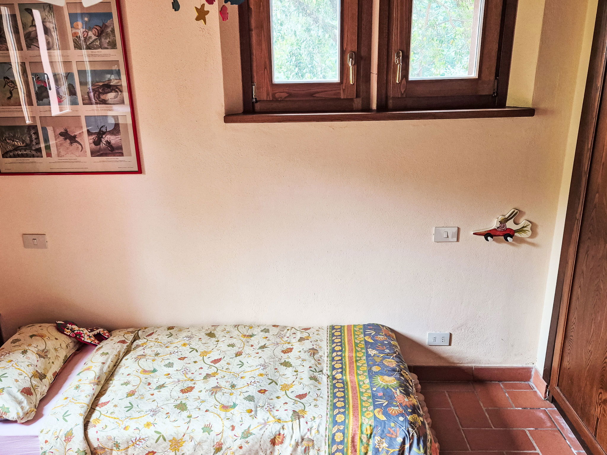 Cosy, rustic house "La Valle", surrounded by trees and meadows. 4 km from the centre of Buriano, 8 km from the centre of Vetulonia, in a quiet, sunny position on top of a hill, 15 km from the sea, 15 km from the beach, in the woods. Private: natural state property 3 ha, large garden (not fenced). 2 km long bumpy, narrow motor access (via unmade road). Parking on the premises. Supermarket 7 km, restaurant 4 km, bus stop 5 km, sandy beach "Castiglione della Pescaia" 15 km, thermal baths "Venturina" 40 km. Sports harbour 15 km, golf course (18 hole) 25 km, riding stable 3 km, walking paths from the house 50 m. Nearby attractions: Tirli / Caldana 11 km, Grosseto / Le Rocchette 20 km, Punta Ala 30 km, Castiglione della Pescaia 14 km. Hiking paths: Riserva Naturale Diaccia Botrona 16 km. Please note: car recommended. 1st floor is closed and not occupied.