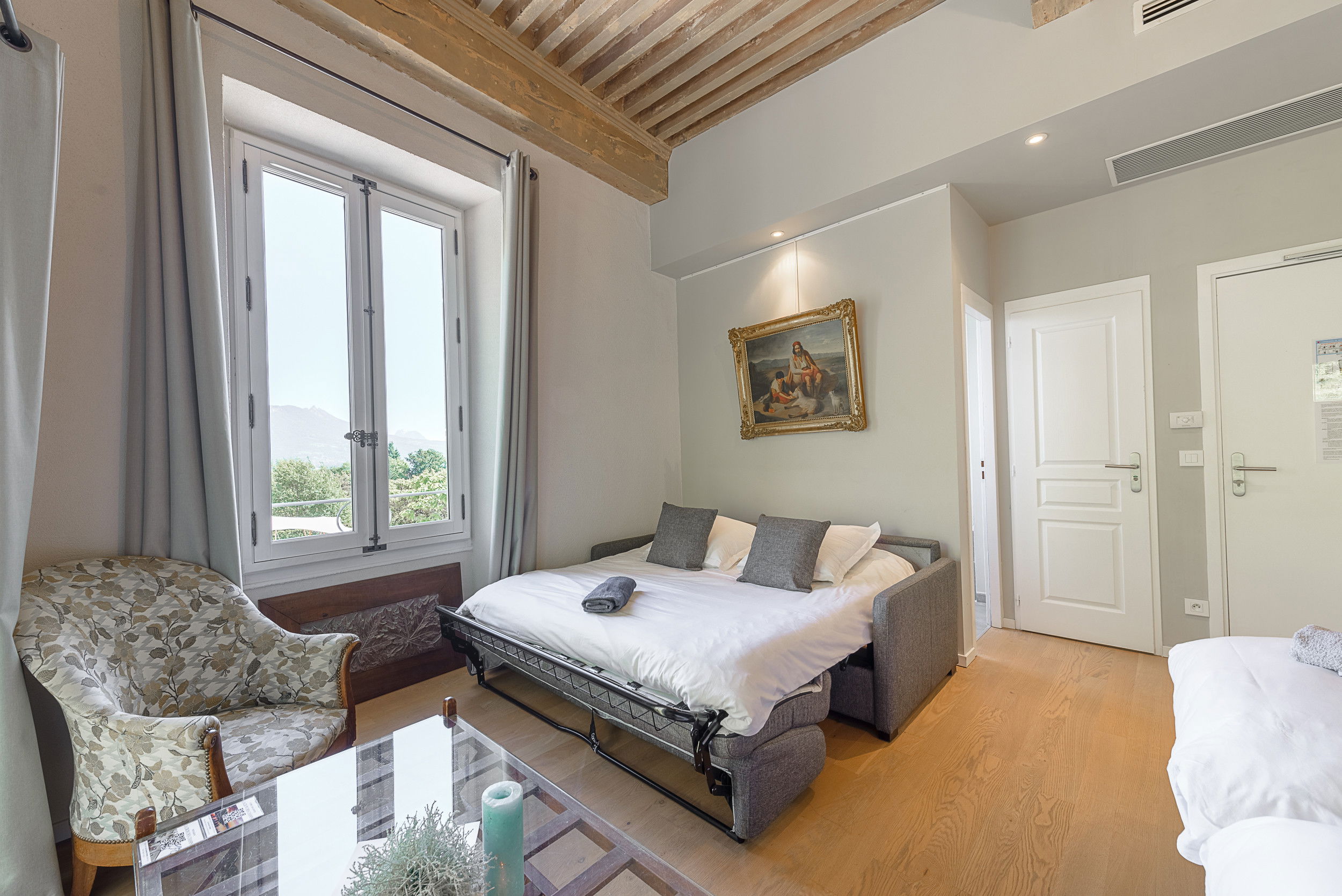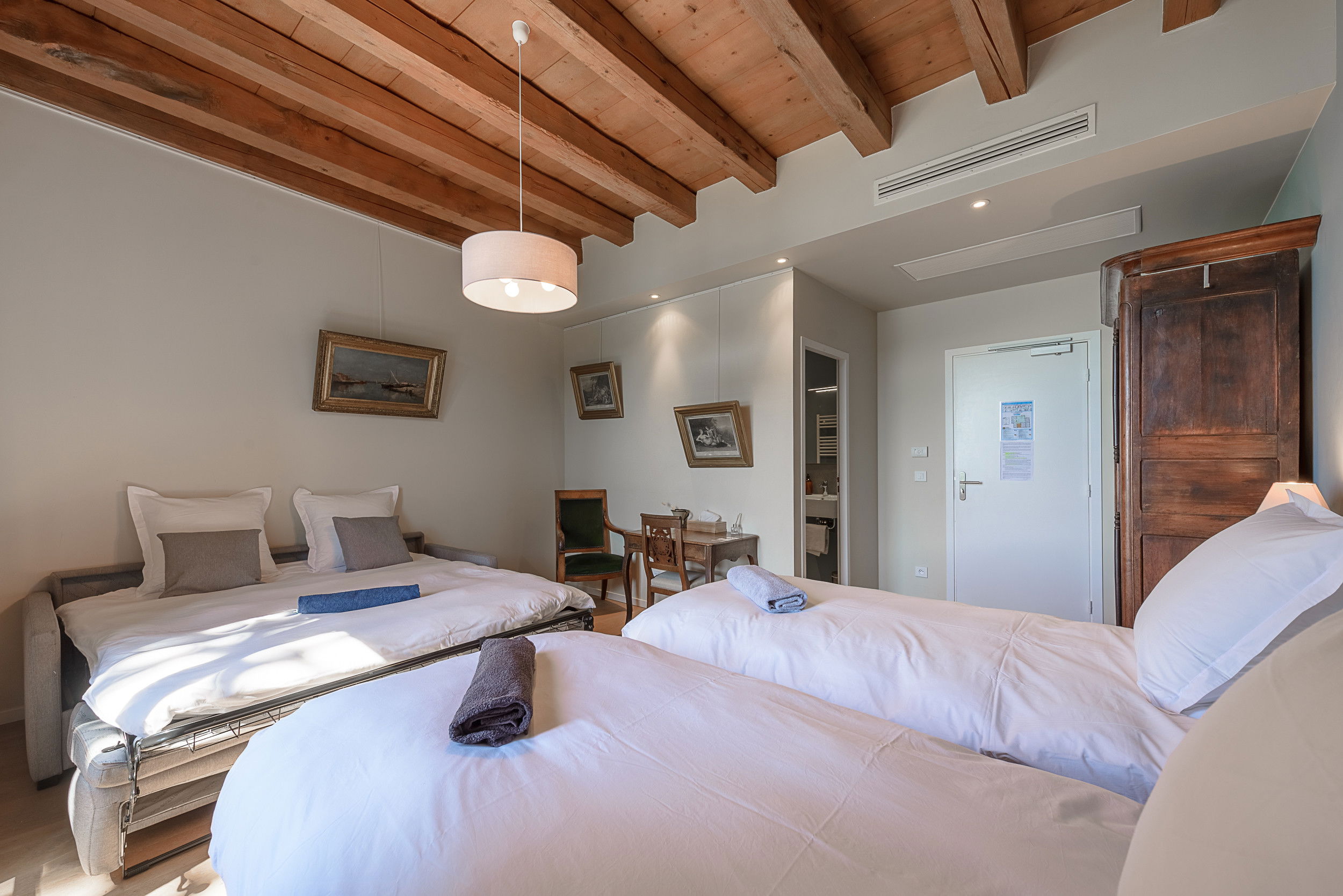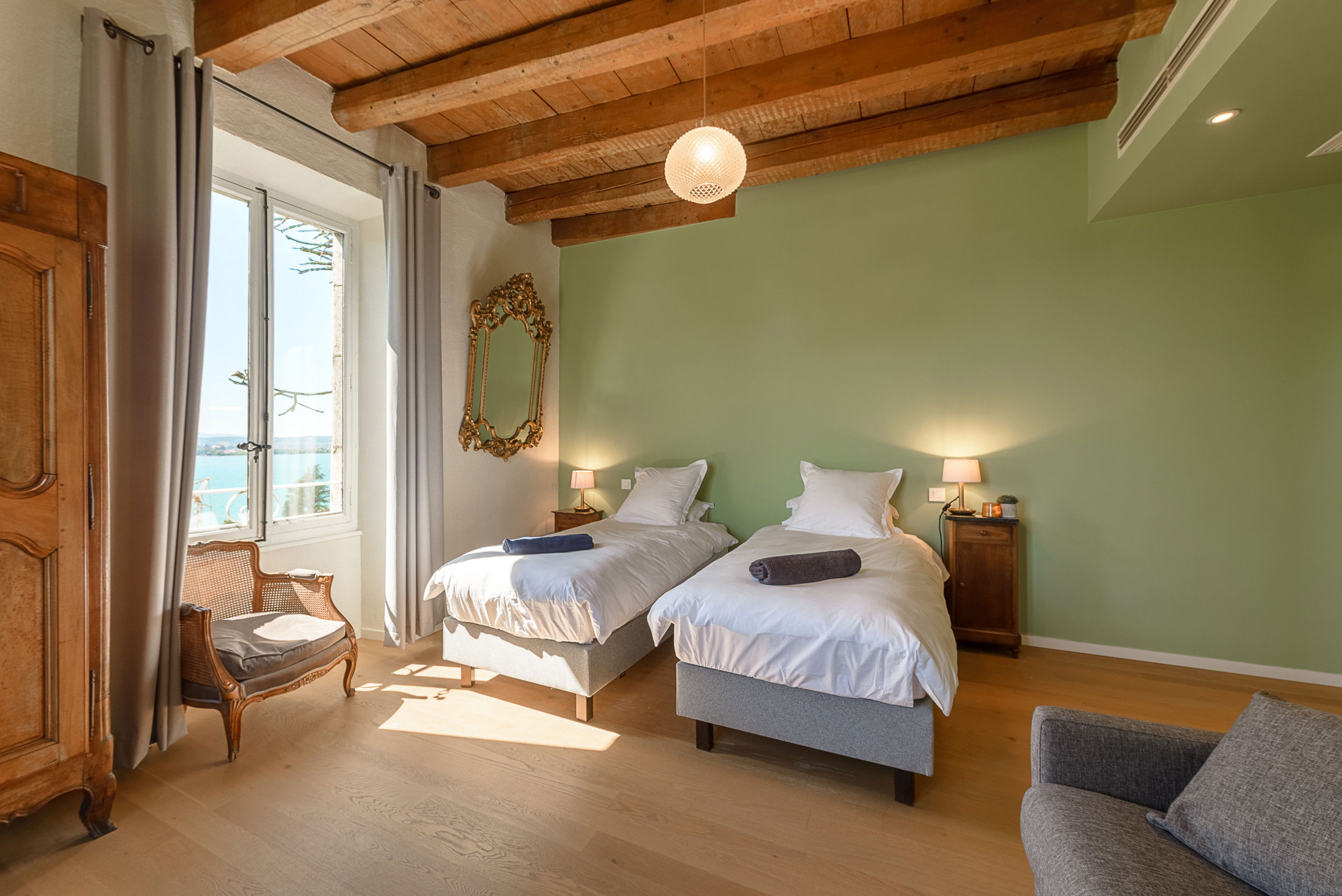 - Mandallaz Room: 2 single beds twinnable (90x200), Double sofa bed (160x200), balneo shower room with lake view, separate WC