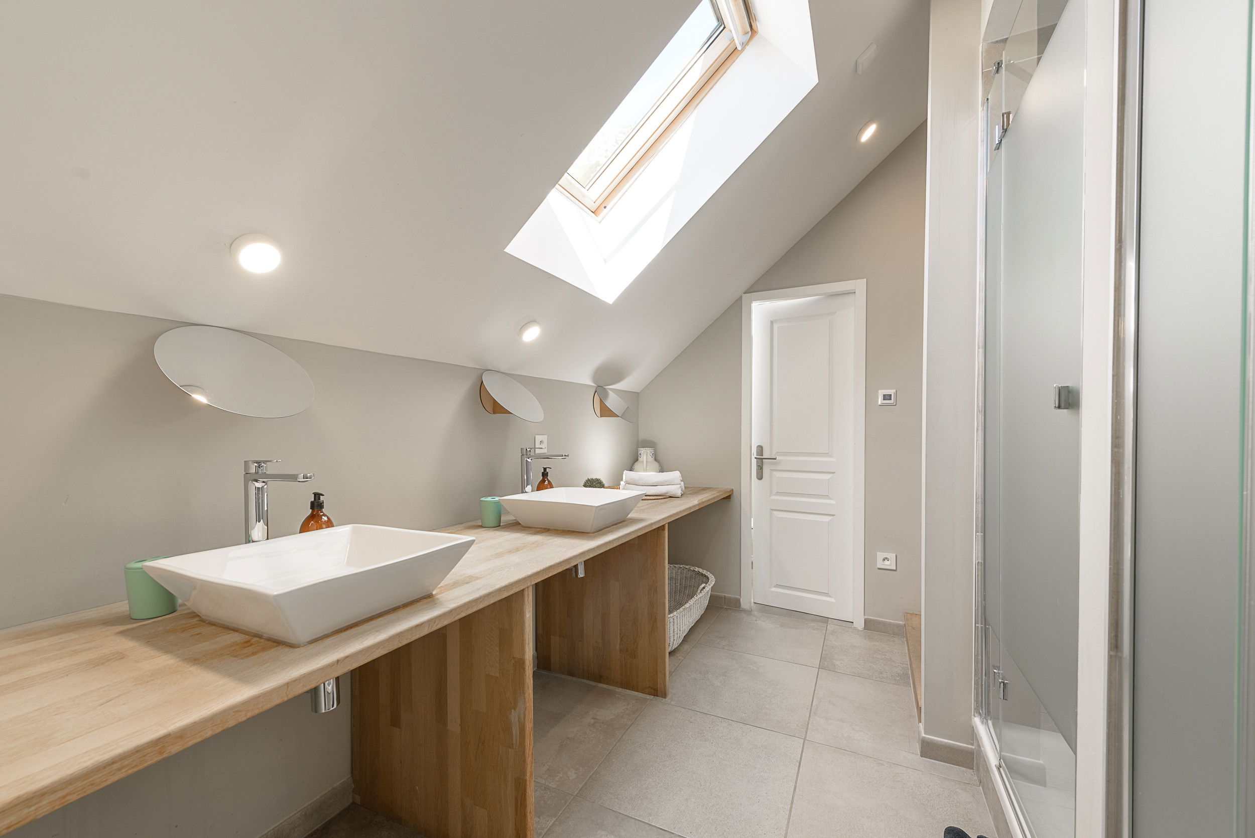 - Roc de Chère Room: 2 single beds twinnable (90x200), Double sofa bed (160x200), bathroom with double sink and bathtub with lake view, separate WC