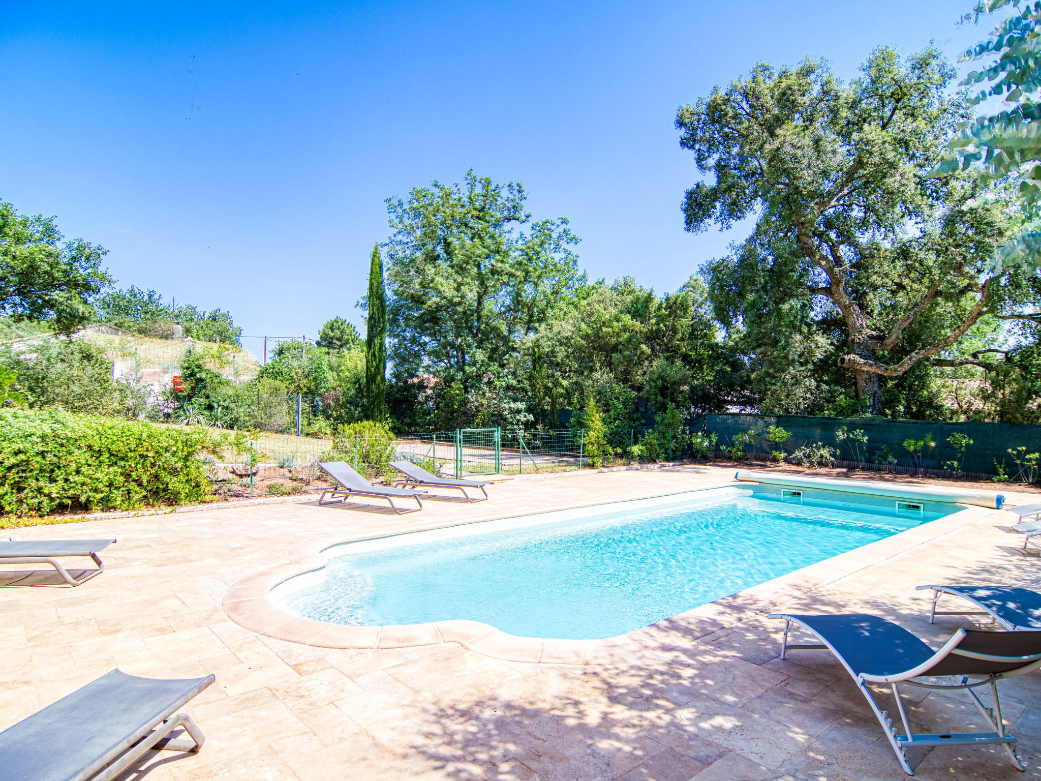 Beautiful, comfortable house "L'Isula". 1.5 km from the centre of Vidauban, 6 km from the centre of Les Arcs, 20 km from the centre of Draguignan, on a slope, in the residential district, 30 km from the sea. Private: well-kept garden 1'600 m2 (fenced) with lawn and wildlife garden, swimming pool fenced (10 x 4 m, depth 50 - 190 cm, seasonal availability: 01.May. - 10.Oct.) with shutter cover. Outdoor shower, boules, terrace. Motor access (100 m via unmade road). Roofed, parking on the premises. Supermarket 1.5 km, bus stop 2 km, railway station "Les Arcs Draguignan" 6.5 km, sandy beach "Fréjus, Ste-Maxime" 30 km. Golf course (18 hole) 18 km. Nearby attractions: Abbaye du Thoronet, Grottes de Villecroze, La cascade de Sillans, Calanques de Cassis. Well-known lakes can easily be reached: Lac de Sainte Croix, Lac de Saint Cassien, Lac de Carces (pêche uniquement). Hiking paths: Gorges du Verdon, Les Adrets de l'Esterel, Gorges du Blavet.