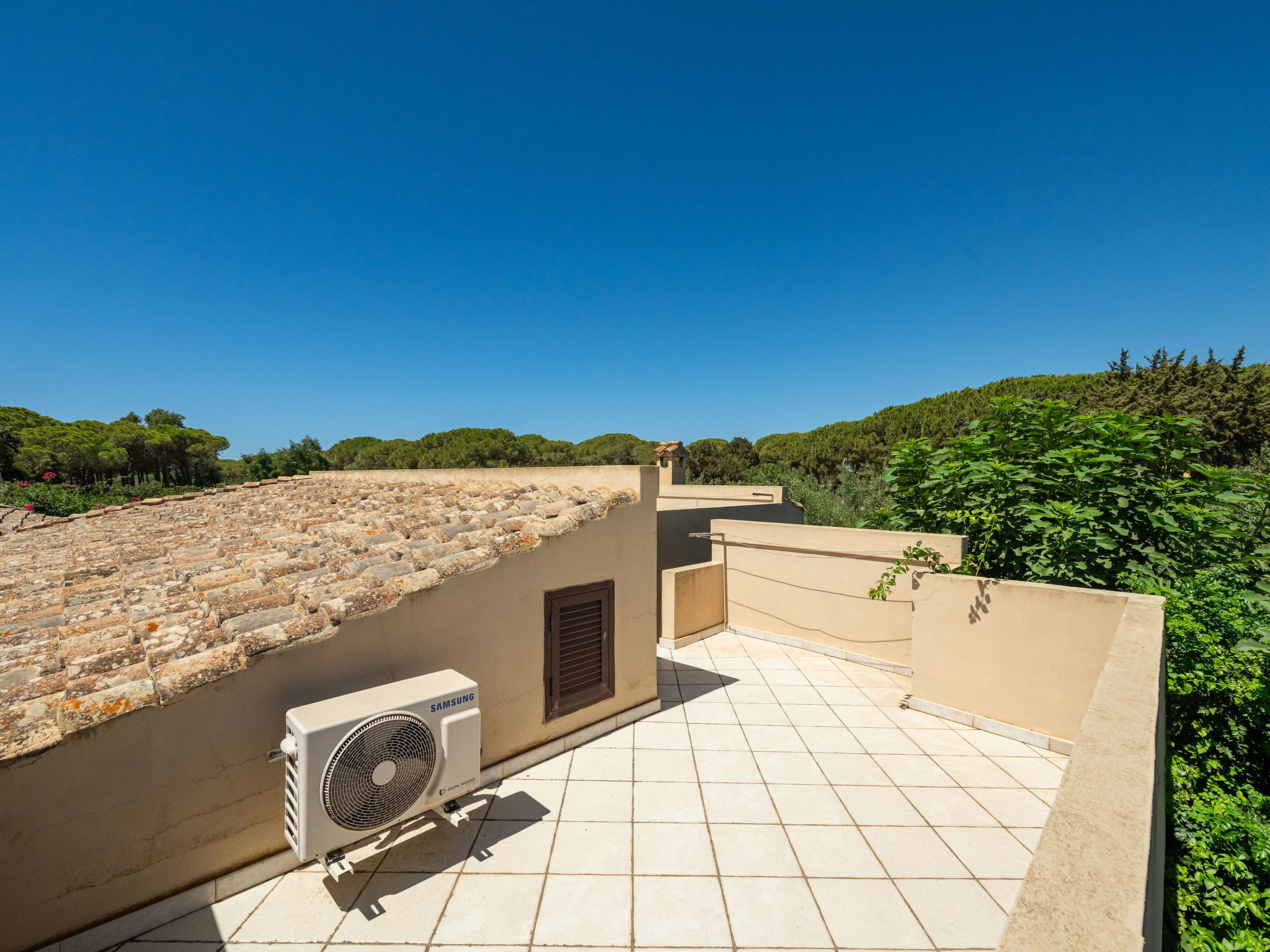 Small residence "Carlo", surrounded by trees and meadows. 2.5 km from the centre of Villasimius, in a sunny position residential area (villas), 400 m from the sea, in the countryside. For shared use: garden 200 m2. Private: outdoor shower. Motor access to the house (300 m via unmade road). Parking on the premises. Supermarket, restaurant, bar 200 m, bus stop "via Roma La Lanterna" 2 km, railway station "Cagliari" 60 km, ferry "Cagliari" 60 km, sandy beach 400 m. Sports harbour 1 km, golf course (18 hole) 1.5 km. Nearby attractions: Cagliari 50 km. Please note: car recommended. Animals in the neighbourhood. The photograph shows a typical example. The complex consists of 5 independent cottages, close to each other, all with roof terrace accessible via outdoor stairs.
